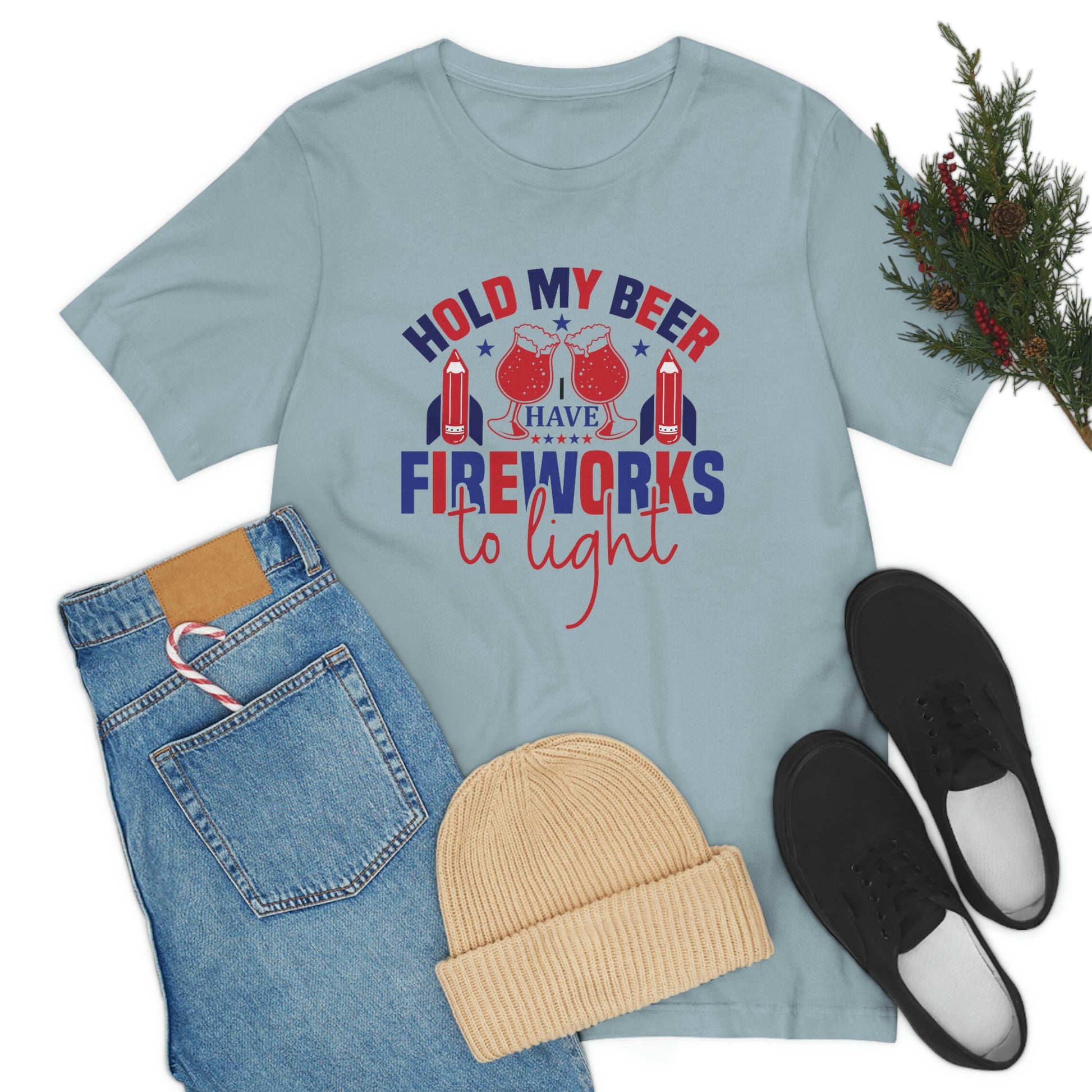 Hold my Beer I've Got Fireworks to Light Unisex Jersey Short Sleeve Tee