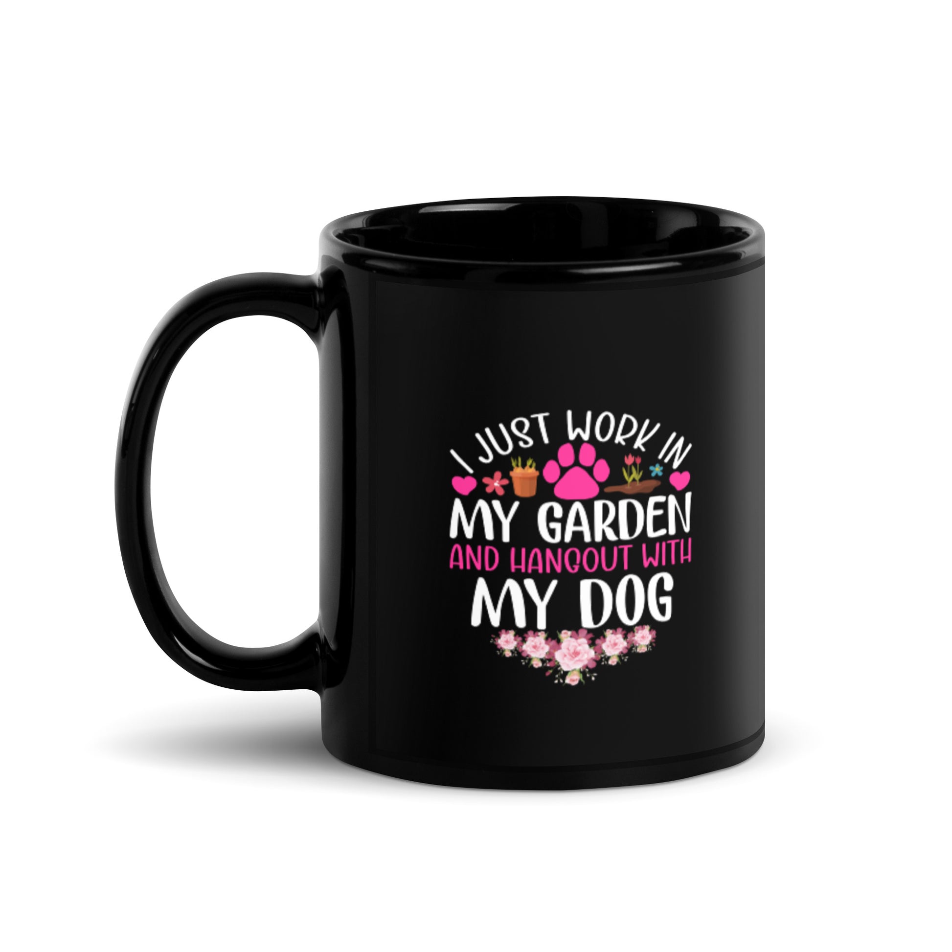 I Just Work in my Garden and Hang Out with my Dog Black Glossy Mug