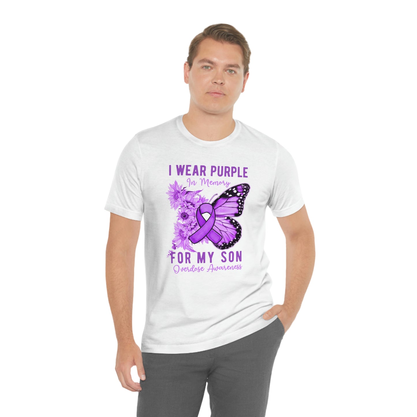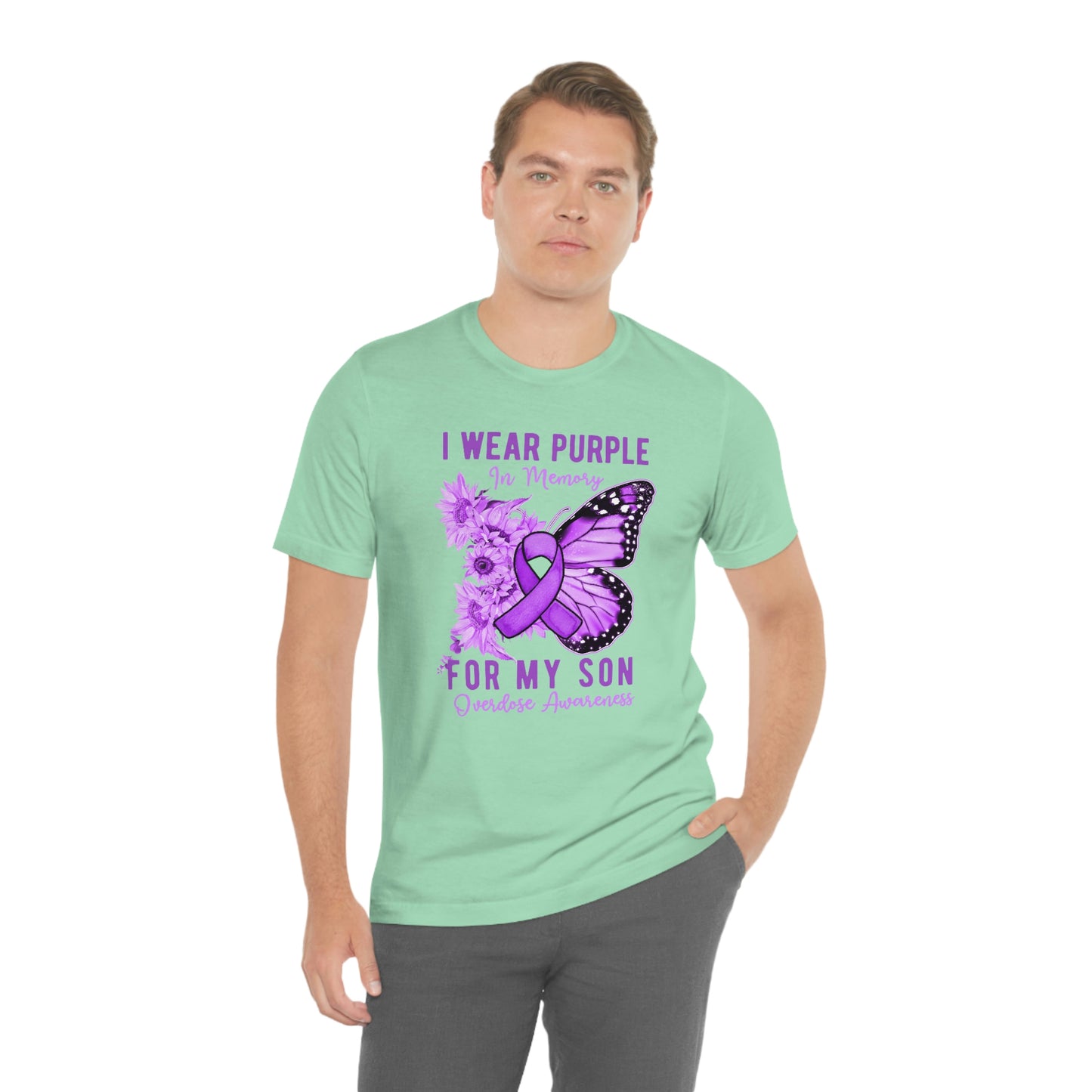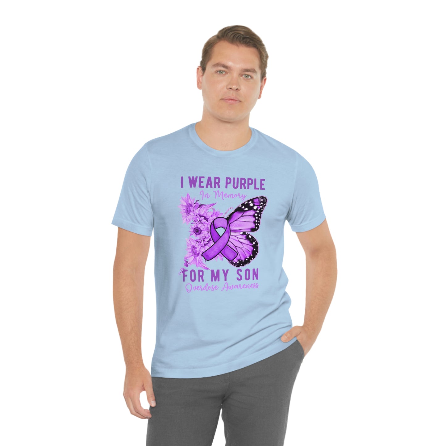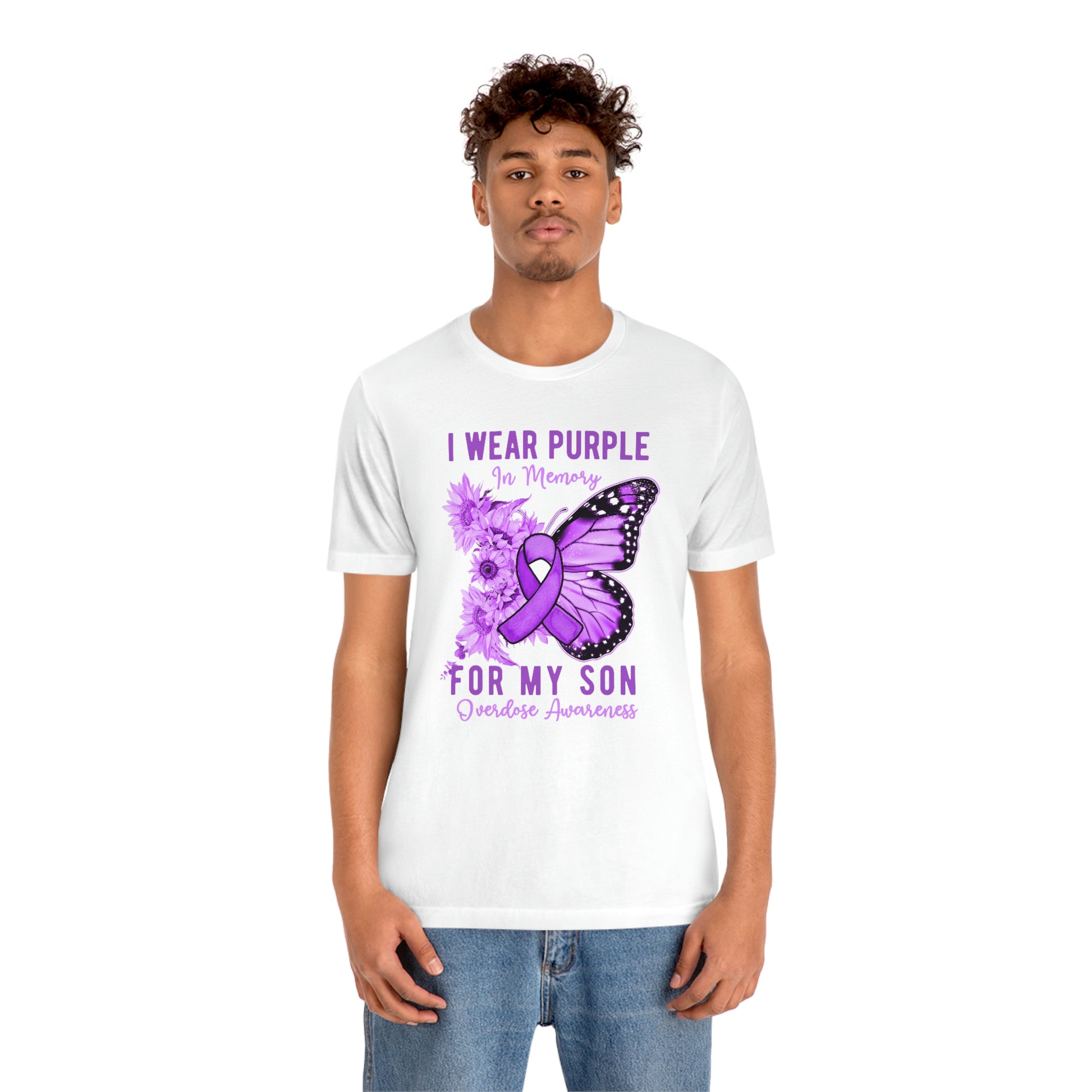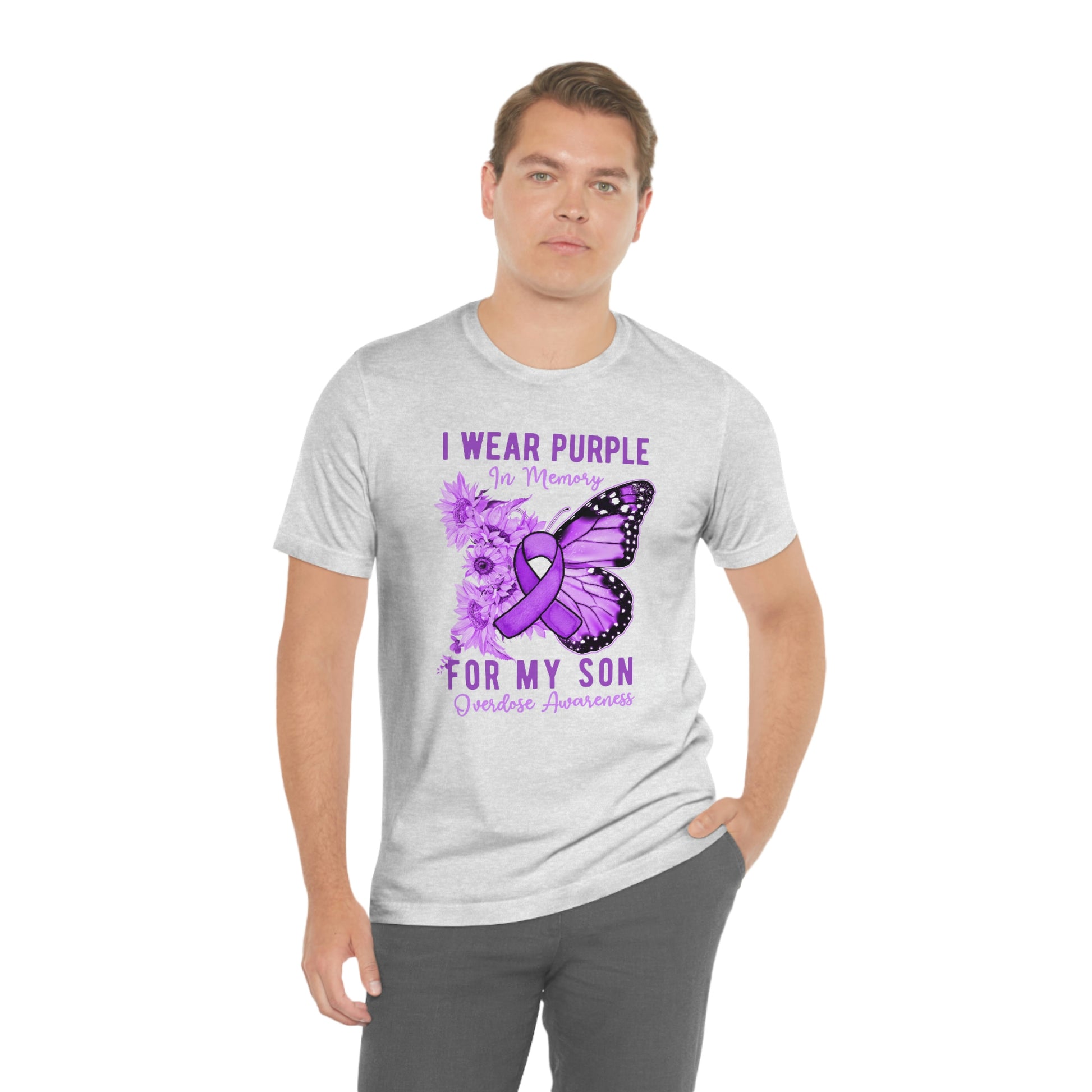 I Wear Purple In Memory For My Son Overdose Awareness Print Unisex Jersey Short Sleeve Tee