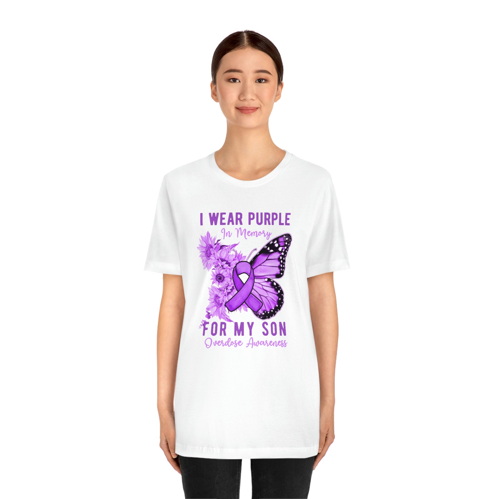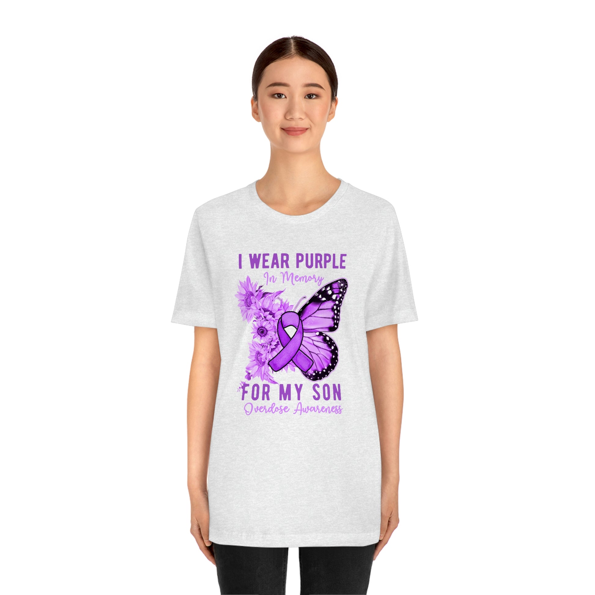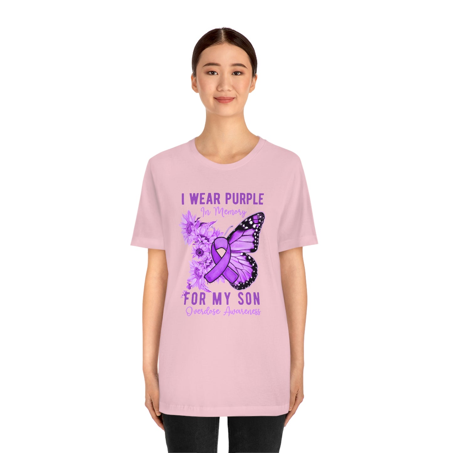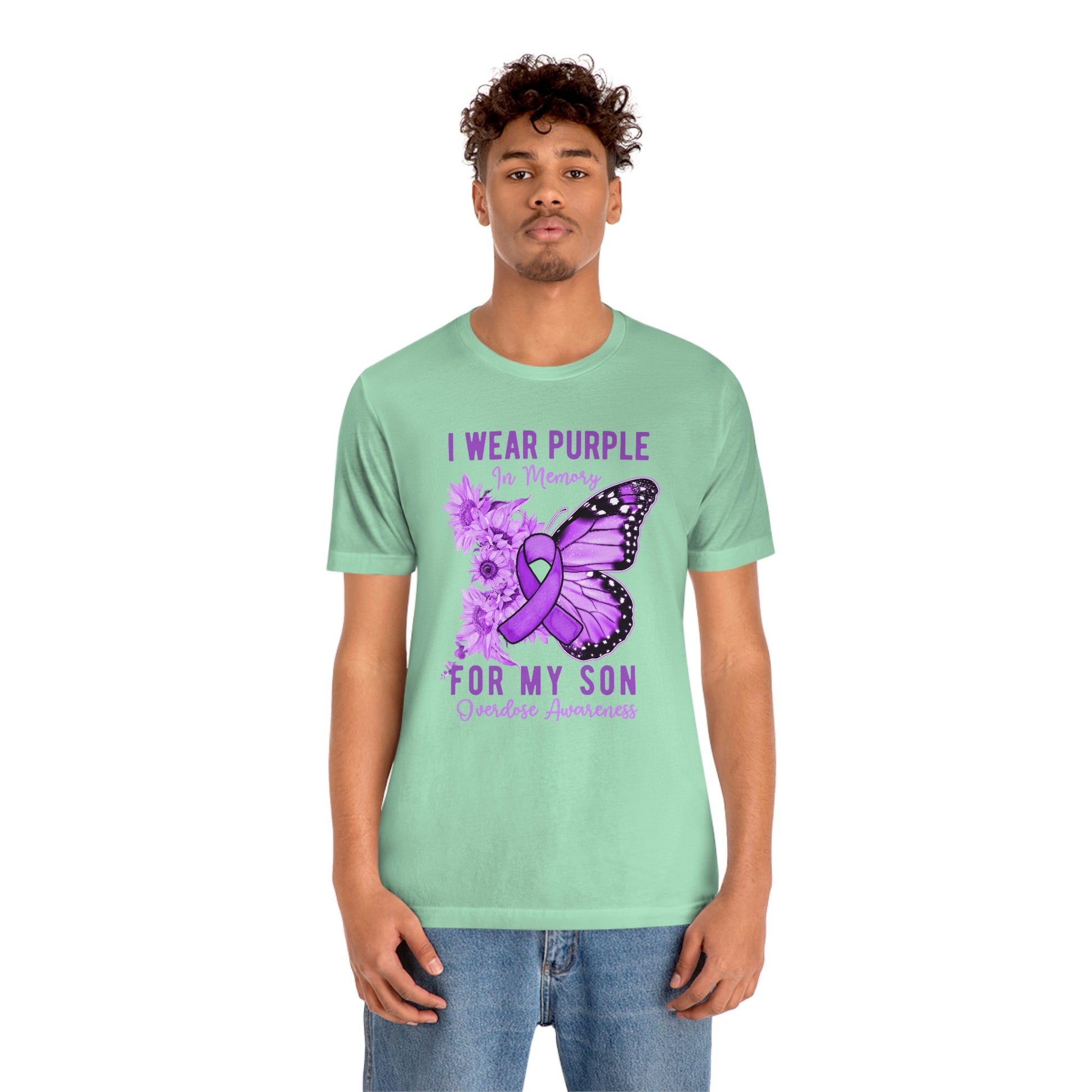 I Wear Purple In Memory For My Son Overdose Awareness Print Unisex Jersey Short Sleeve Tee