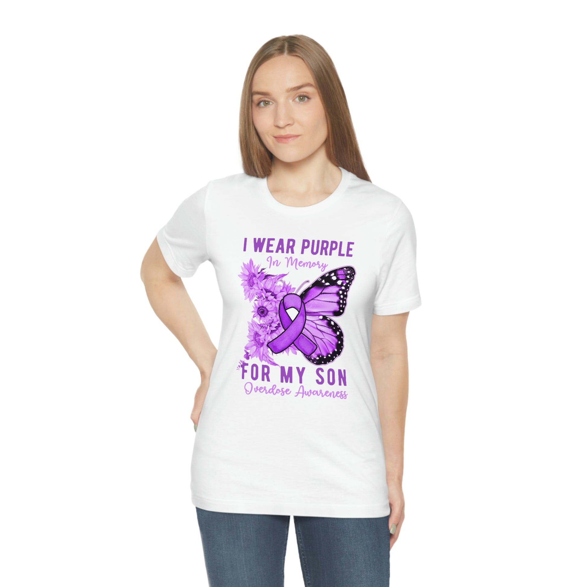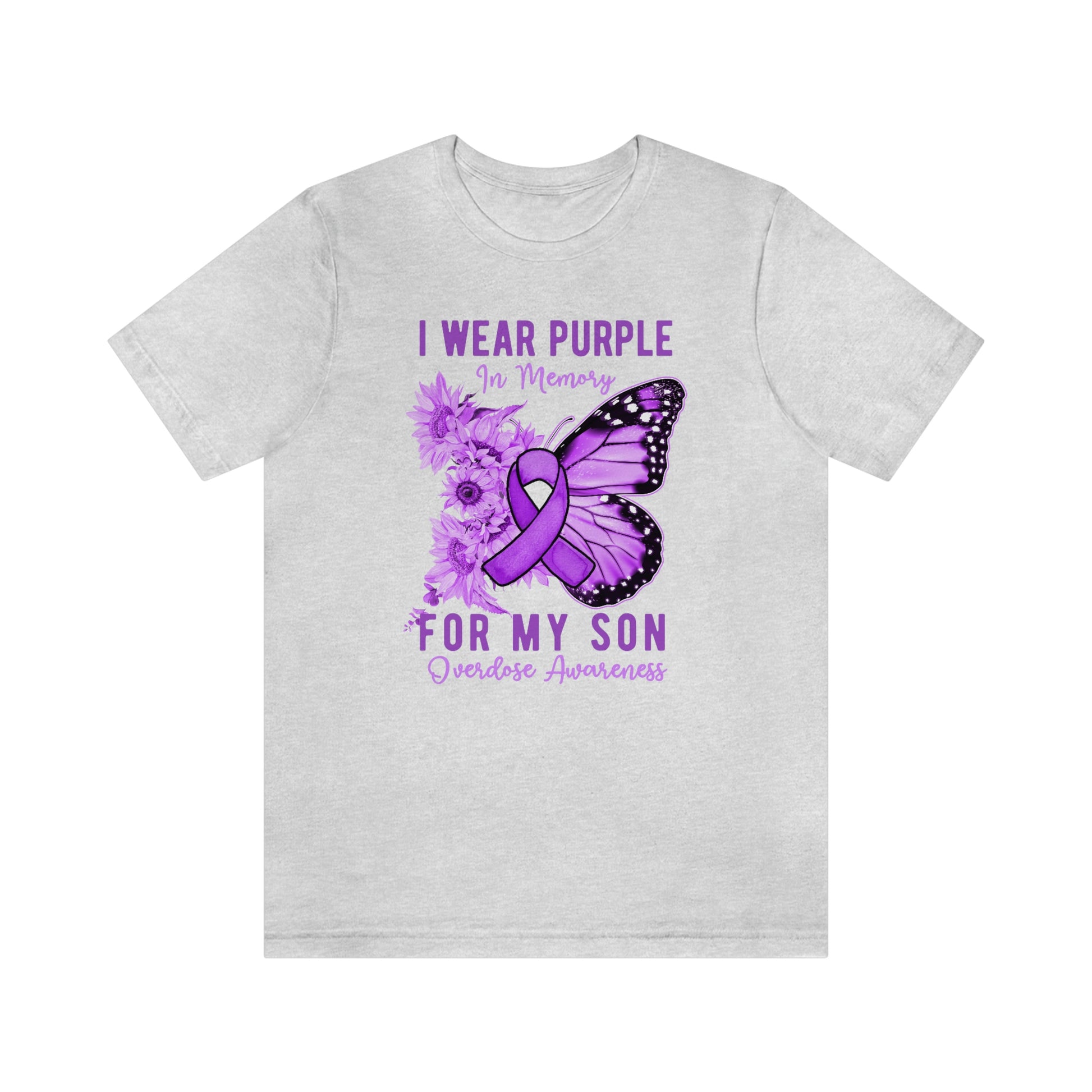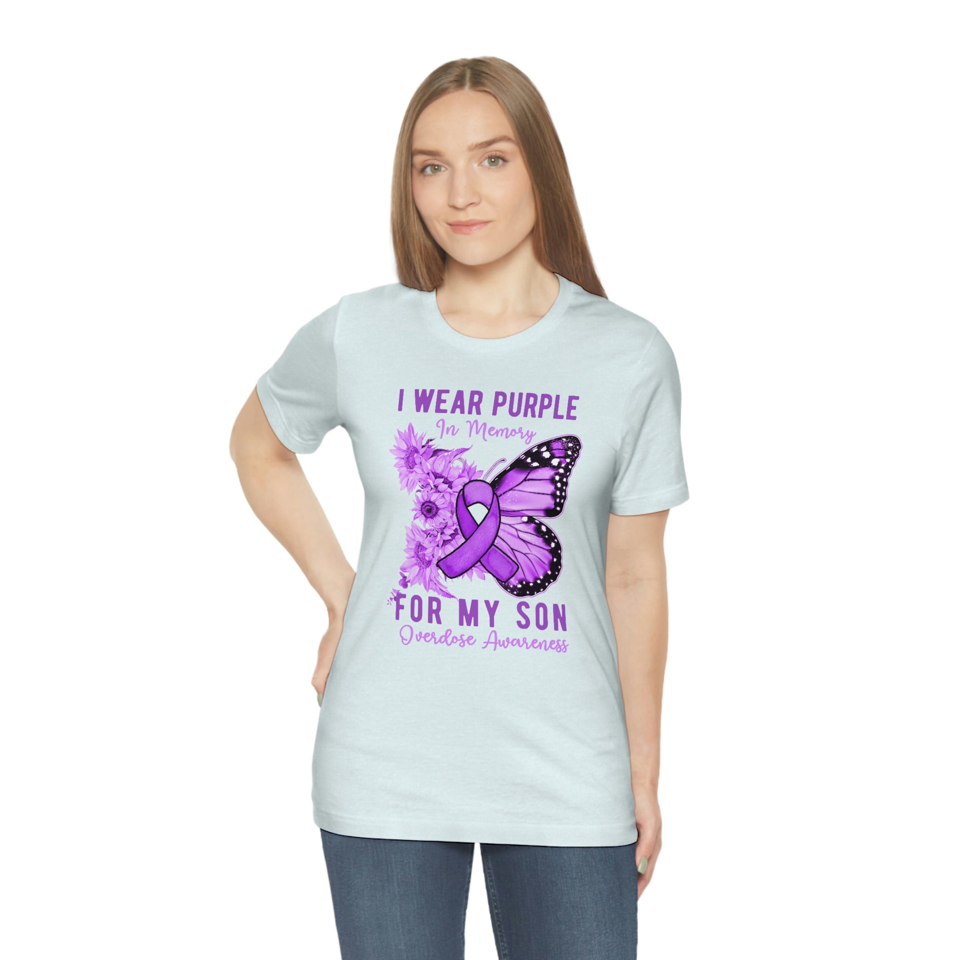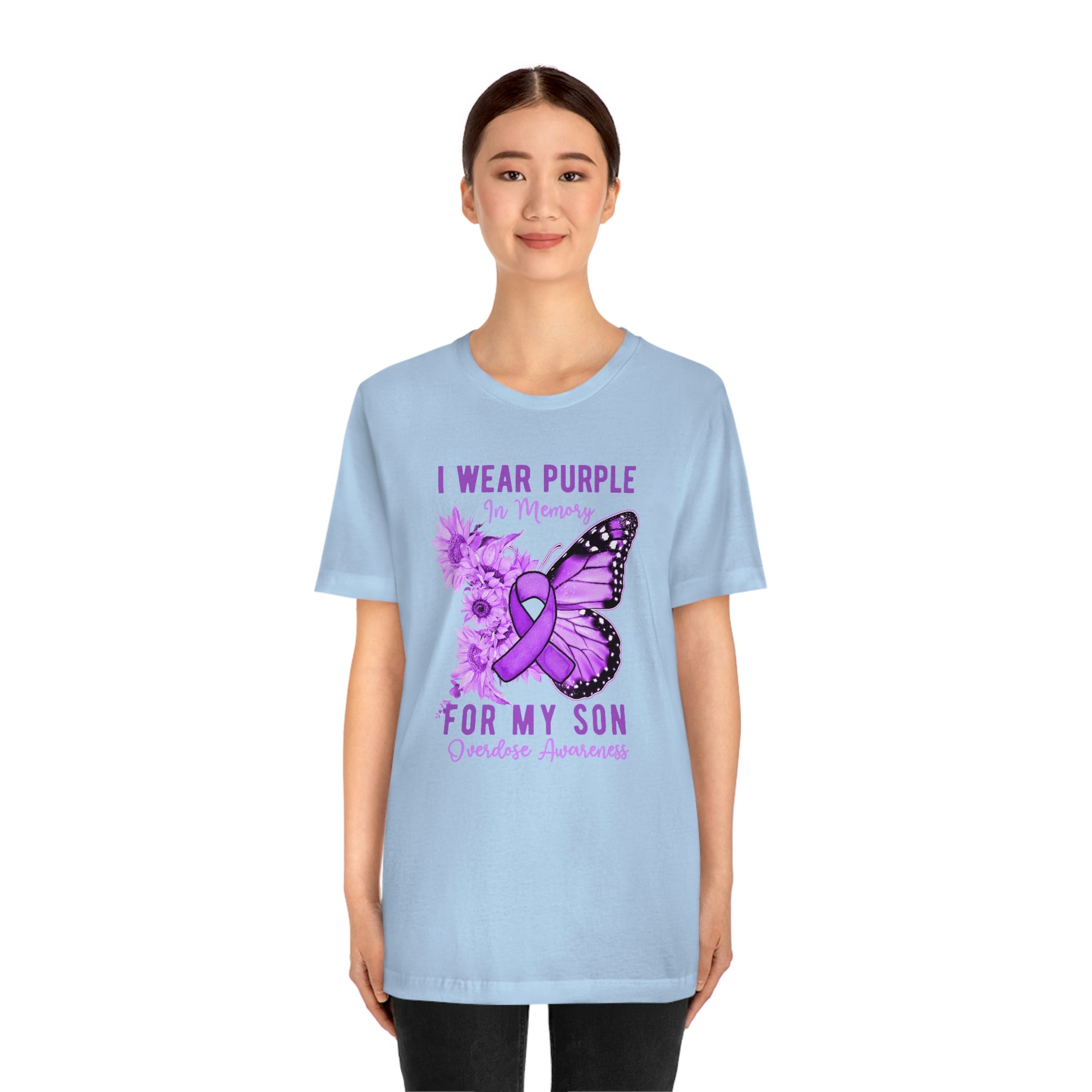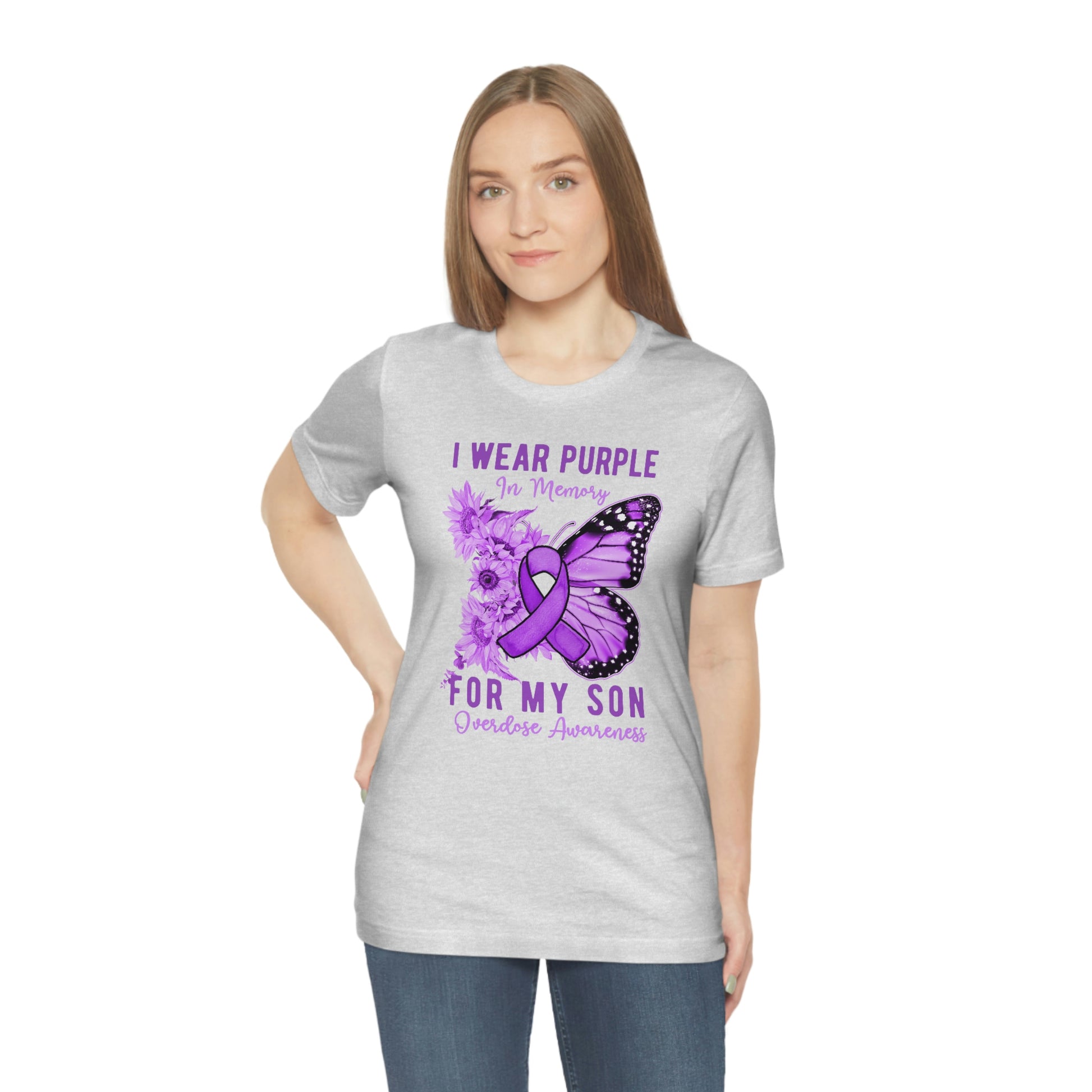 I Wear Purple In Memory For My Son Overdose Awareness Print Unisex Jersey Short Sleeve Tee