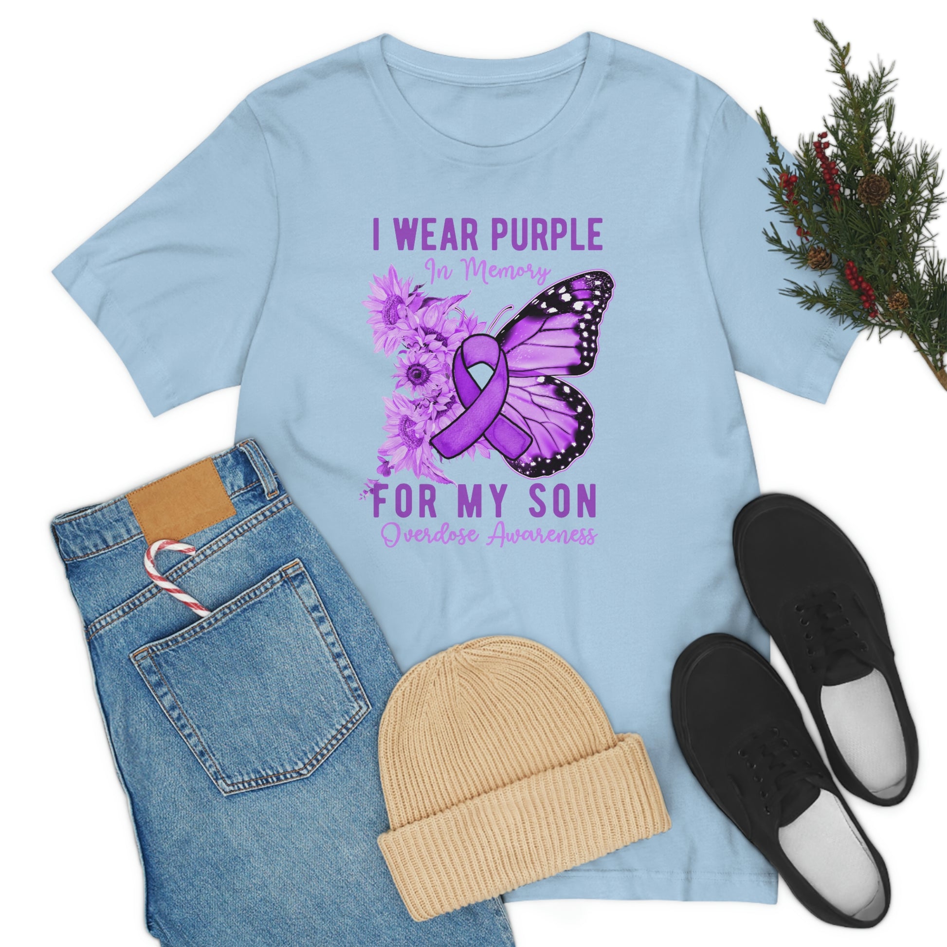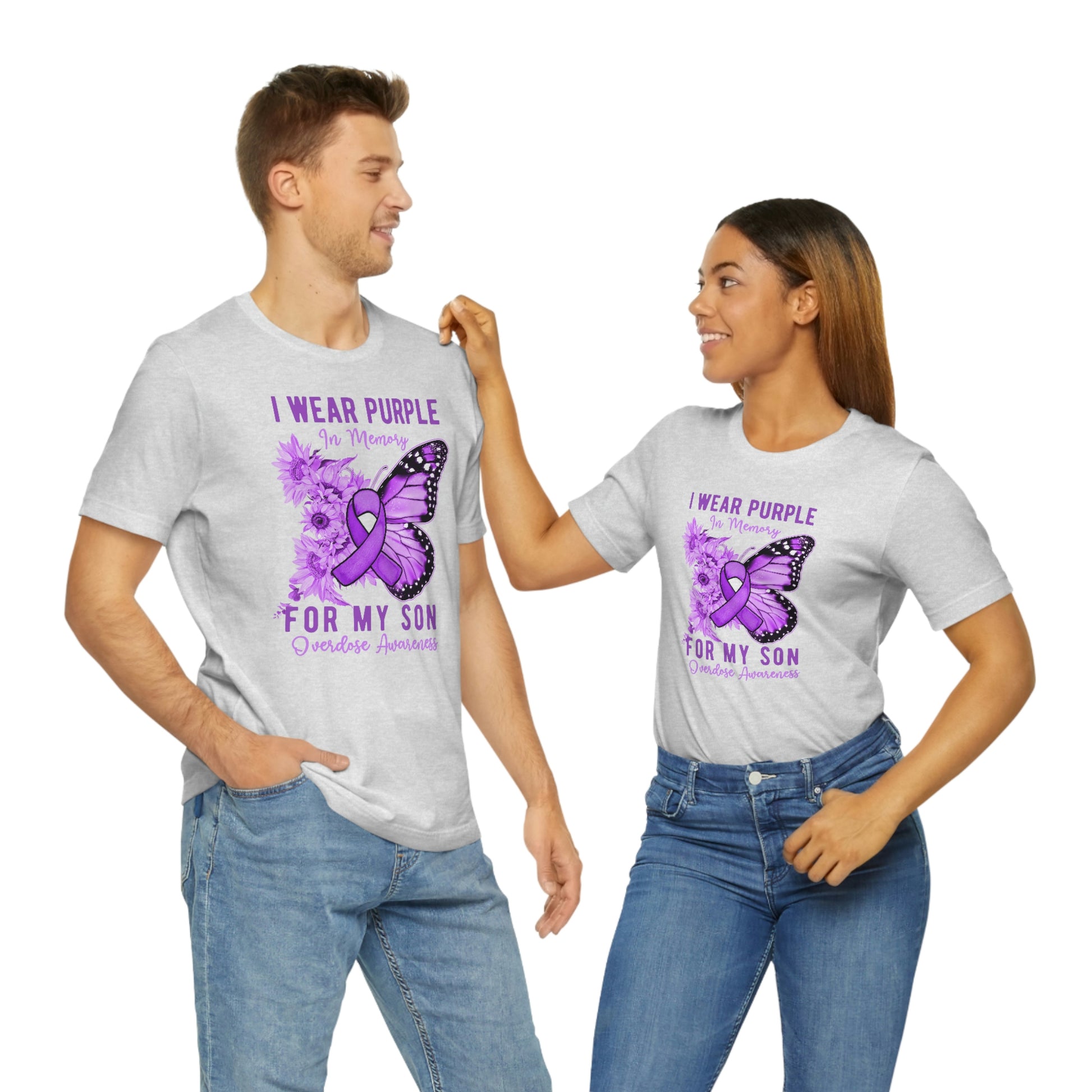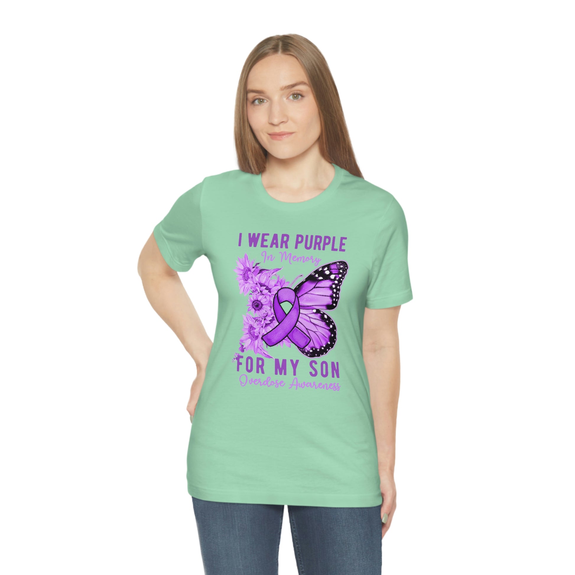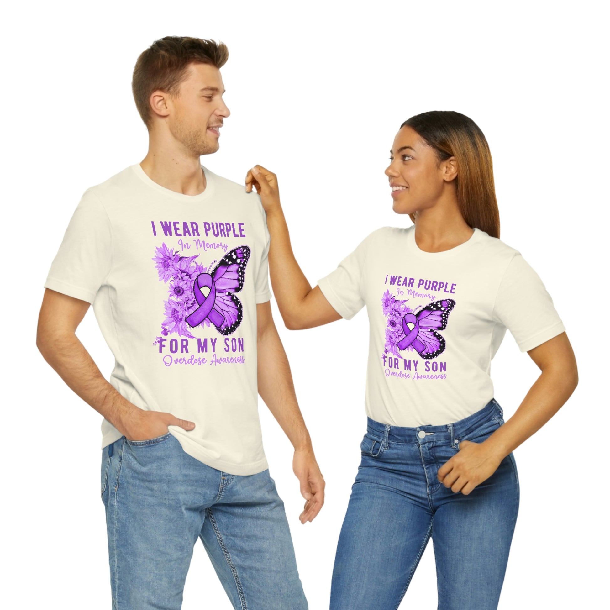 I Wear Purple In Memory For My Son Overdose Awareness Print Unisex Jersey Short Sleeve Tee