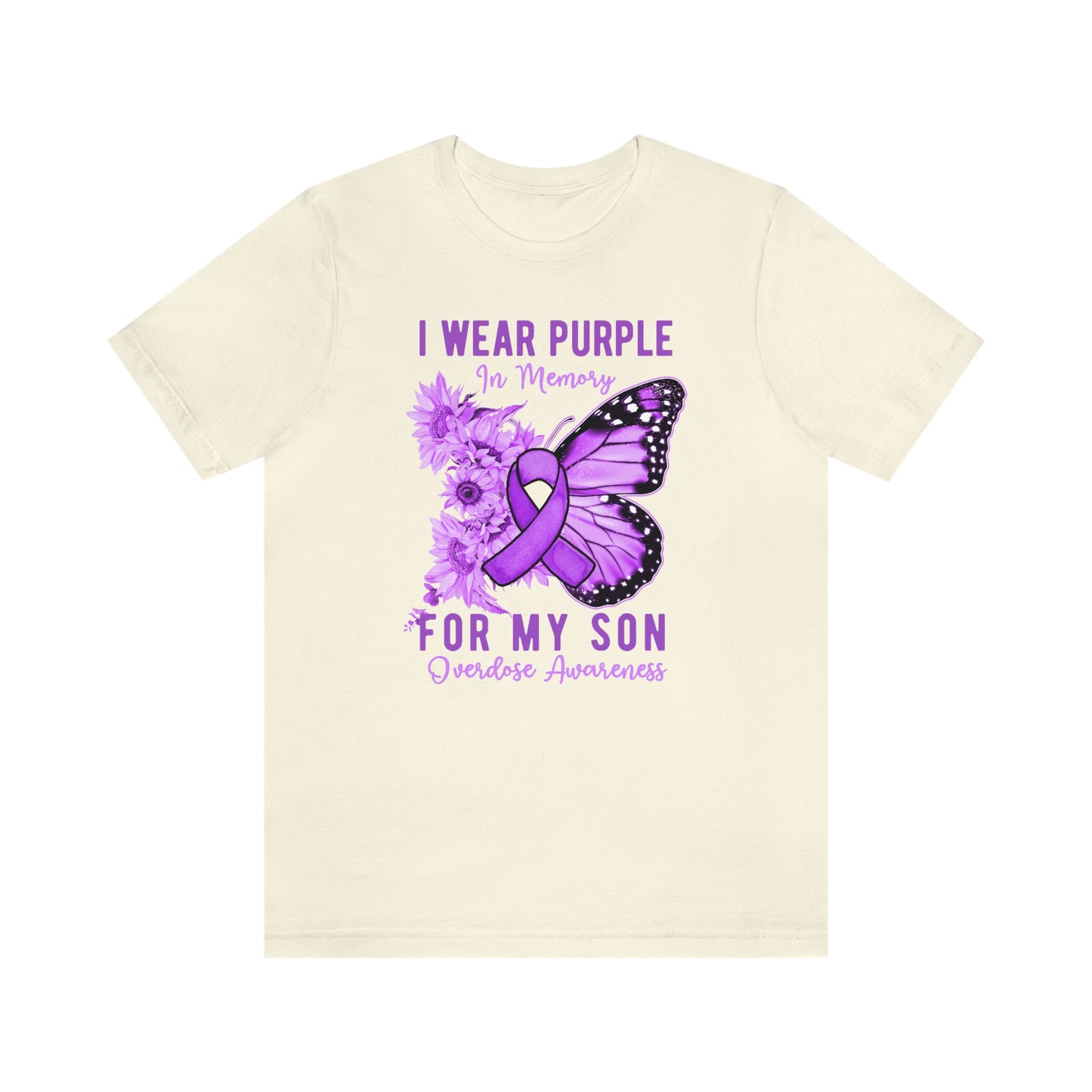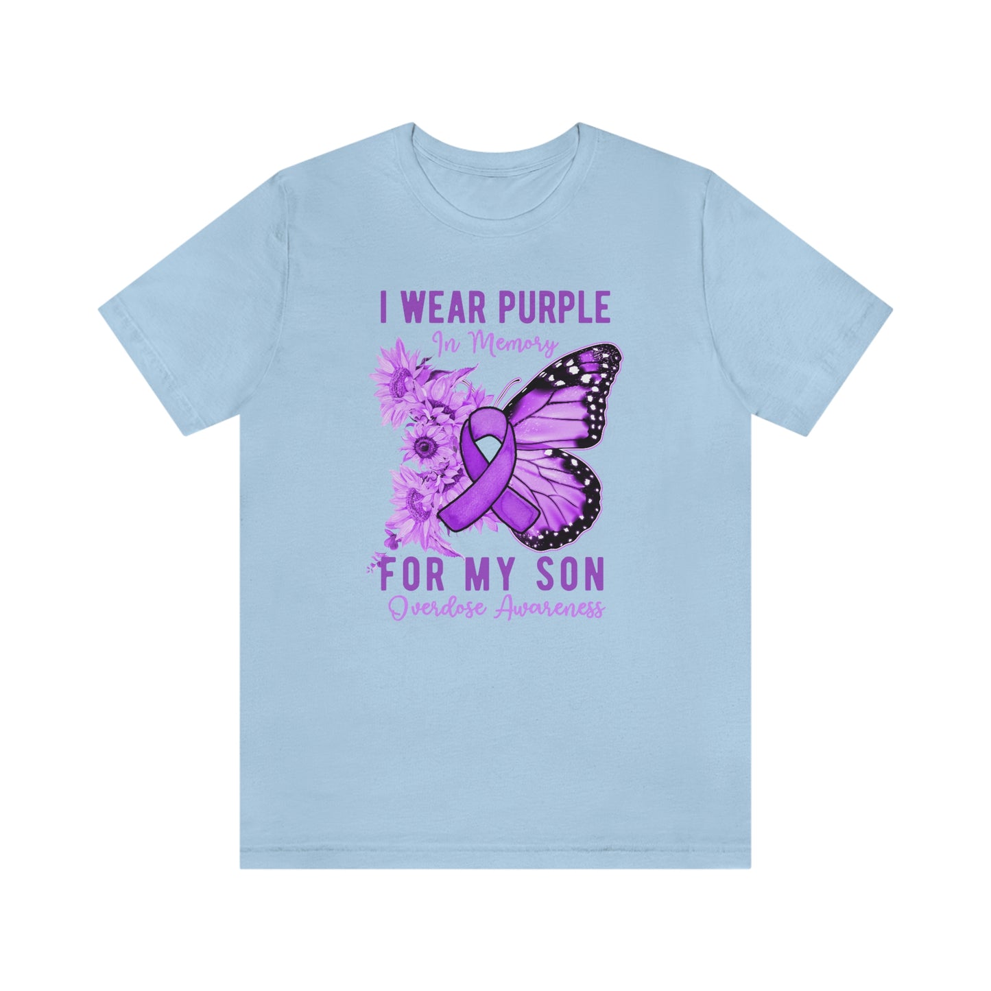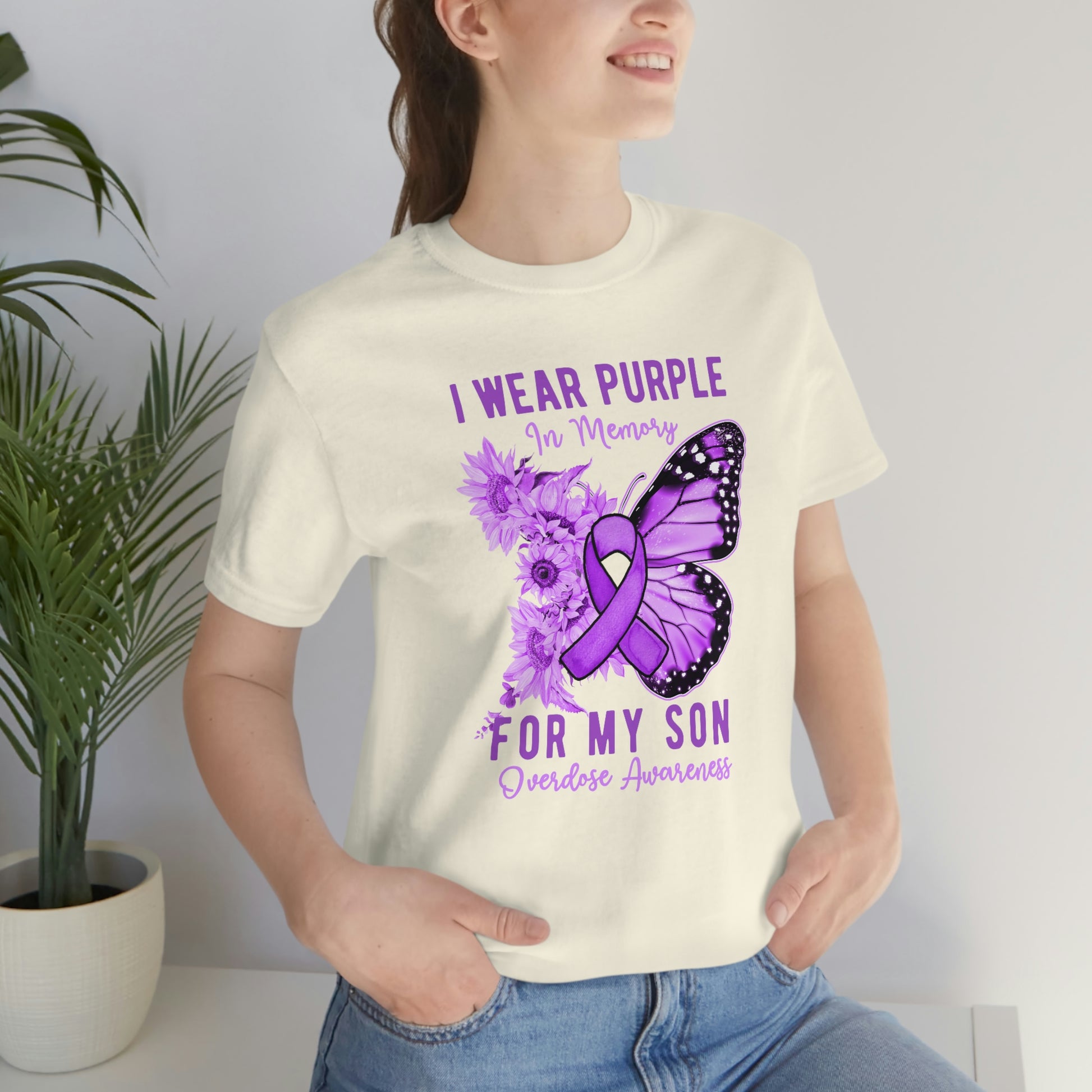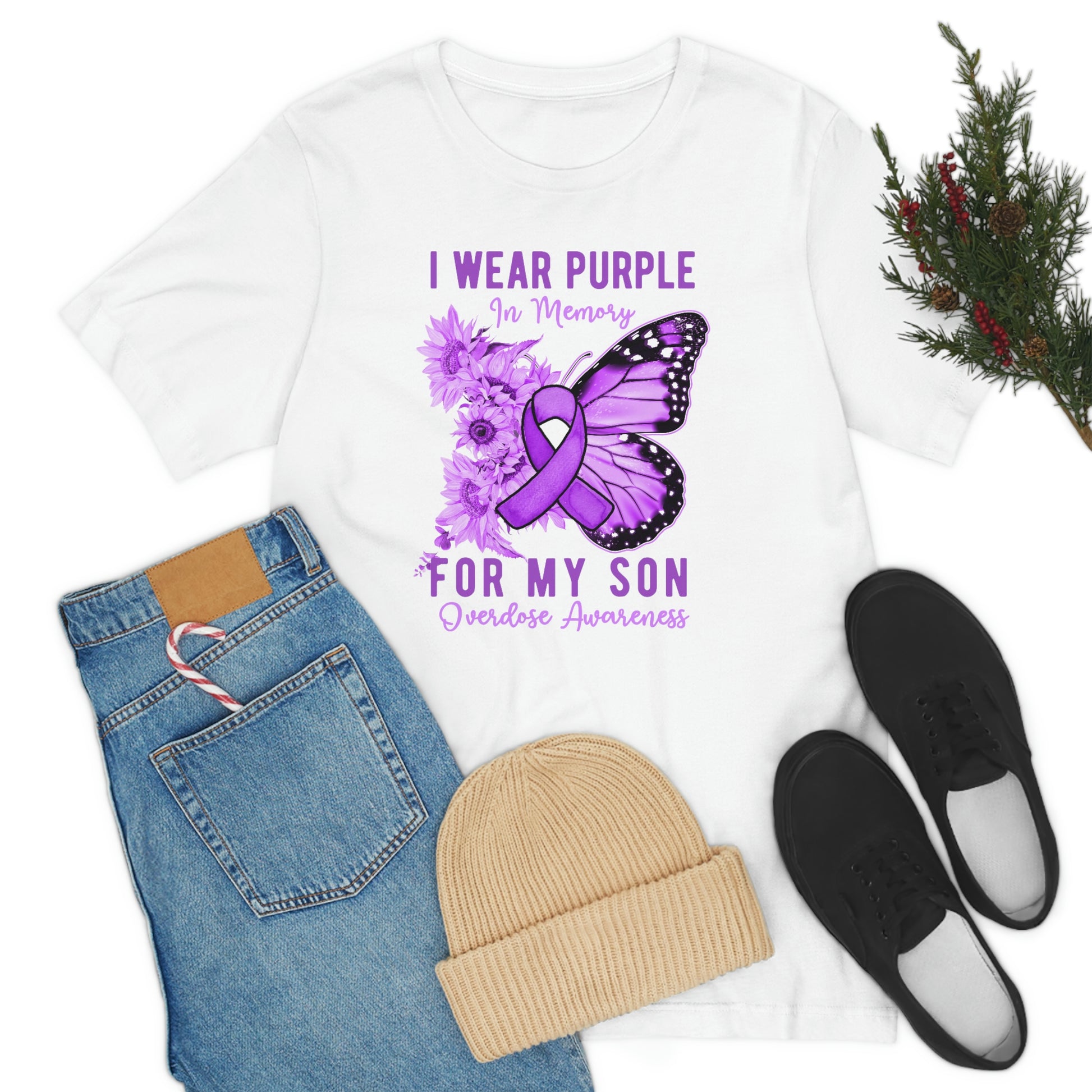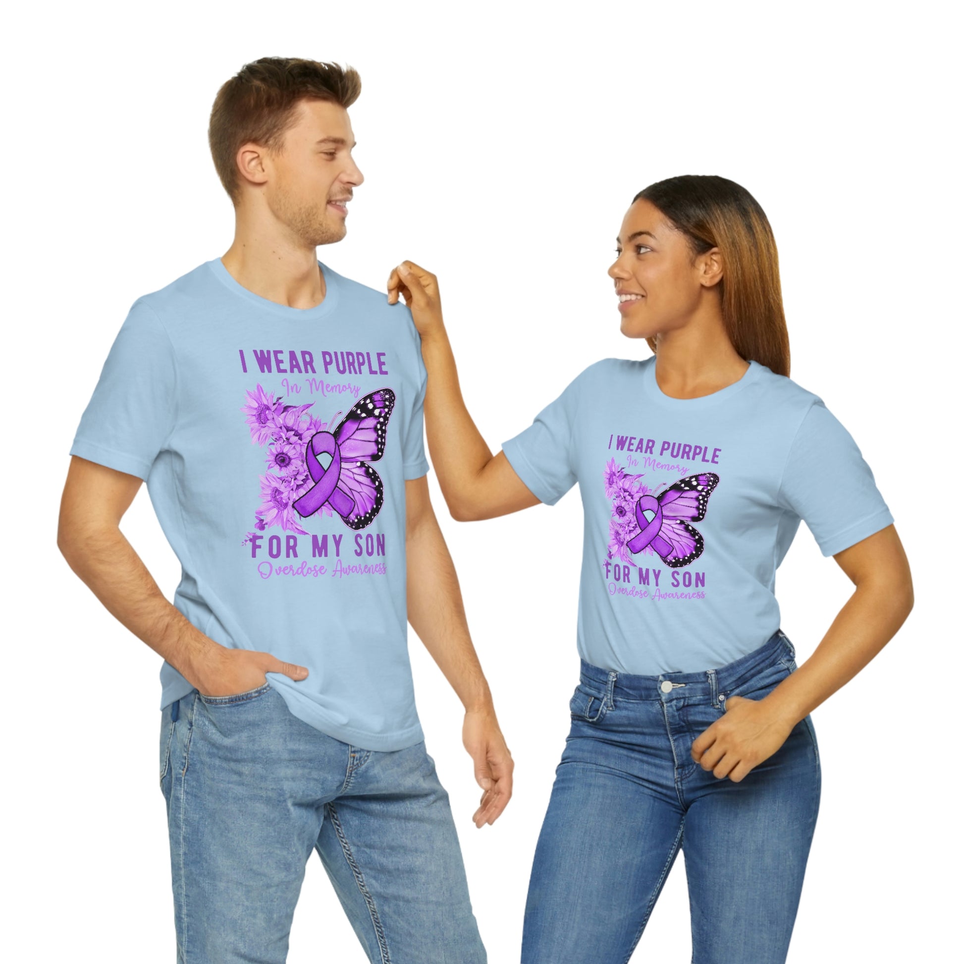 I Wear Purple In Memory For My Son Overdose Awareness Print Unisex Jersey Short Sleeve Tee