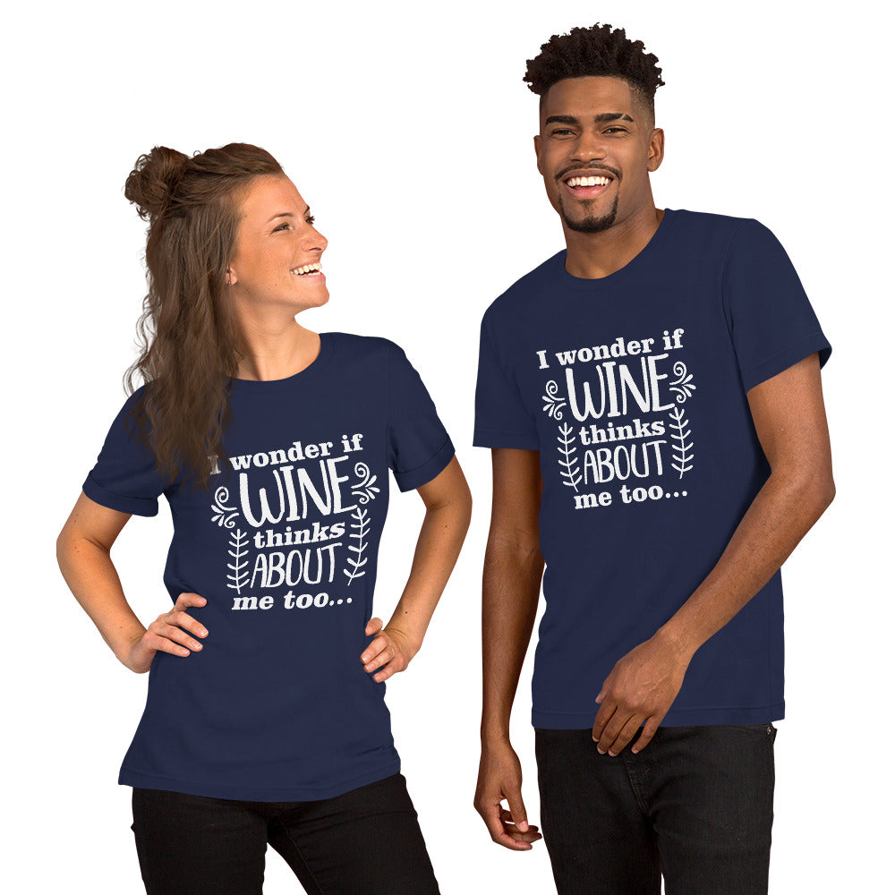 I Wonder if Wine Thinks About Me Too Unisex t-shirt