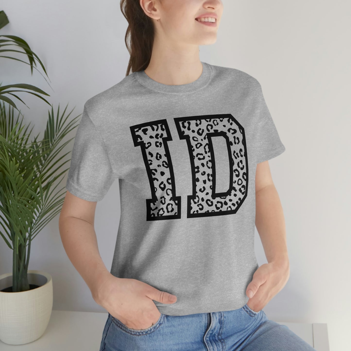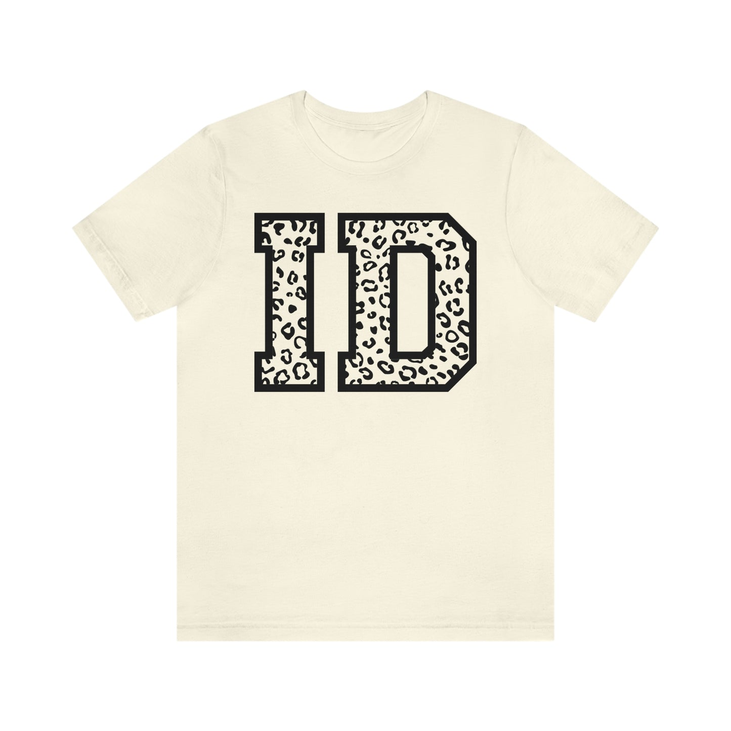 Show off your love and pride in Idaho with this classic unisex short sleeve t-shirt showing the letters ID in leopard print letters. This tee fits like a well-loved favorite. Soft cotton and quality print make you fall in love with it over and over again. These t-shirts have ribbed knit collars to bolster shaping. The shoulders have taping for better fit over time. Dual side seams hold the garment's shape for longer.