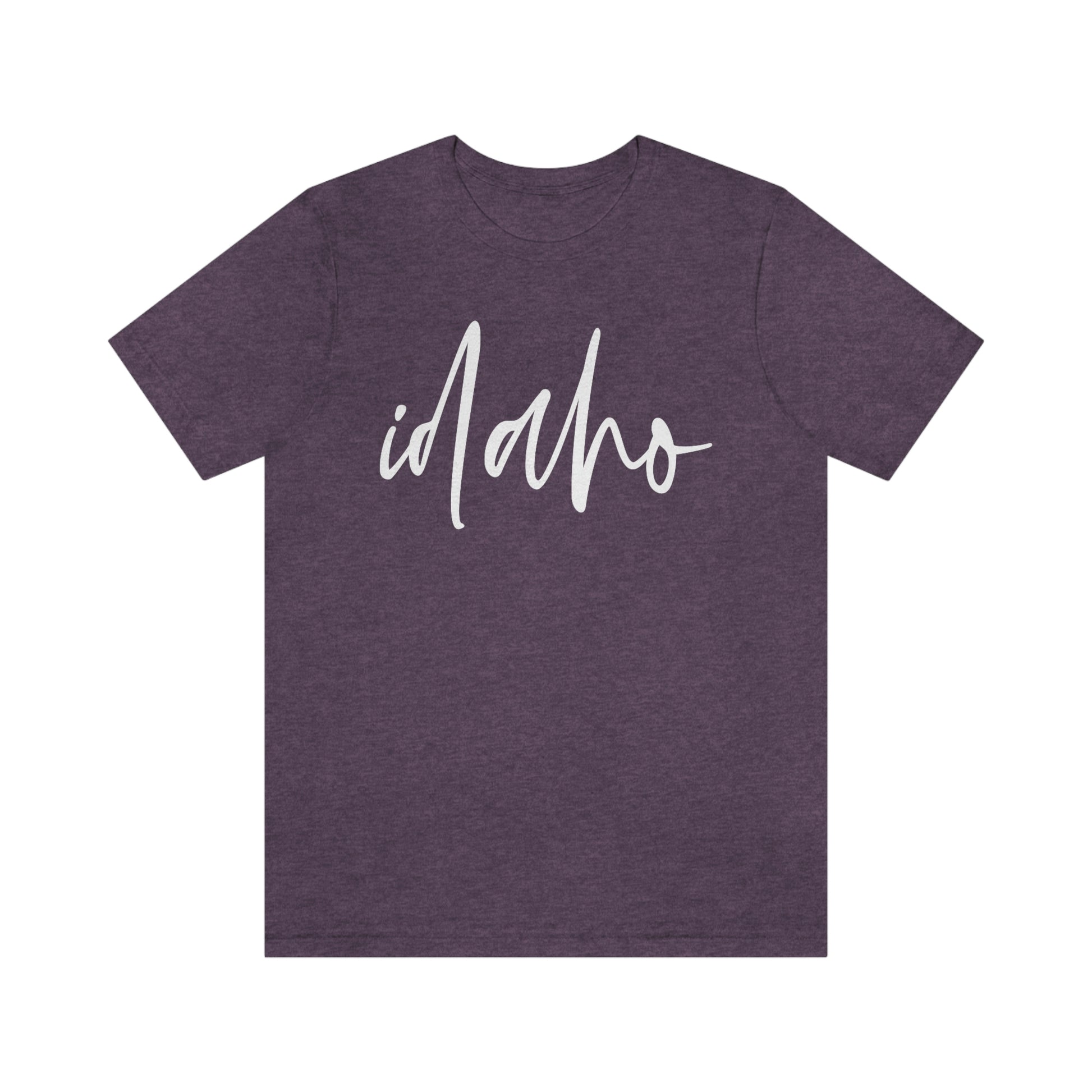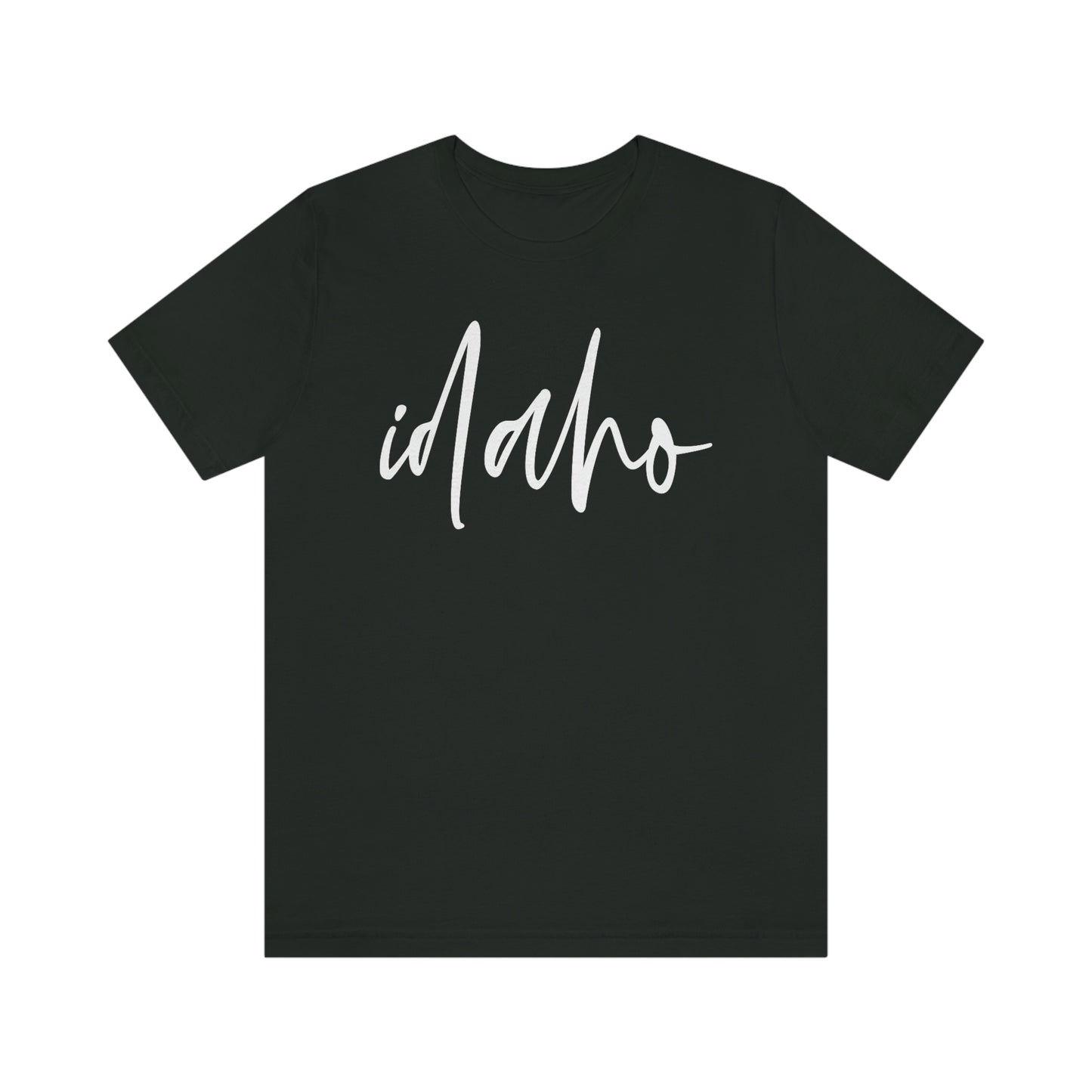Show off your love and pride in Idaho with this classic unisex short sleeve t-shirt showing Idaho written in white script. This tee fits like a well-loved favorite. Soft cotton and quality print make you fall in love with it over and over again. These t-shirts have ribbed knit collars to bolster shaping. The shoulders have taping for better fit over time. Dual side seams hold the garment's shape for longer.