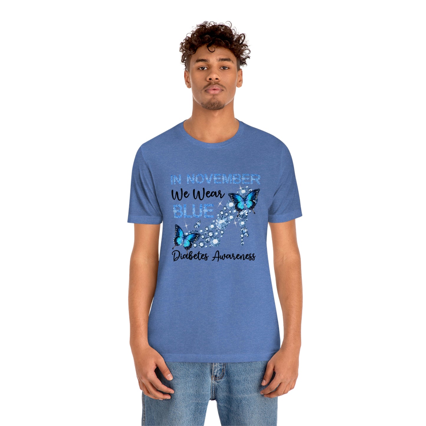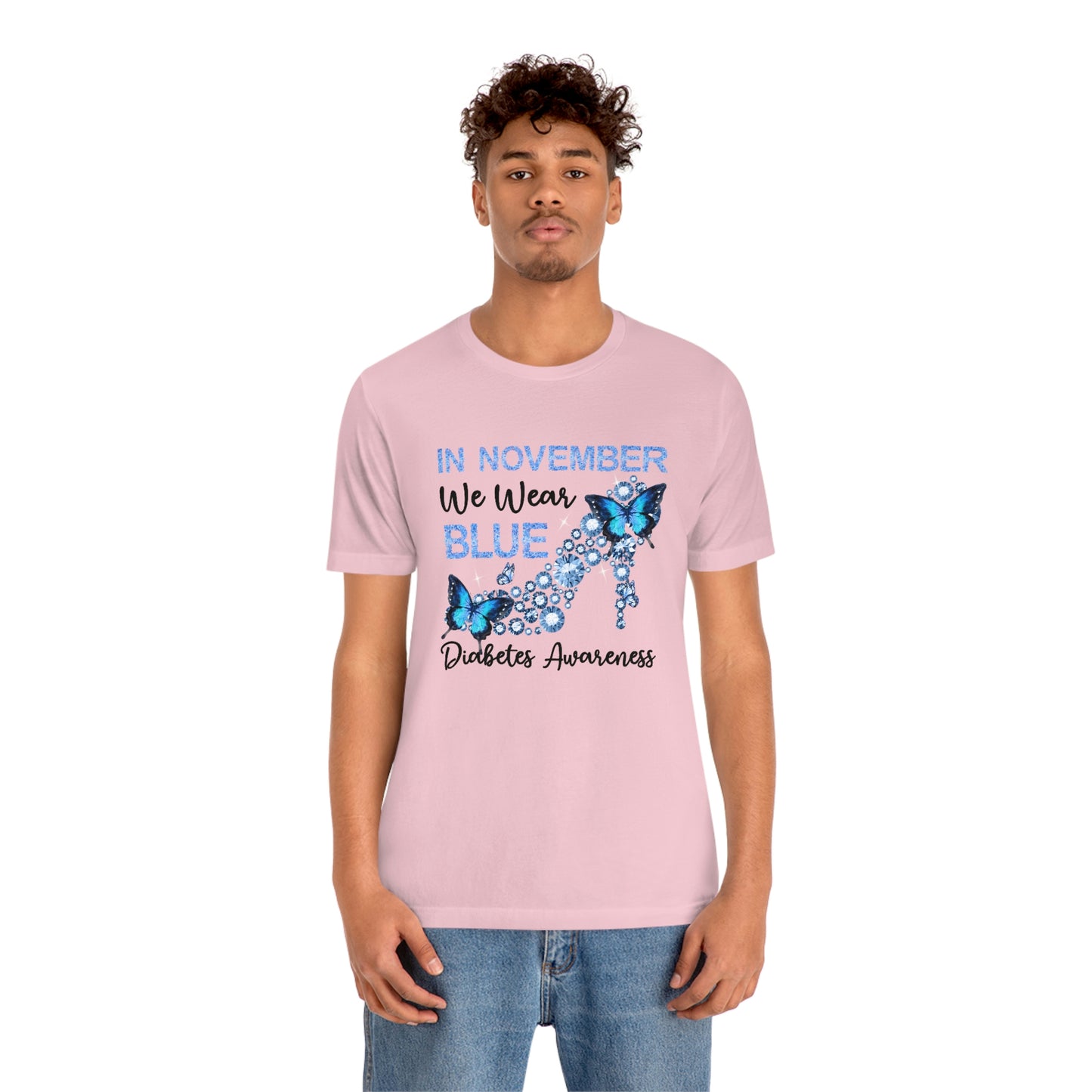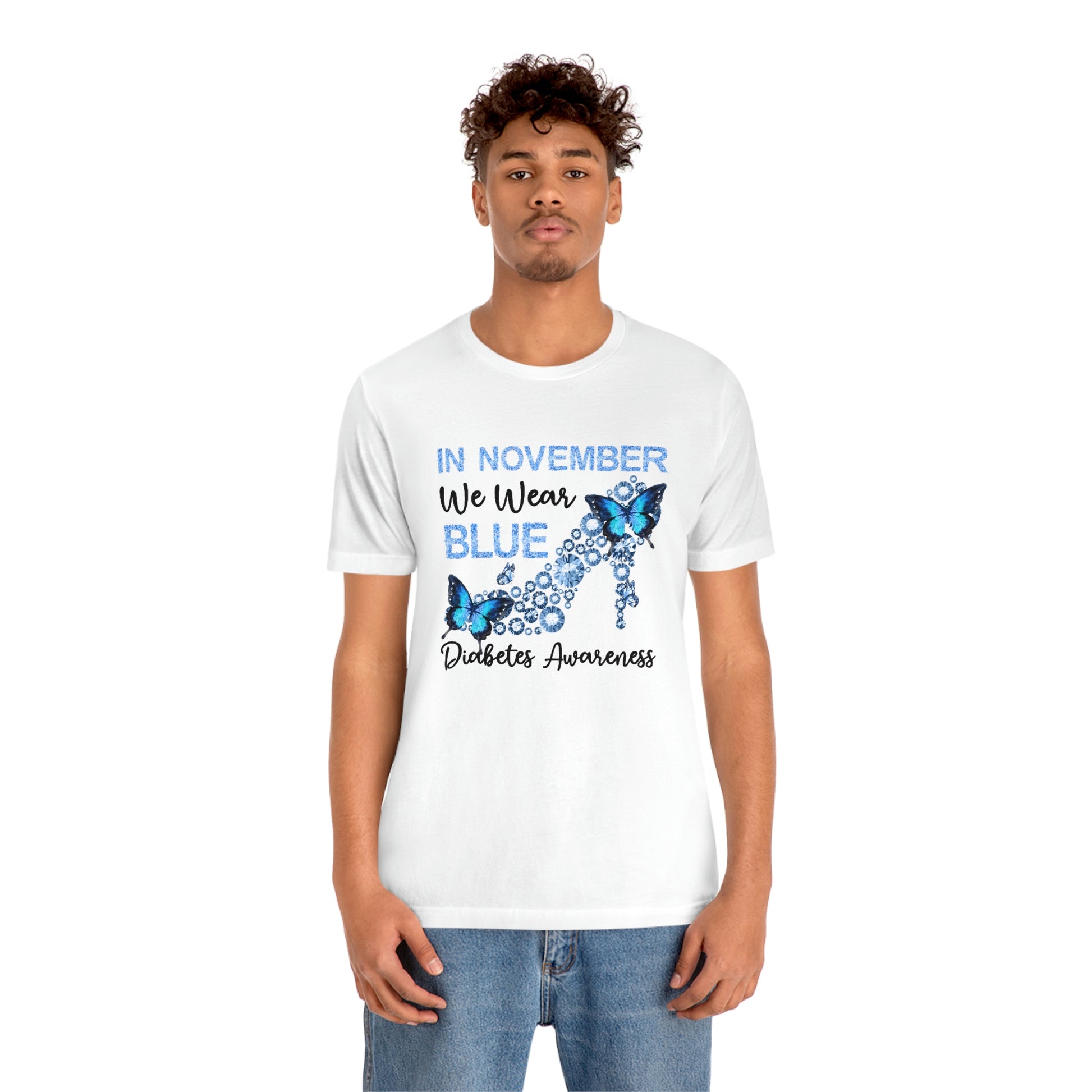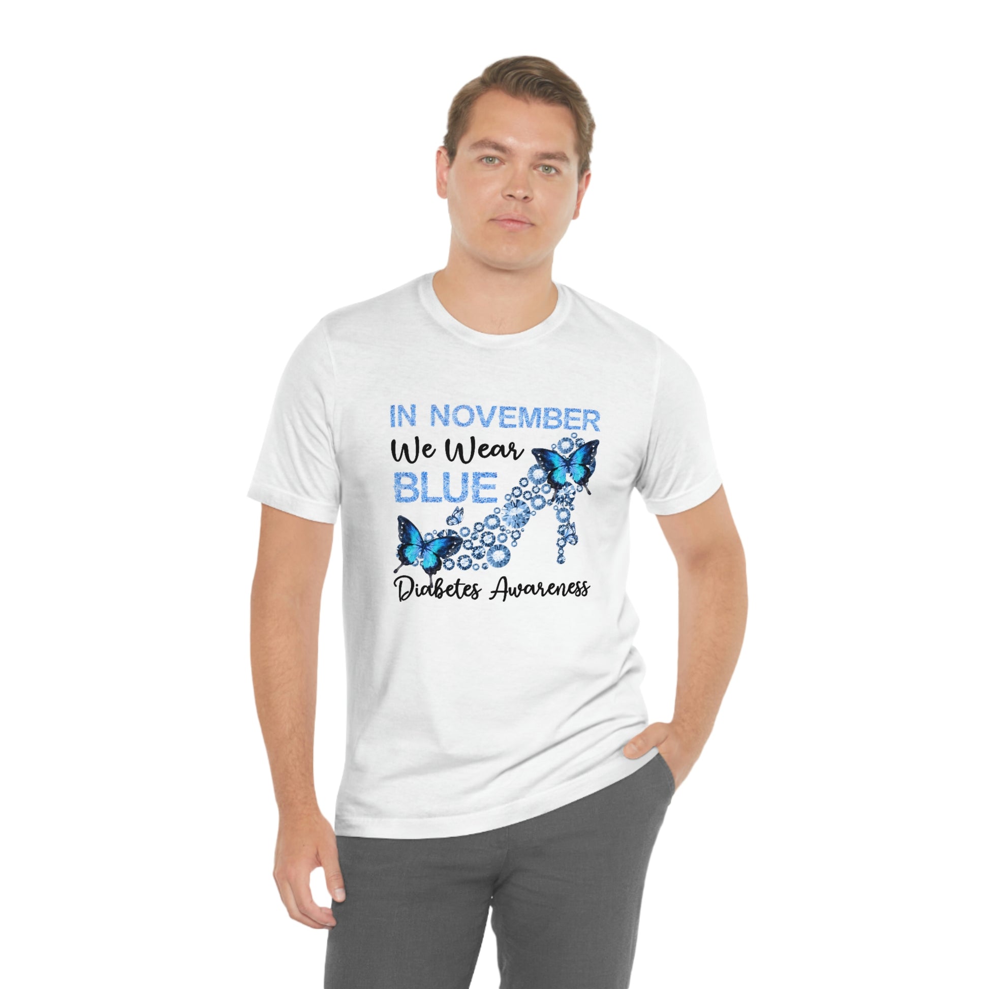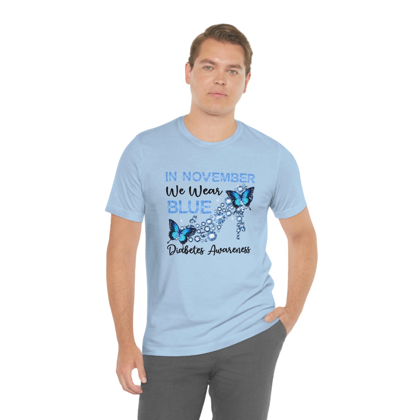 In November We Wear Blue Diabetes Awareness Print Unisex Jersey Short Sleeve Tee