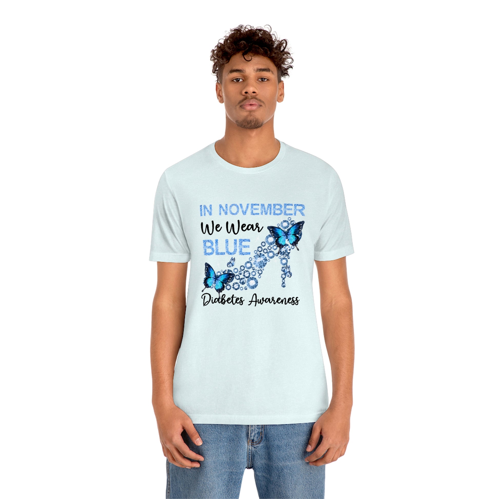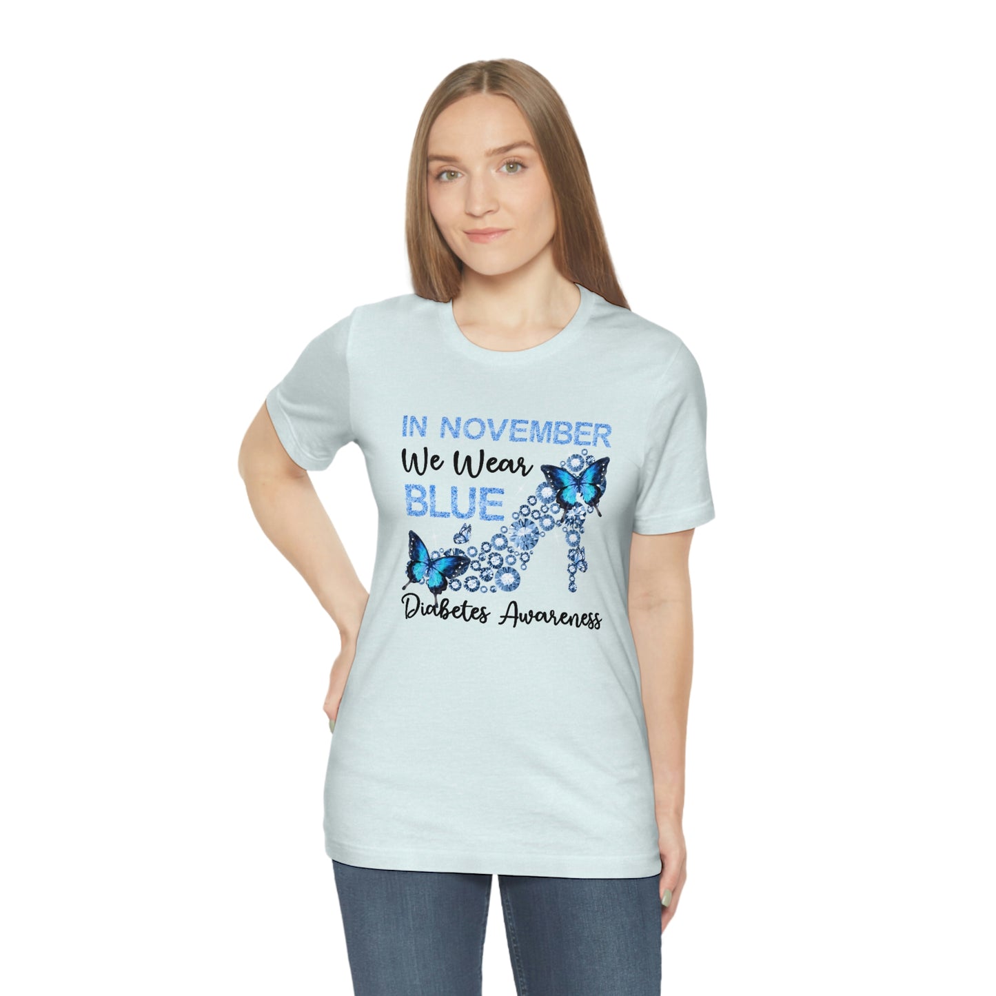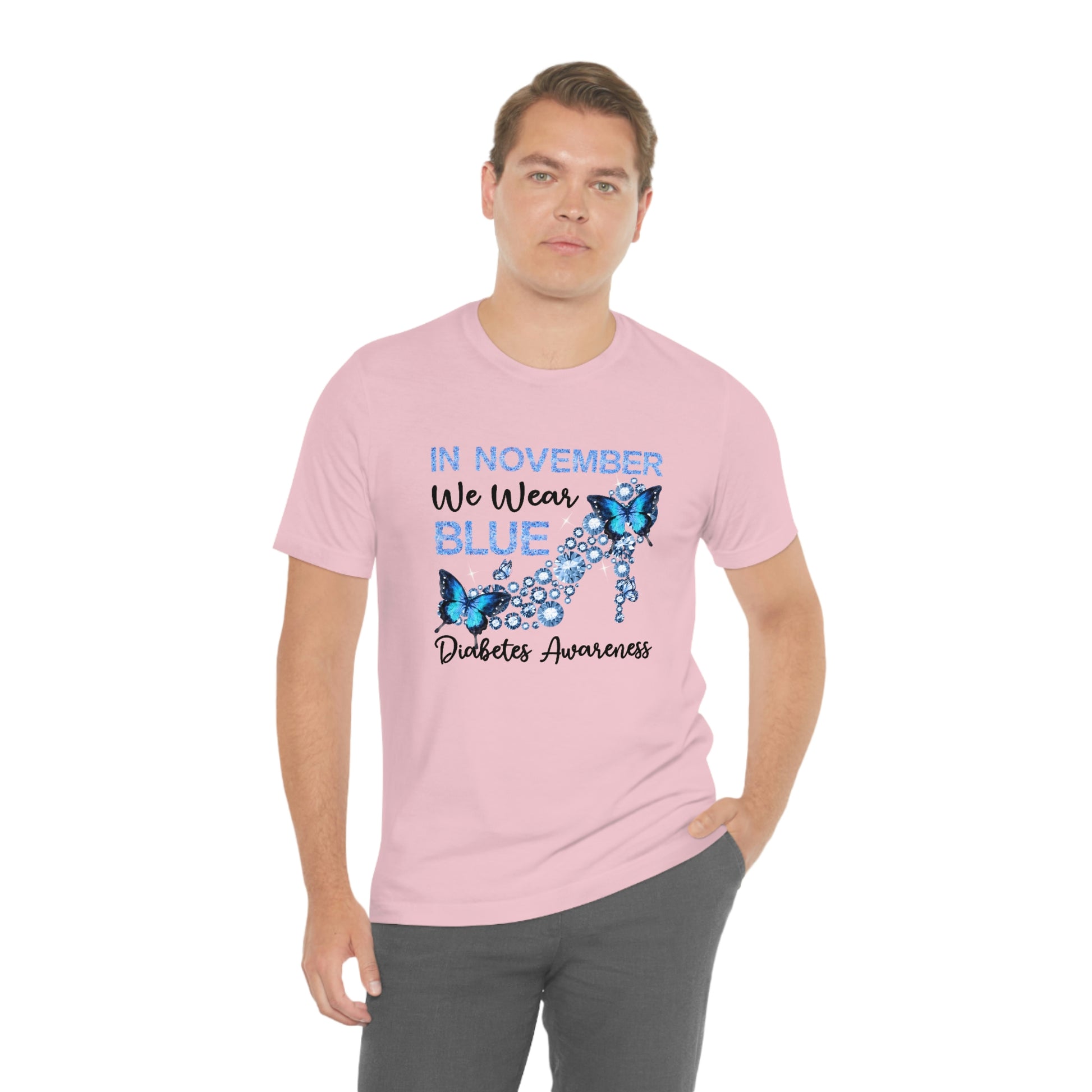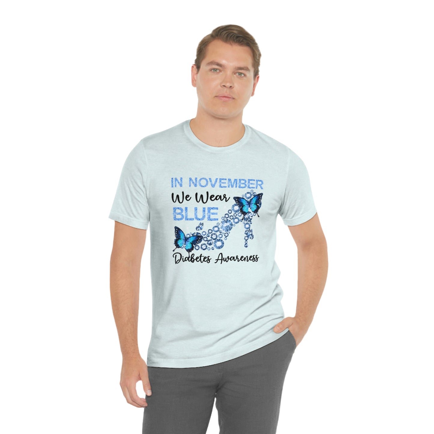 In November We Wear Blue Diabetes Awareness Print Unisex Jersey Short Sleeve Tee