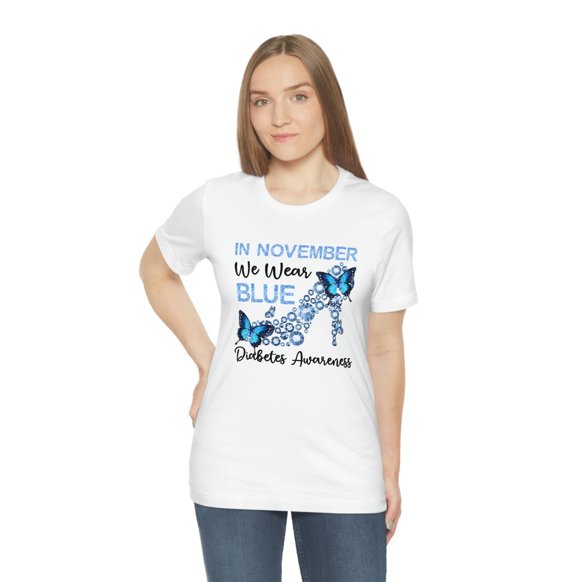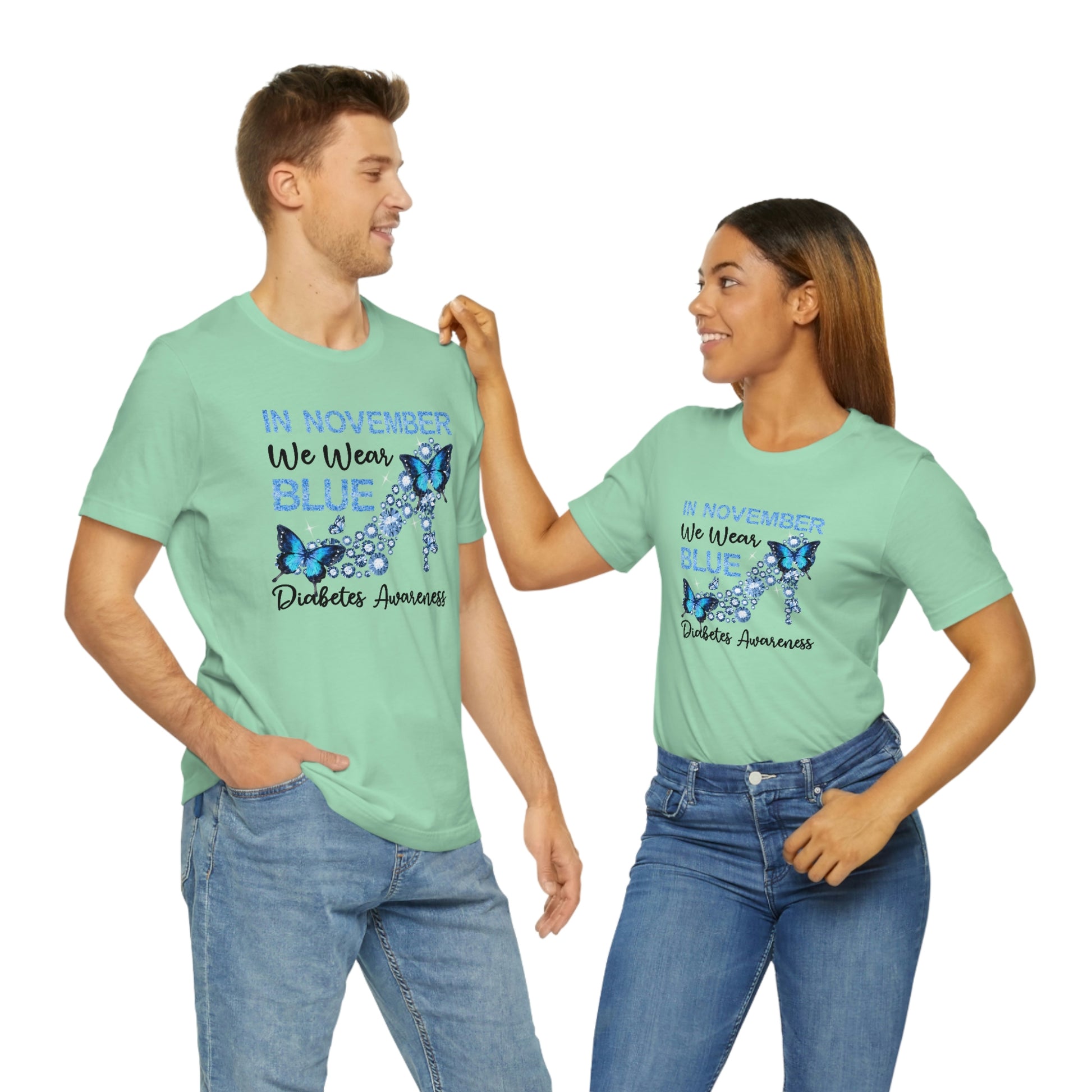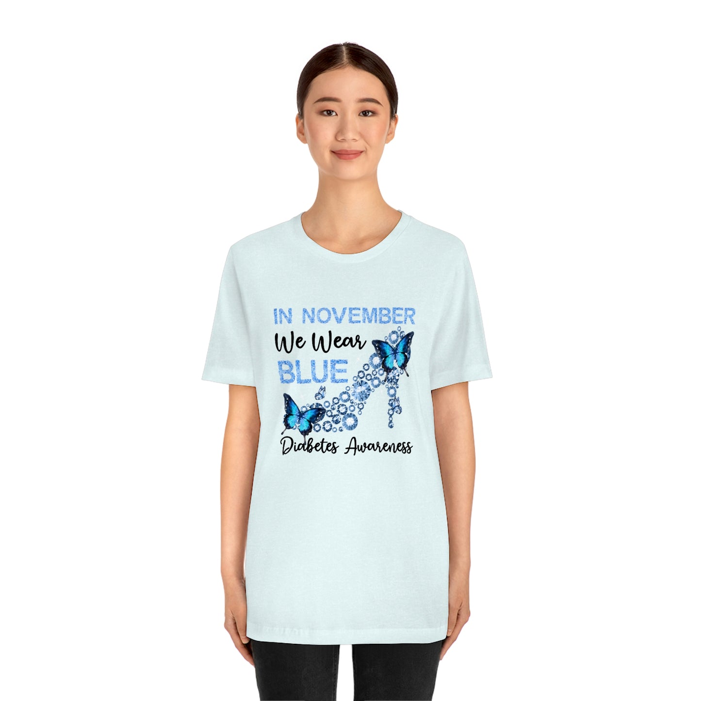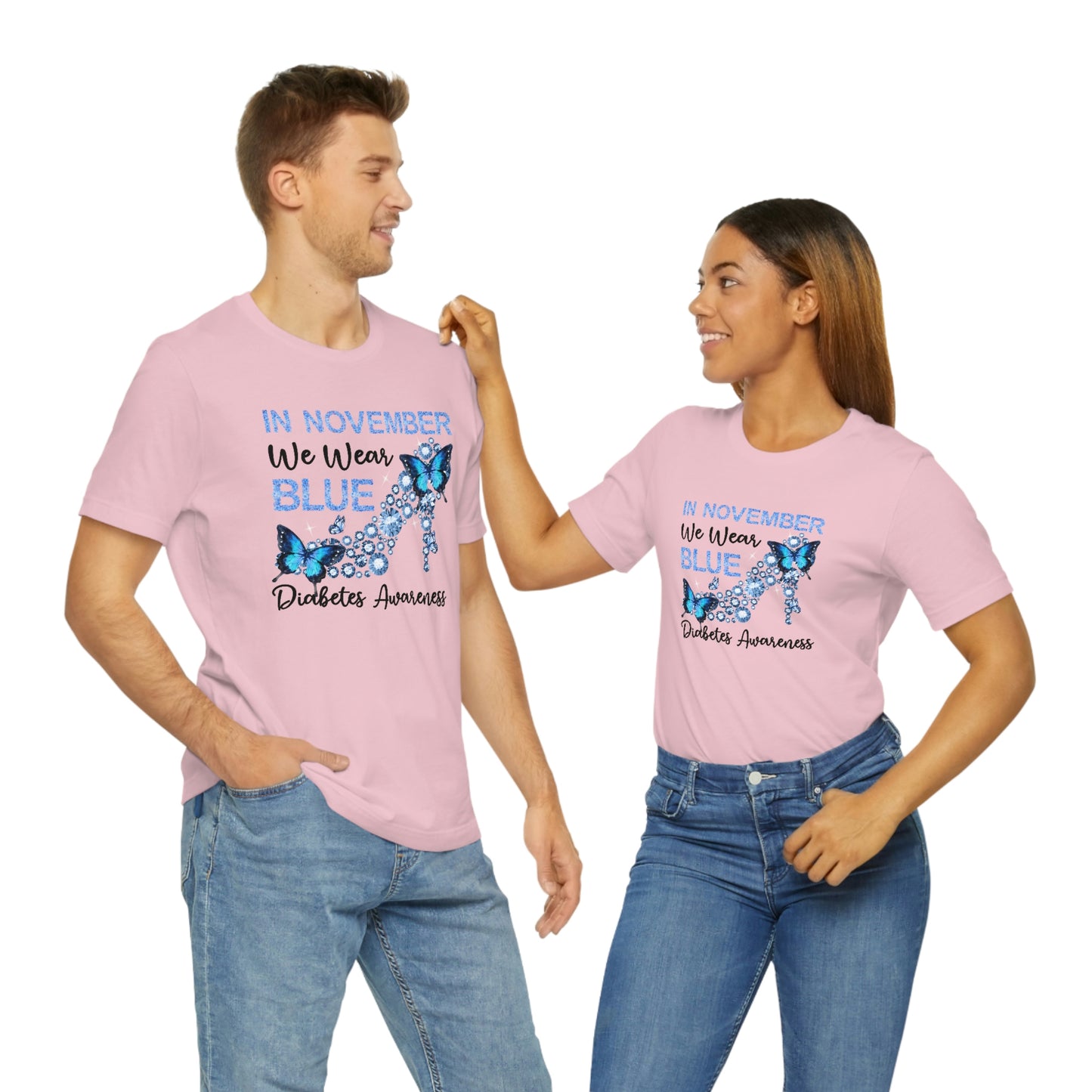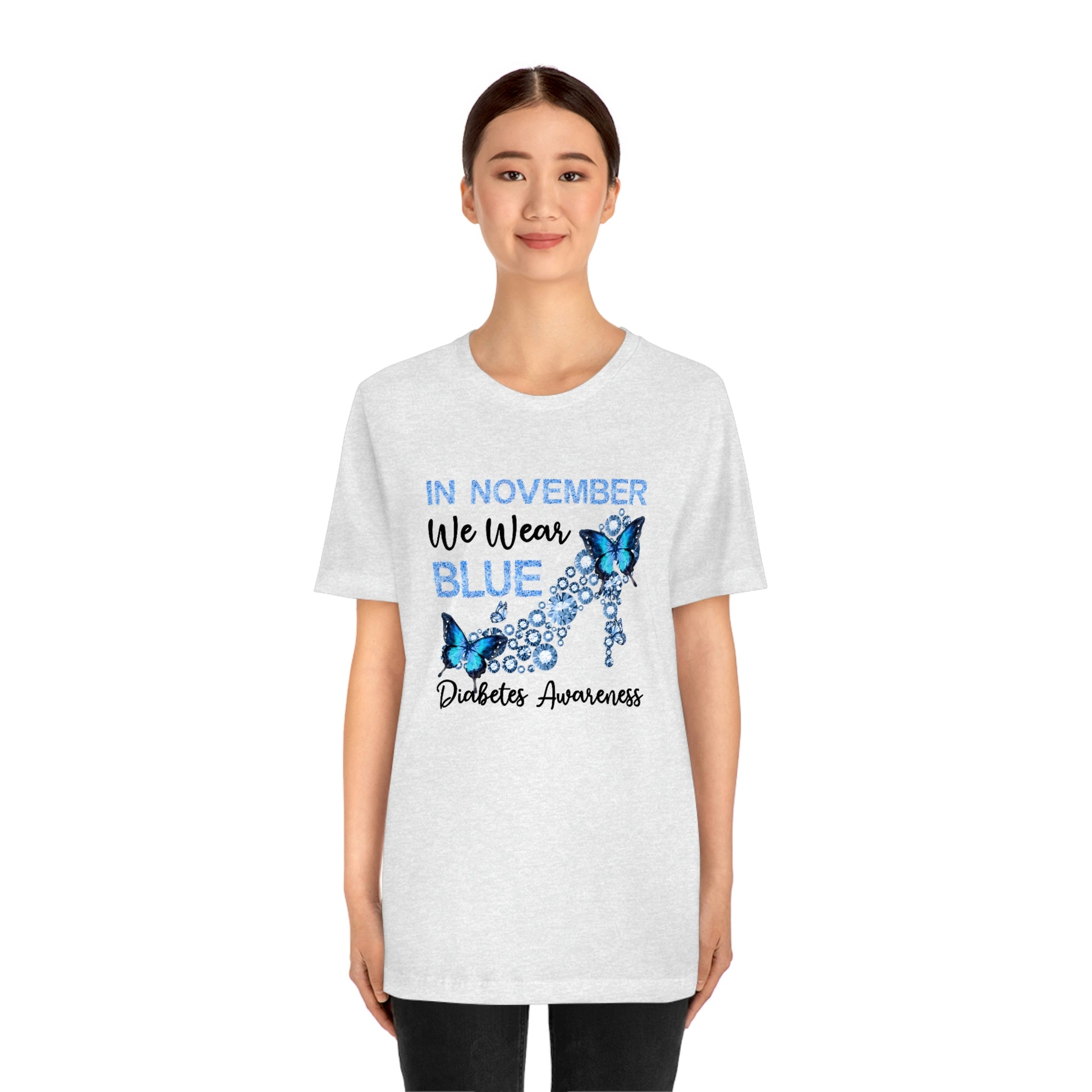 In November We Wear Blue Diabetes Awareness Print Unisex Jersey Short Sleeve Tee