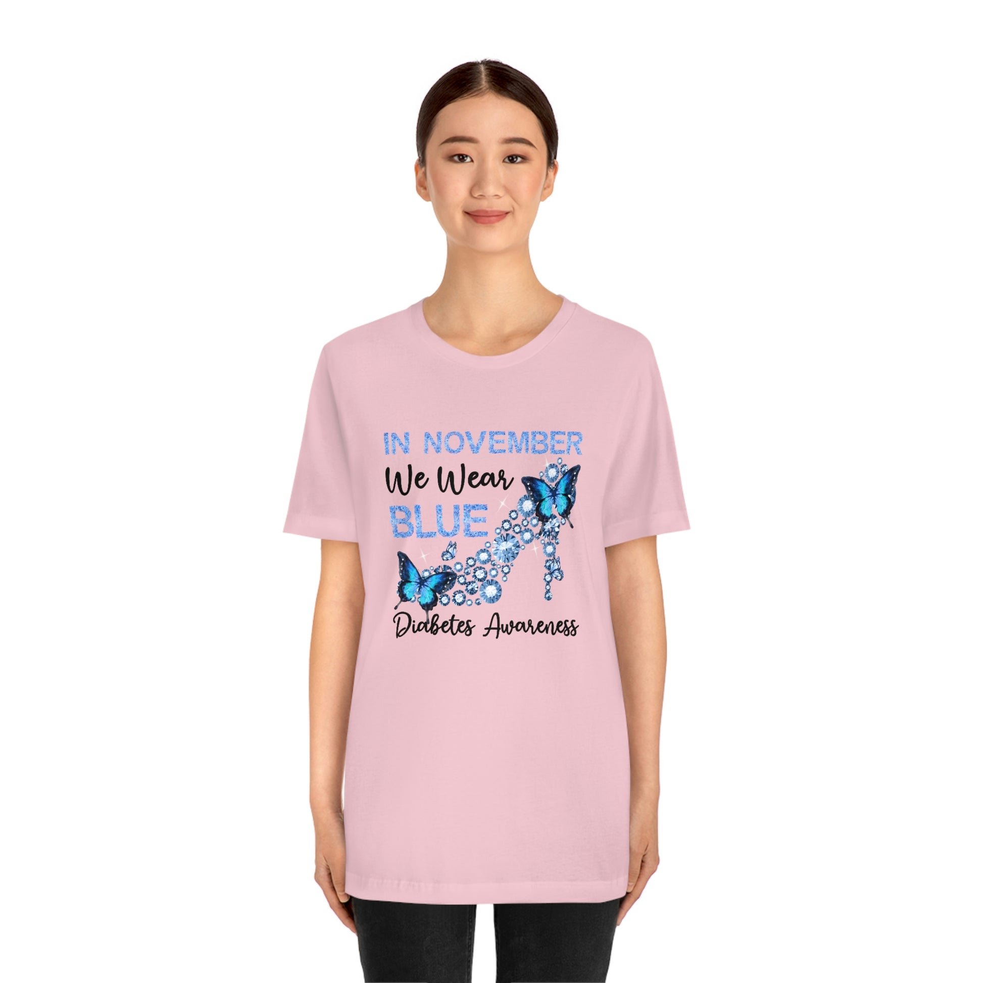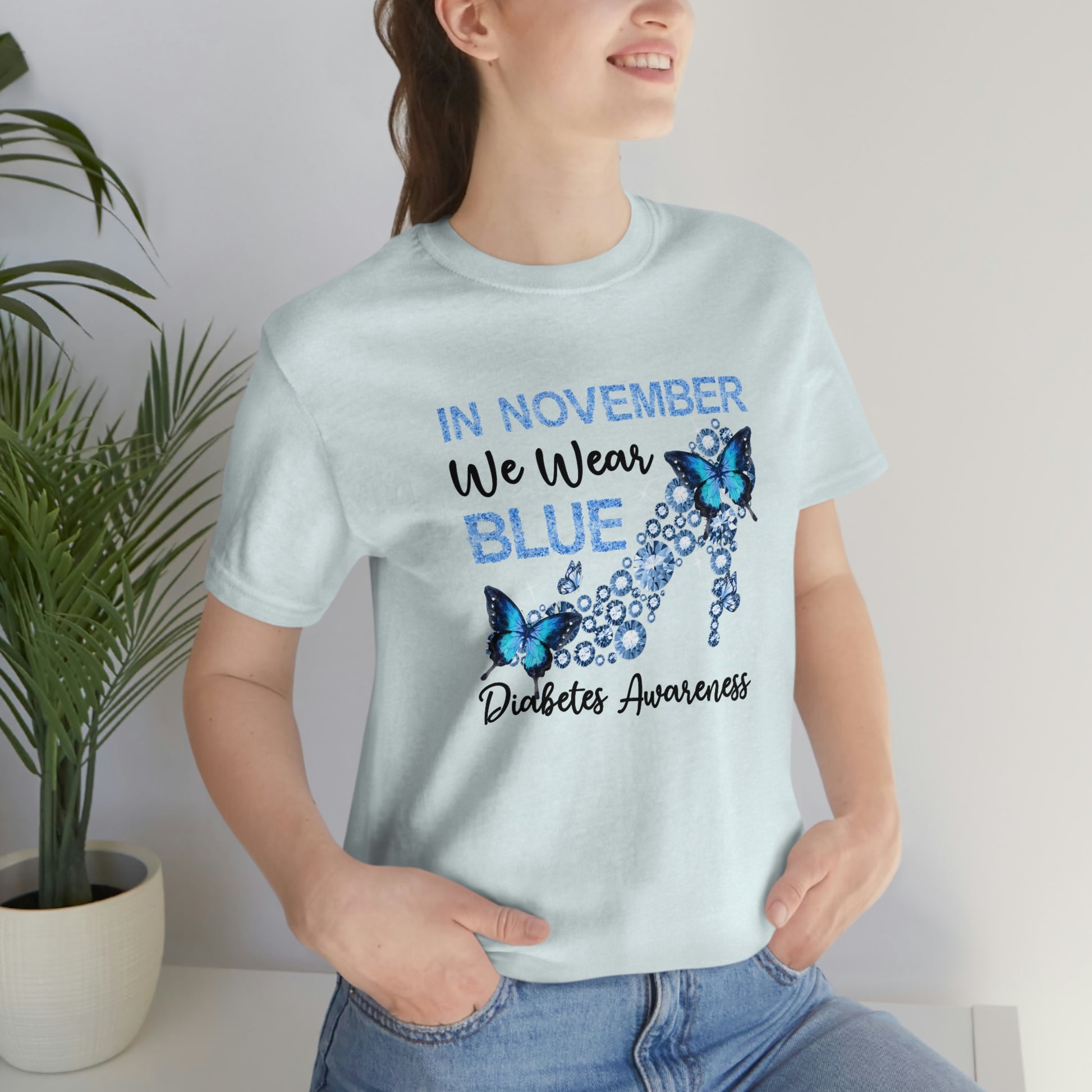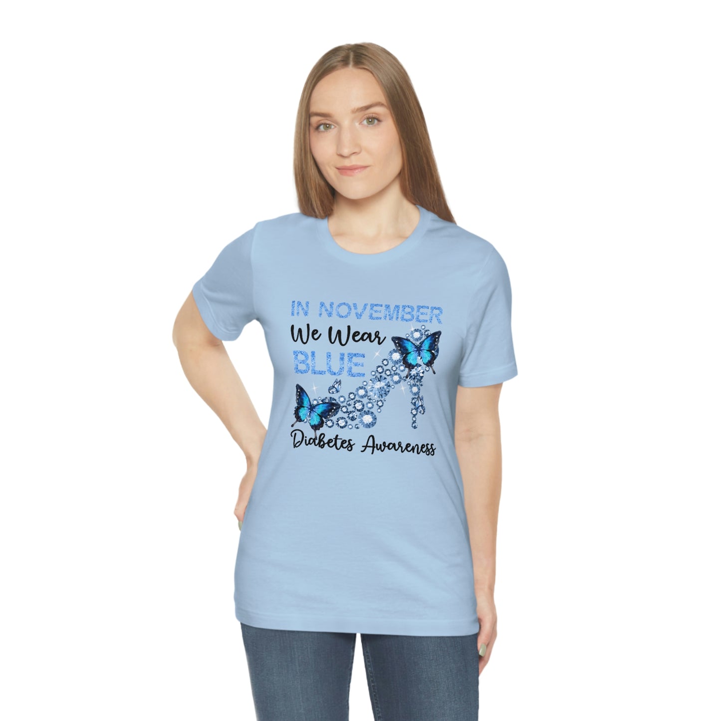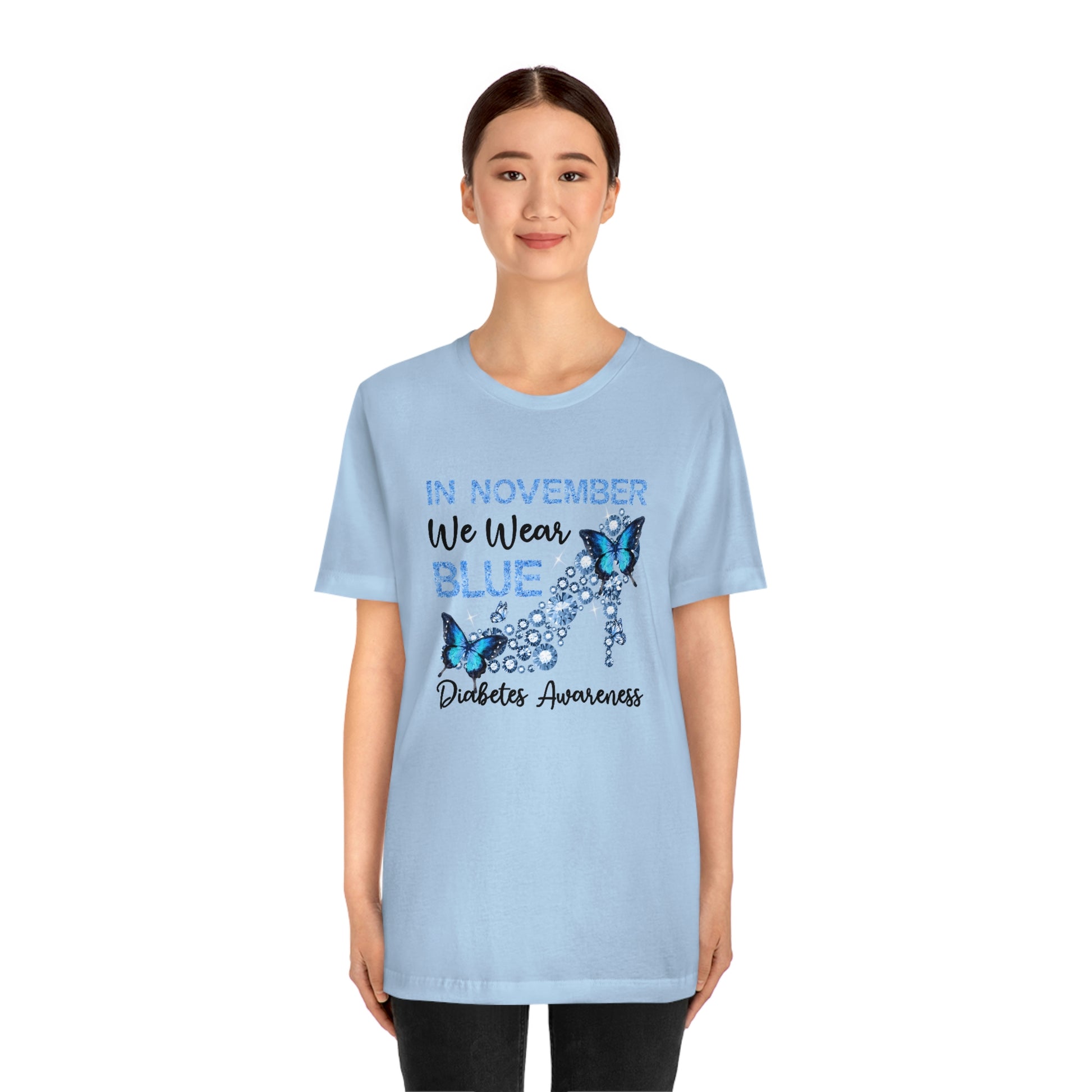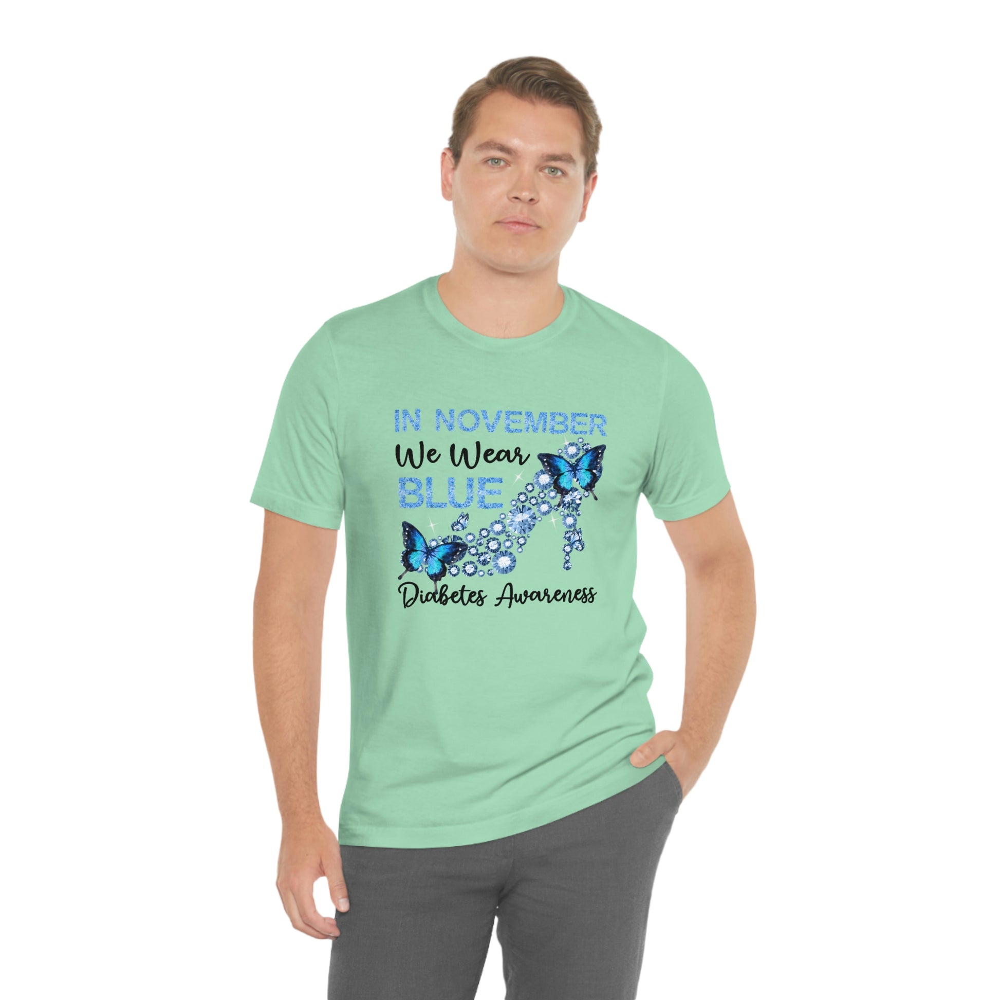 In November We Wear Blue Diabetes Awareness Print Unisex Jersey Short Sleeve Tee