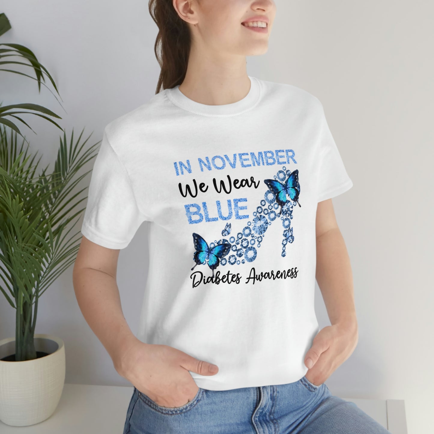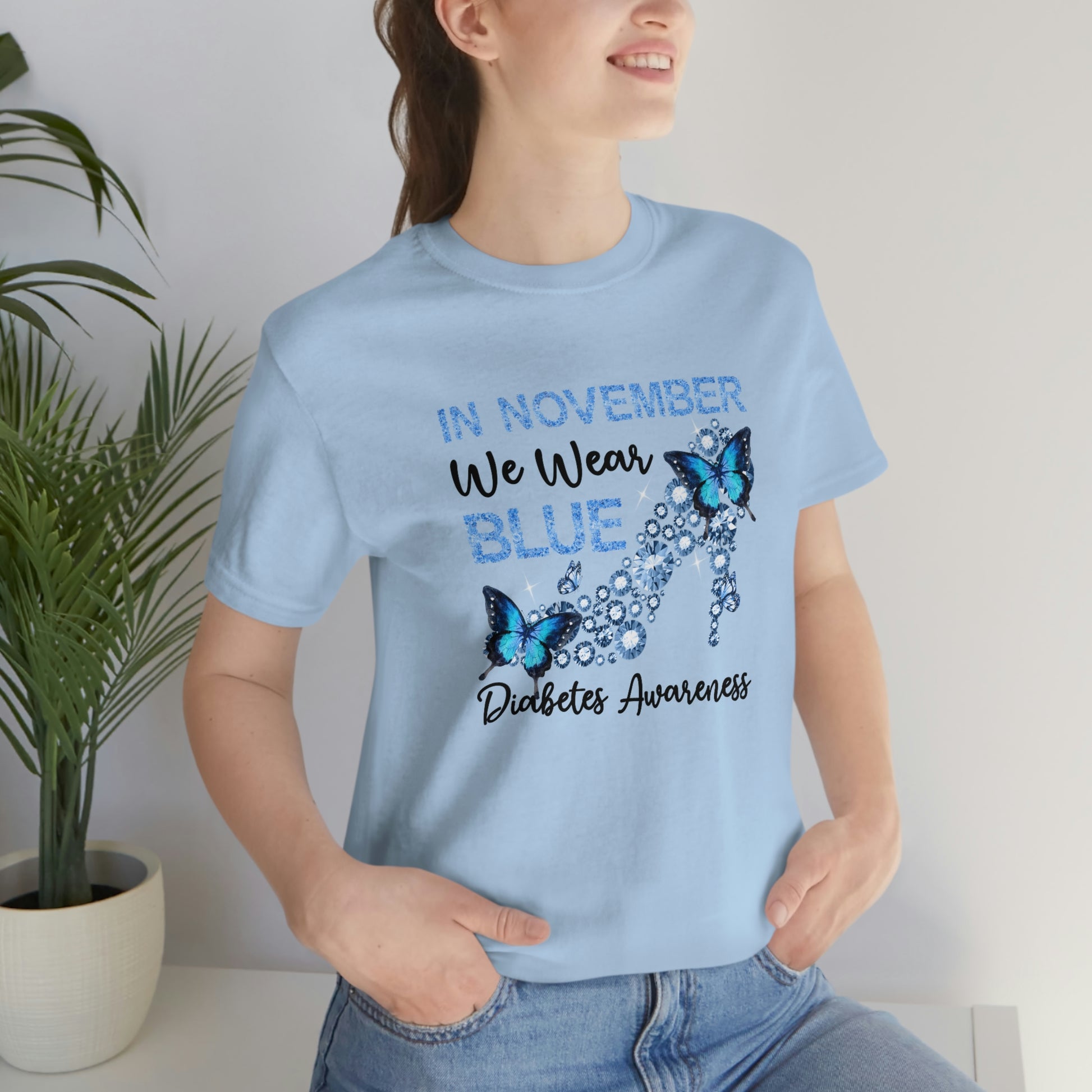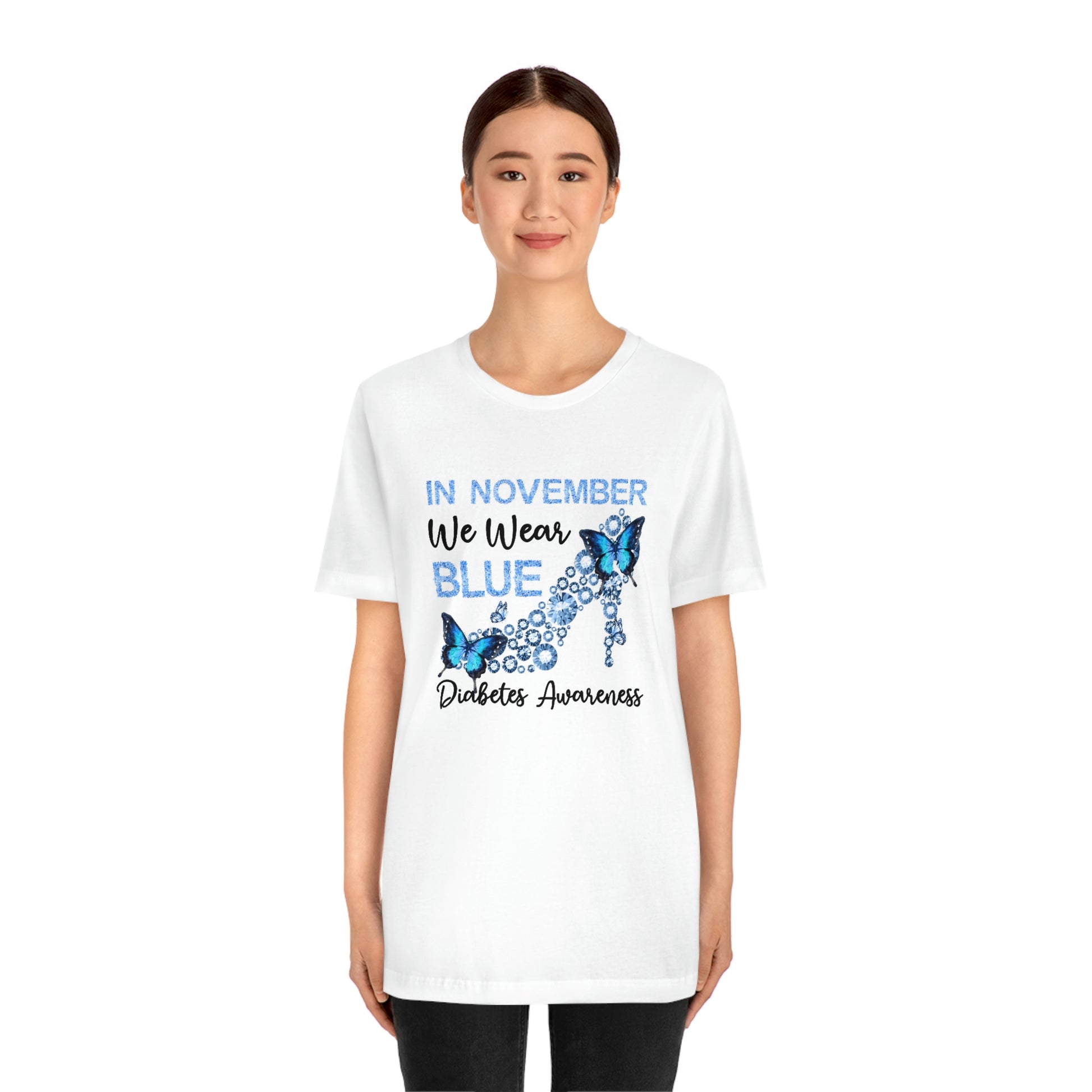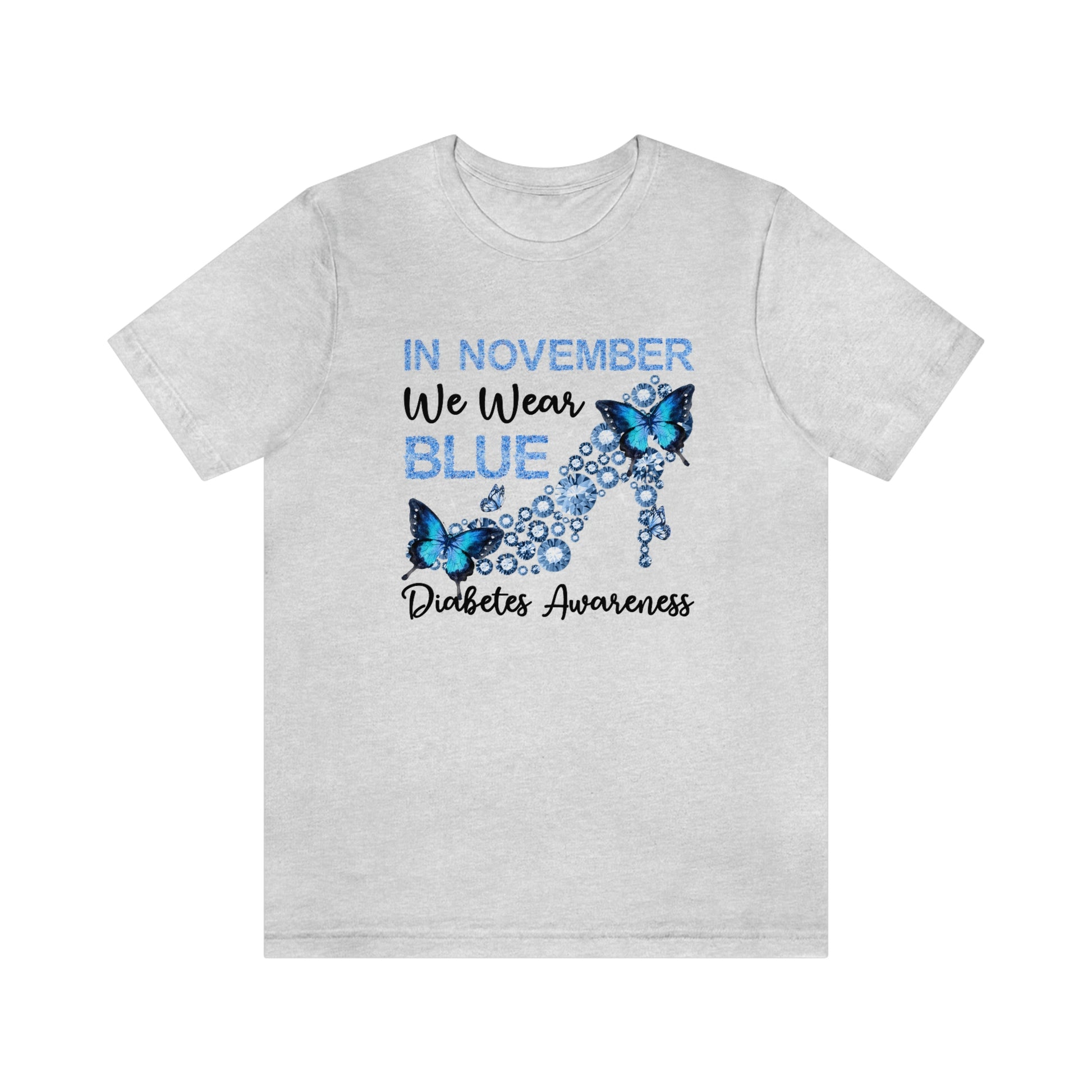 In November We Wear Blue Diabetes Awareness Print Unisex Jersey Short Sleeve Tee