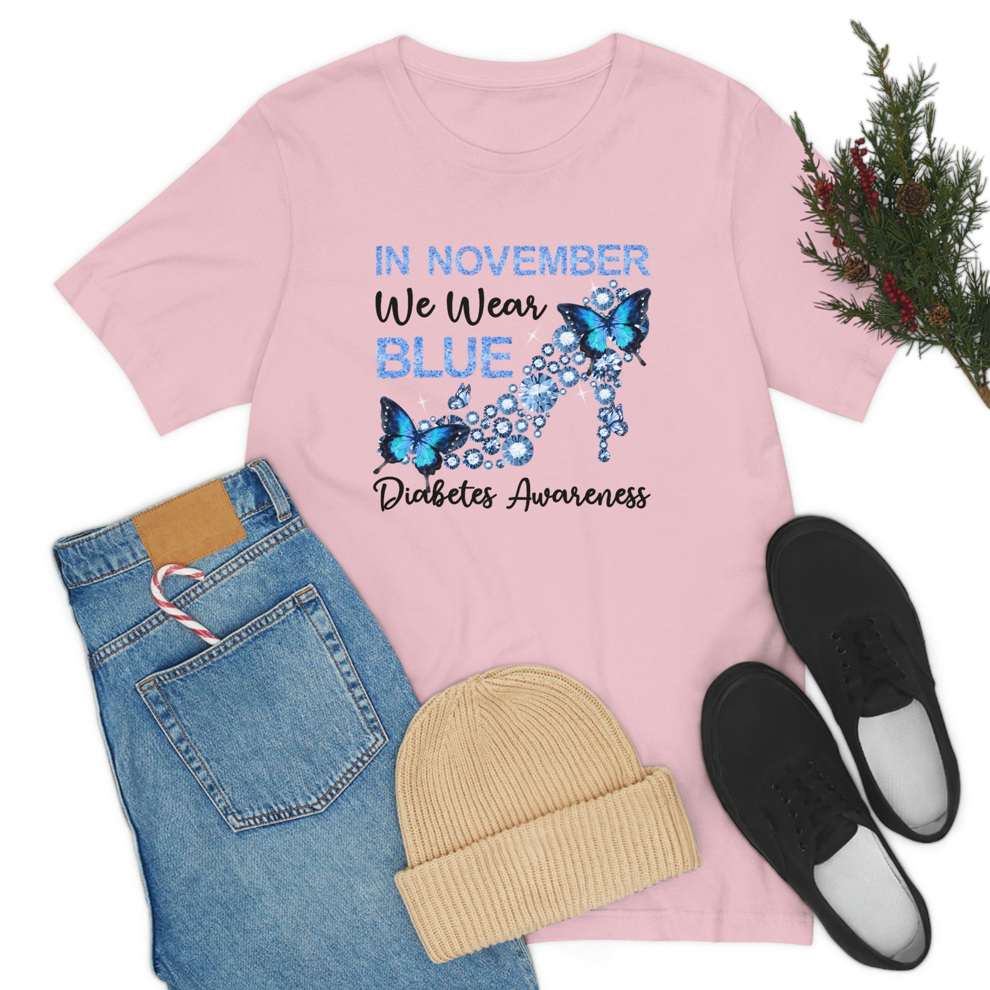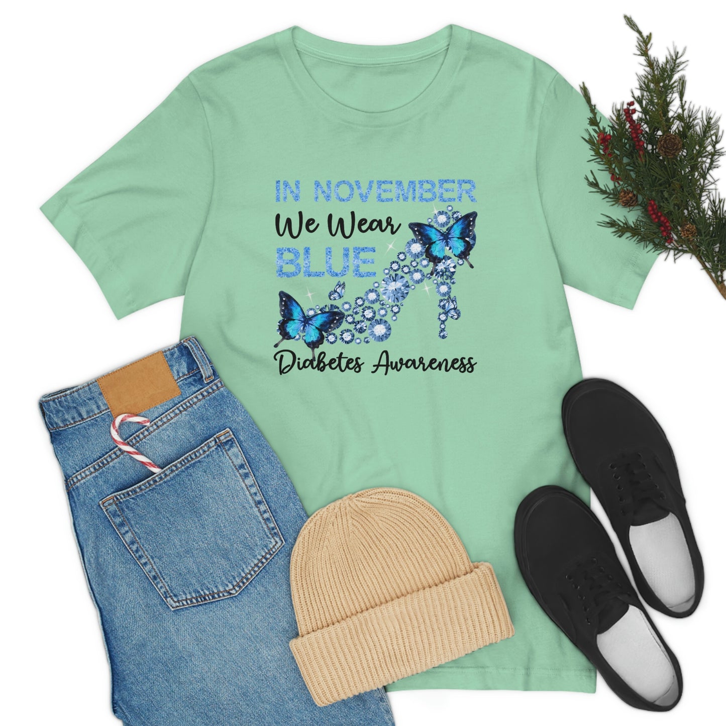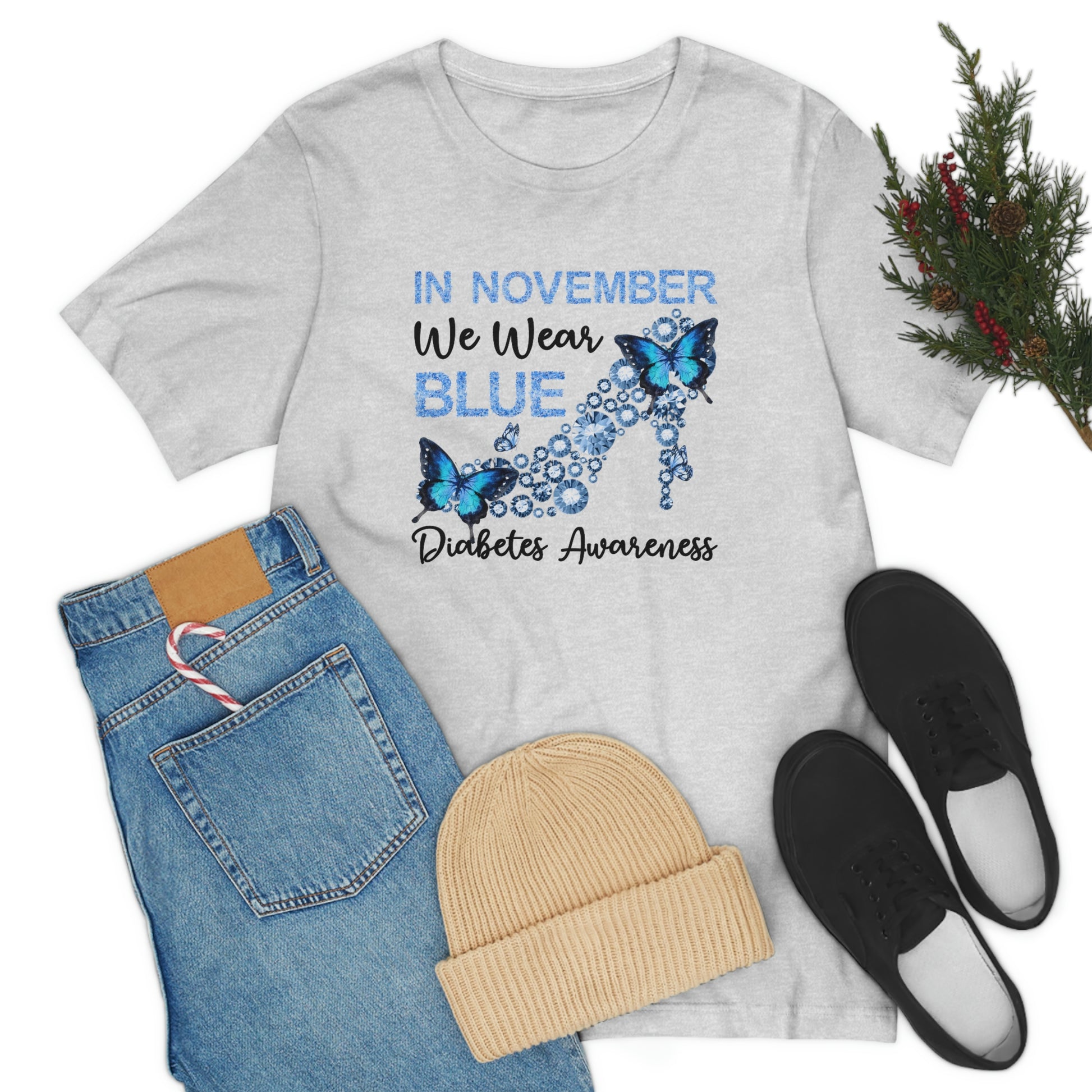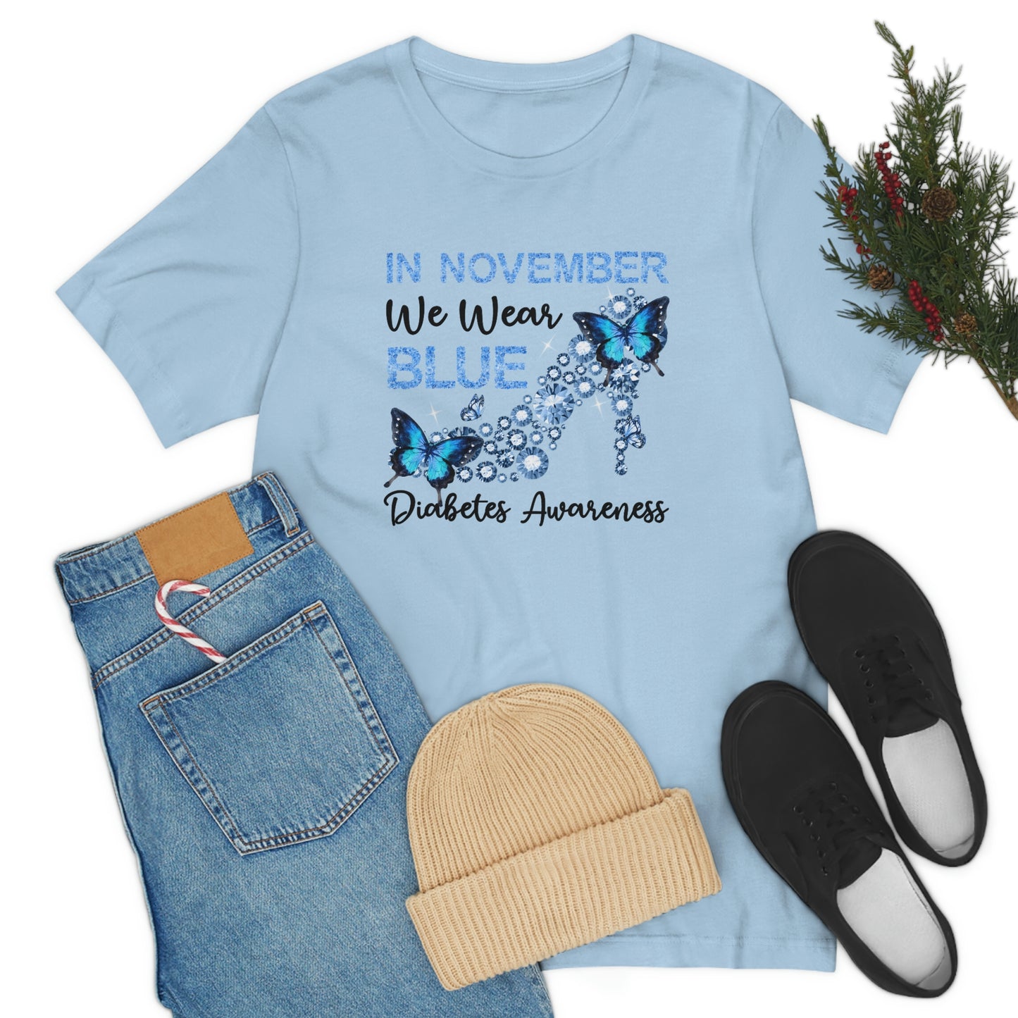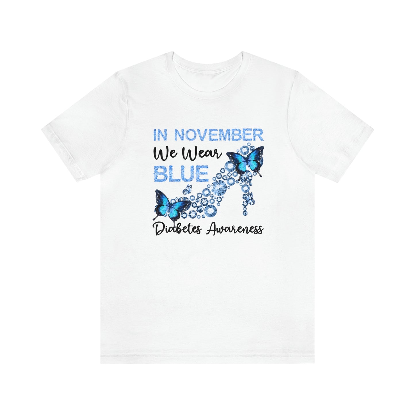 In November We Wear Blue Diabetes Awareness Print Unisex Jersey Short Sleeve Tee