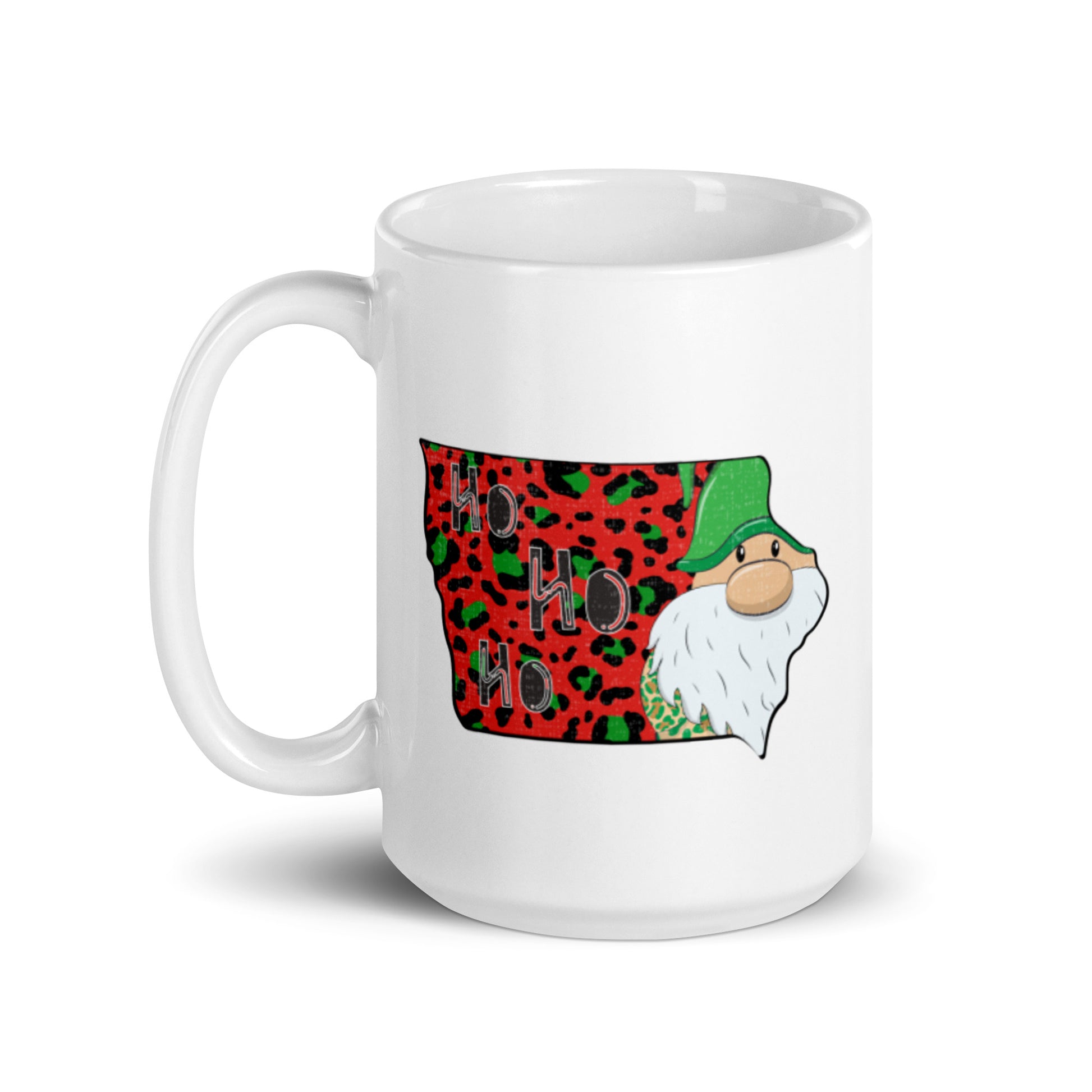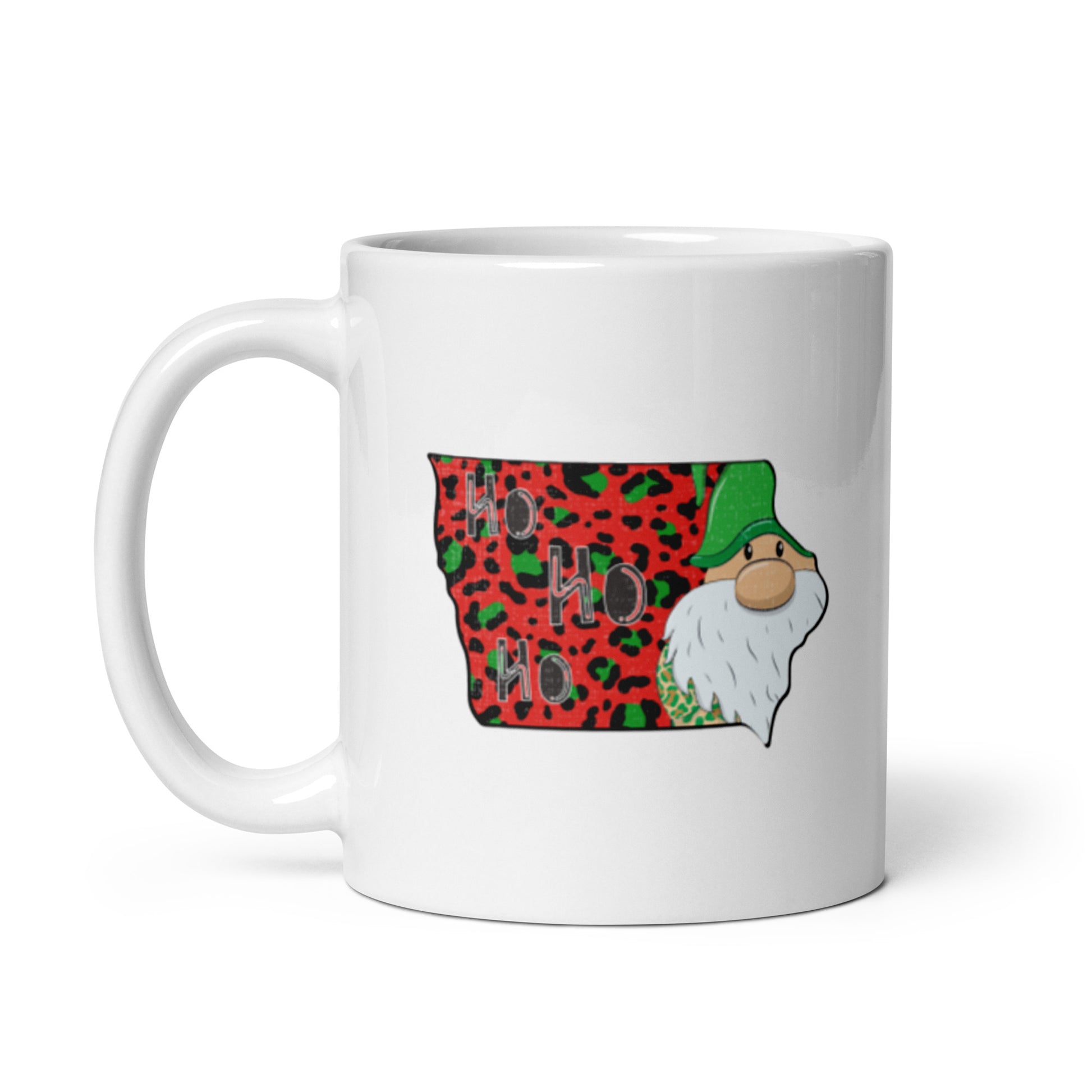 Iowa Christmas Elf Ho Ho Ho White glossy mug