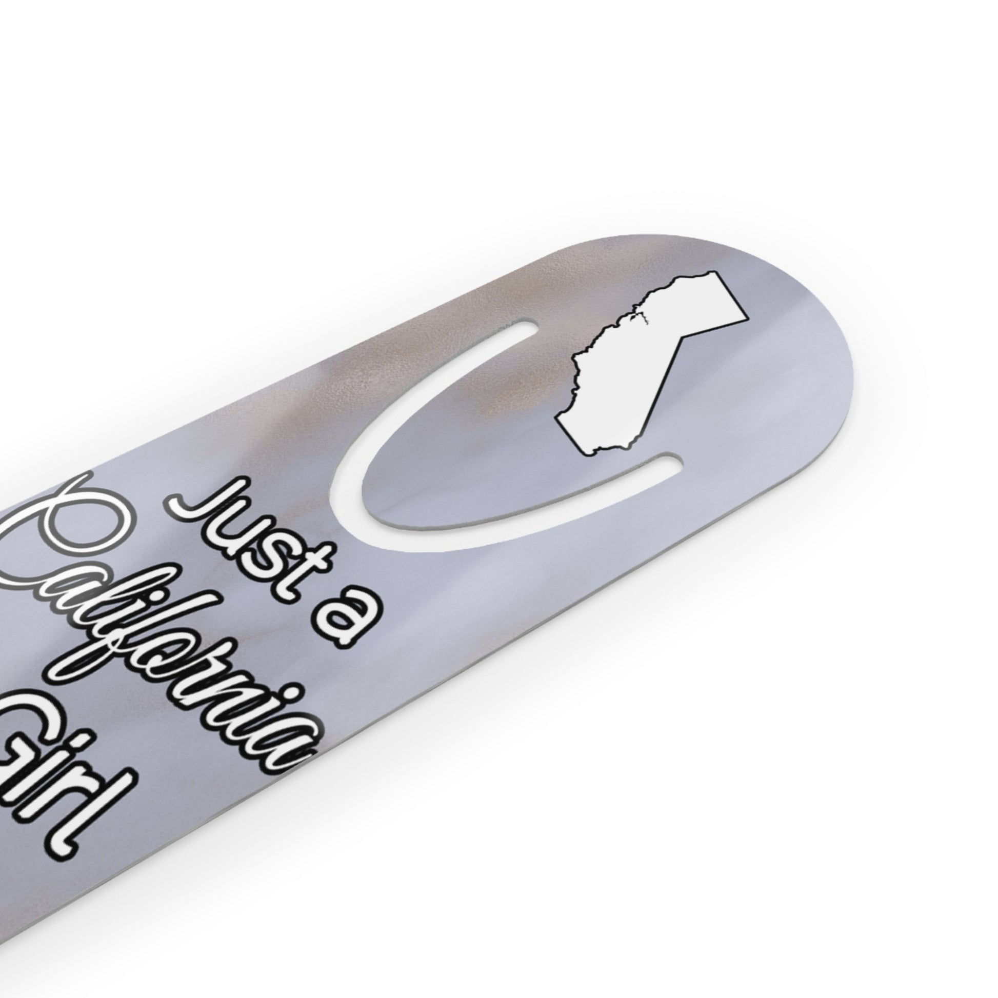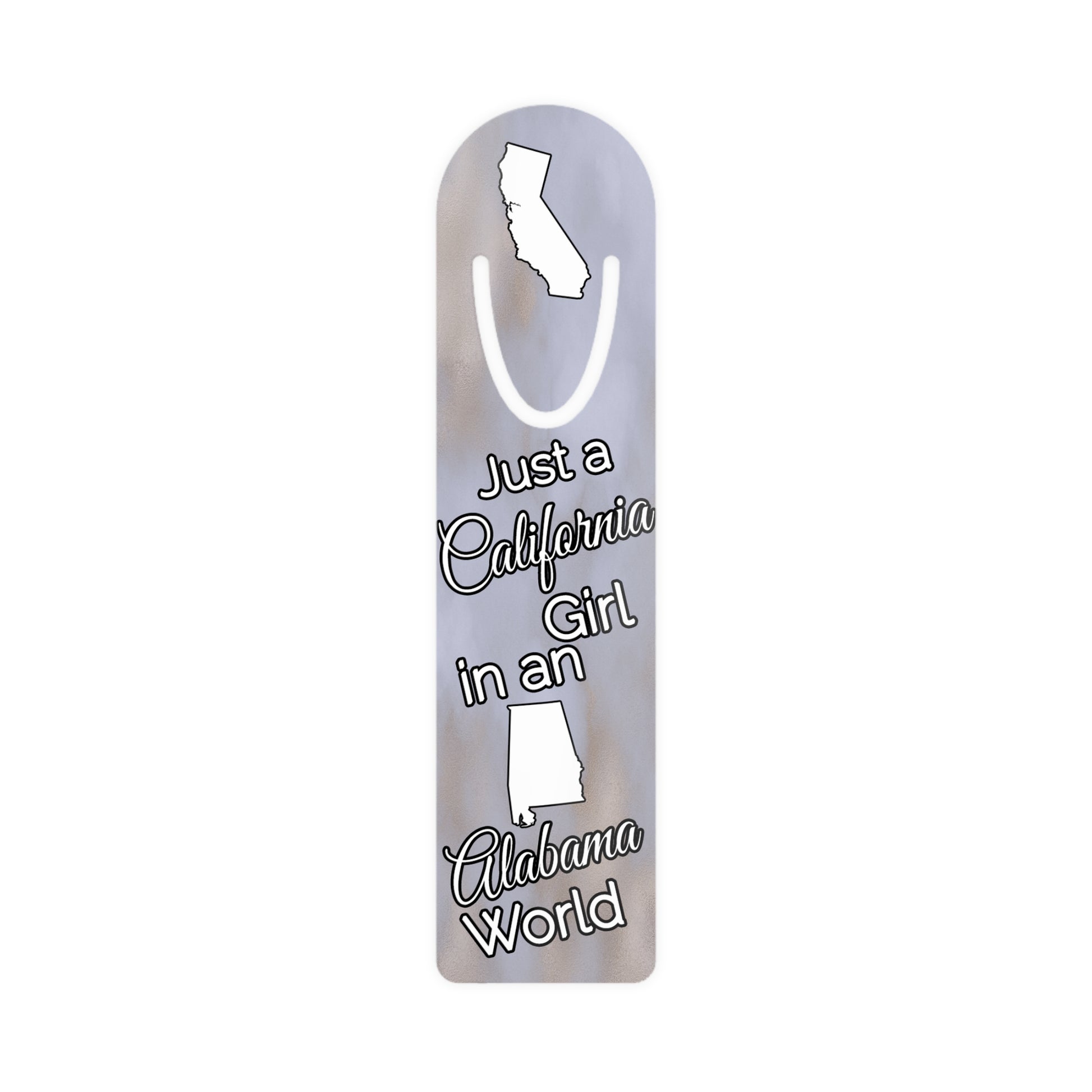 Show your pride in your home state with this bookmark showing Just a California Girl in an Alabama World. Made with robust aluminum, features top slot that holds single pages in place.