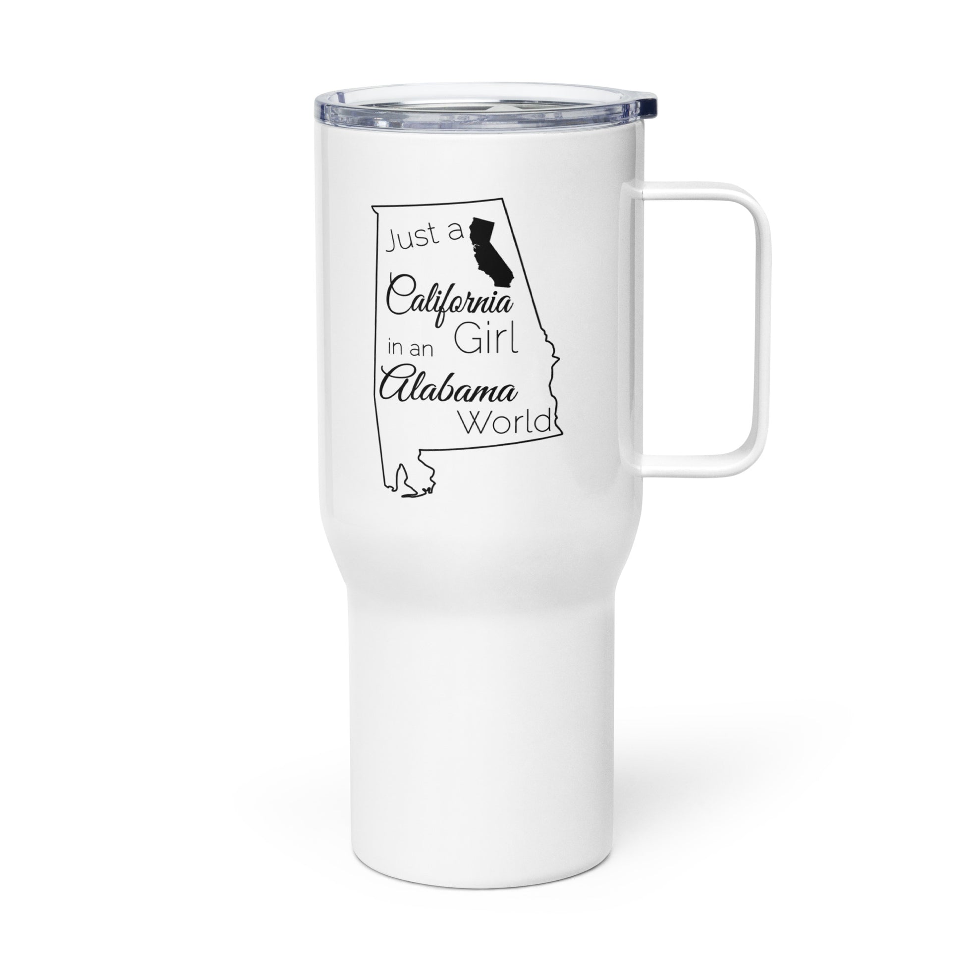 Just a California Girl in an Alabama World Travel mug with a handle