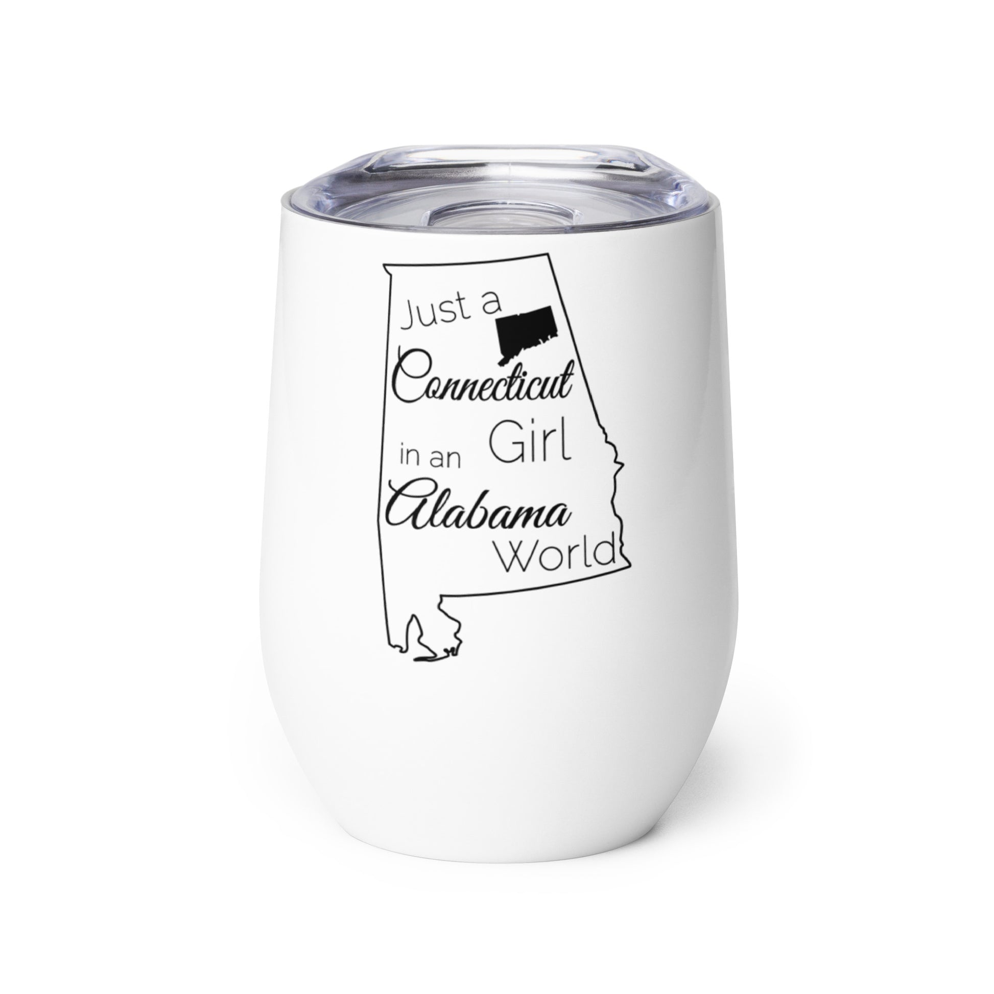 Show your pride in your home state with this wine tumbler showing Just a Connecticut Girl in an Alabama World. What’s an outdoor party without a wine tumbler to keep a drink fresh and at just the right temperature? Forget breakable glasses—give this uniquely shaped wine tumbler a chance and have fun with friends without worry.
