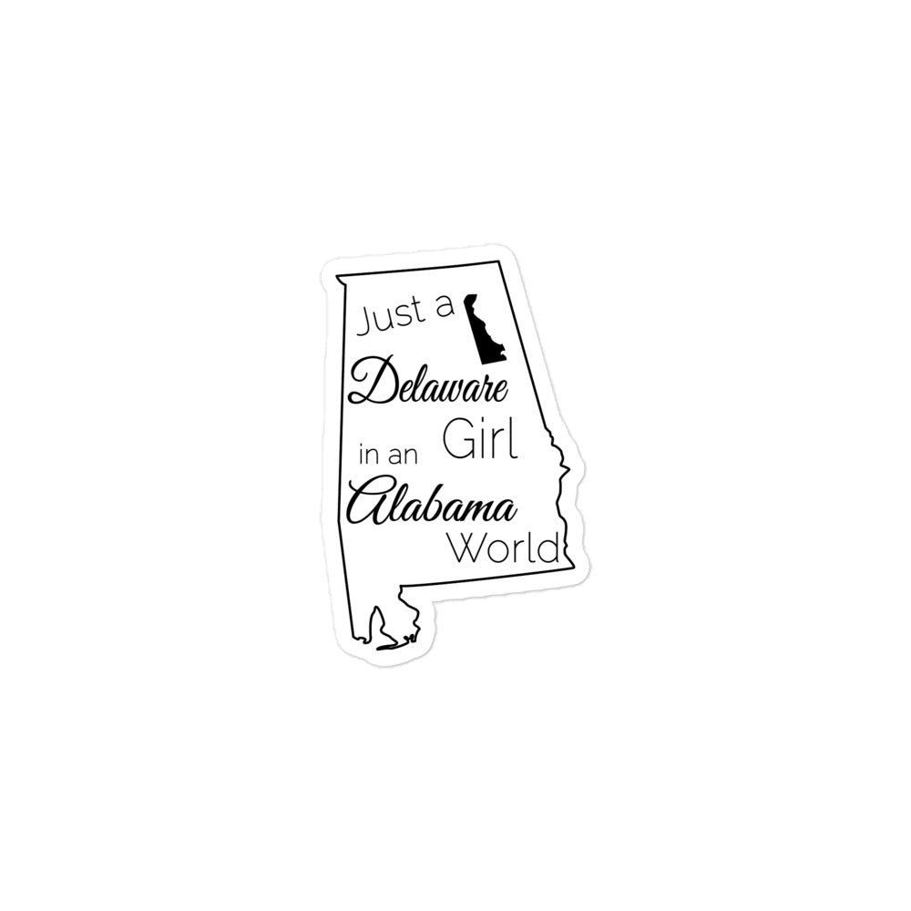 Just a Delaware Girl in an Alabama World Bubble-free stickers