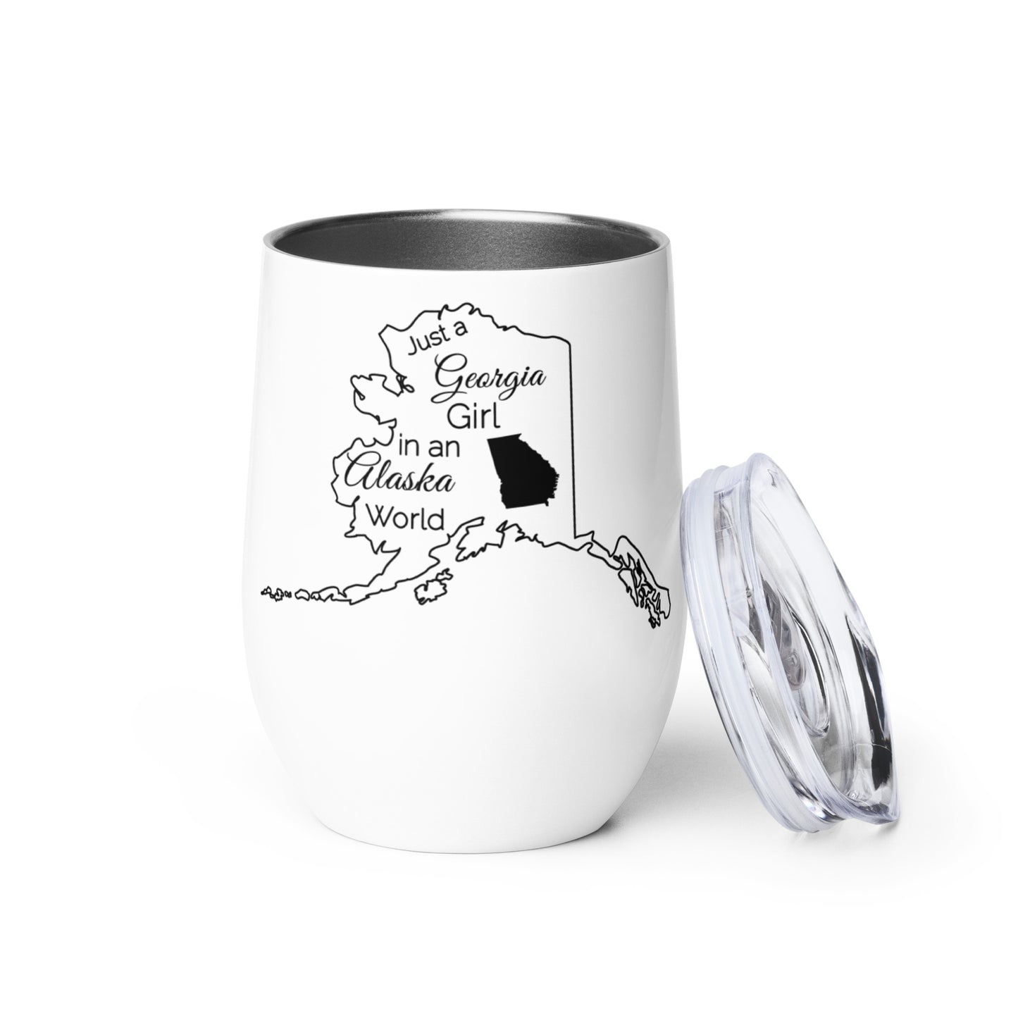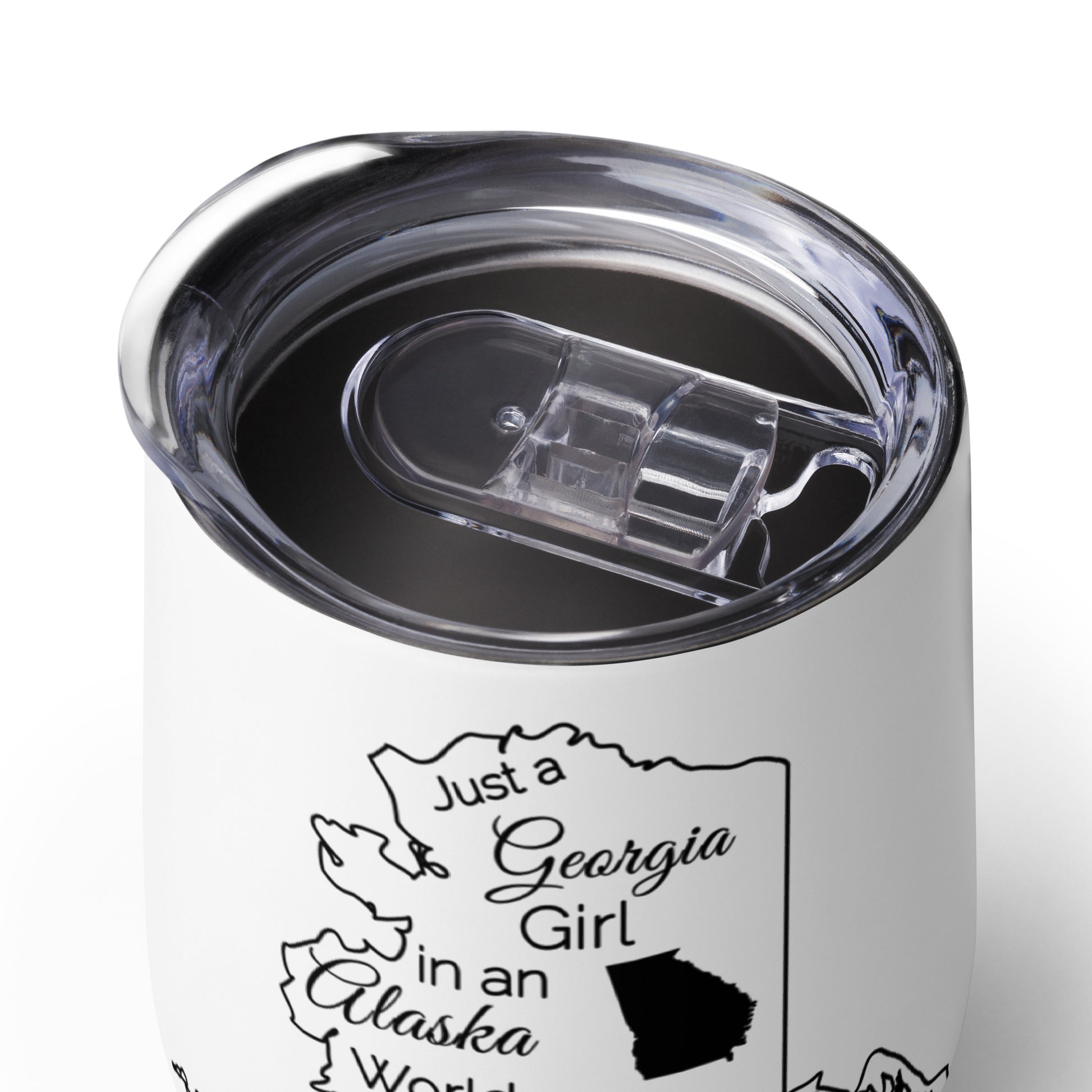Show your pride in your home state with this wine tumbler showing Just a Georgia Girl in an Alaska World. What’s an outdoor party without a wine tumbler to keep a drink fresh and at just the right temperature? Forget breakable glasses—give this uniquely shaped wine tumbler a chance and have fun with friends without worry.