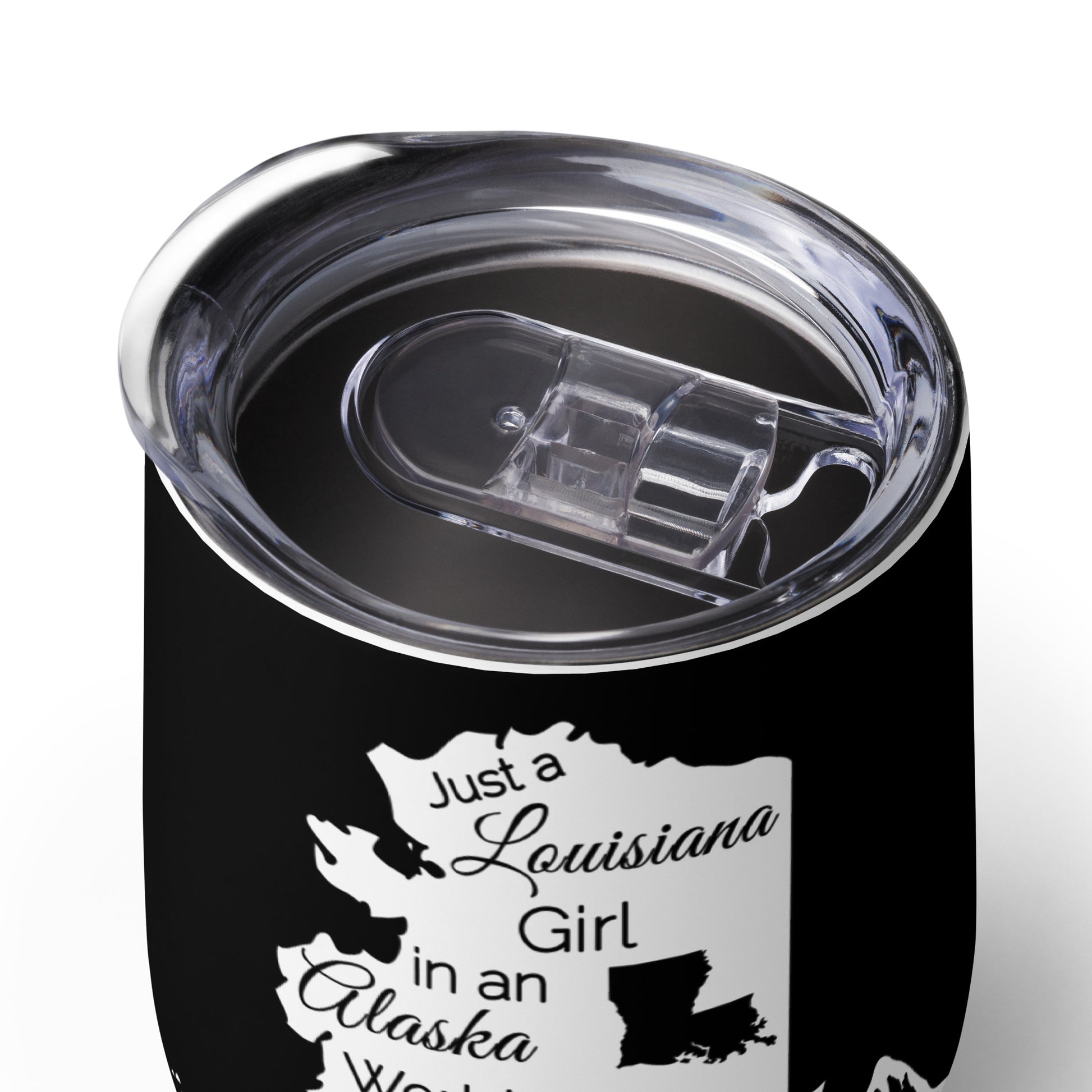 Show your pride in your home state with this wine tumbler showing Just a Louisiana Girl in an Alaska World. What’s an outdoor party without a wine tumbler to keep a drink fresh and at just the right temperature? Forget breakable glasses—give this uniquely shaped wine tumbler a chance and have fun with friends without worry.