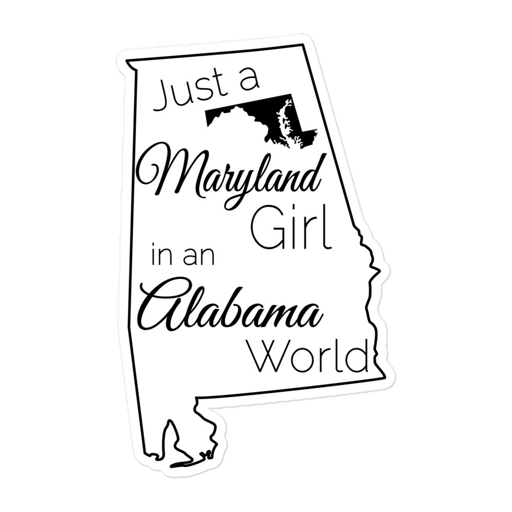 Just a Maryland Girl in an Alabama World Bubble-free stickers