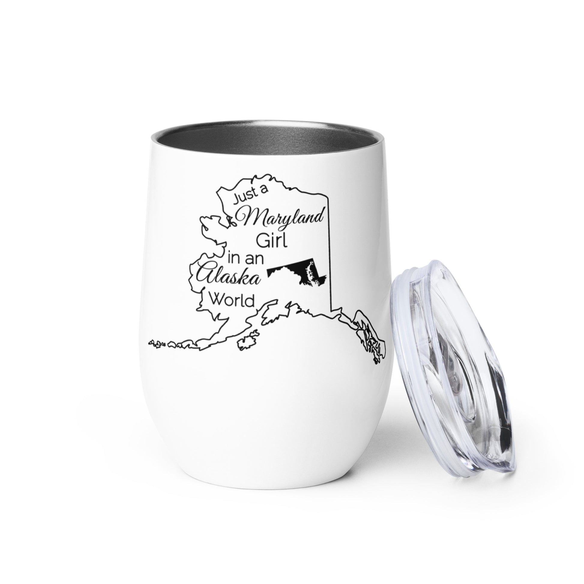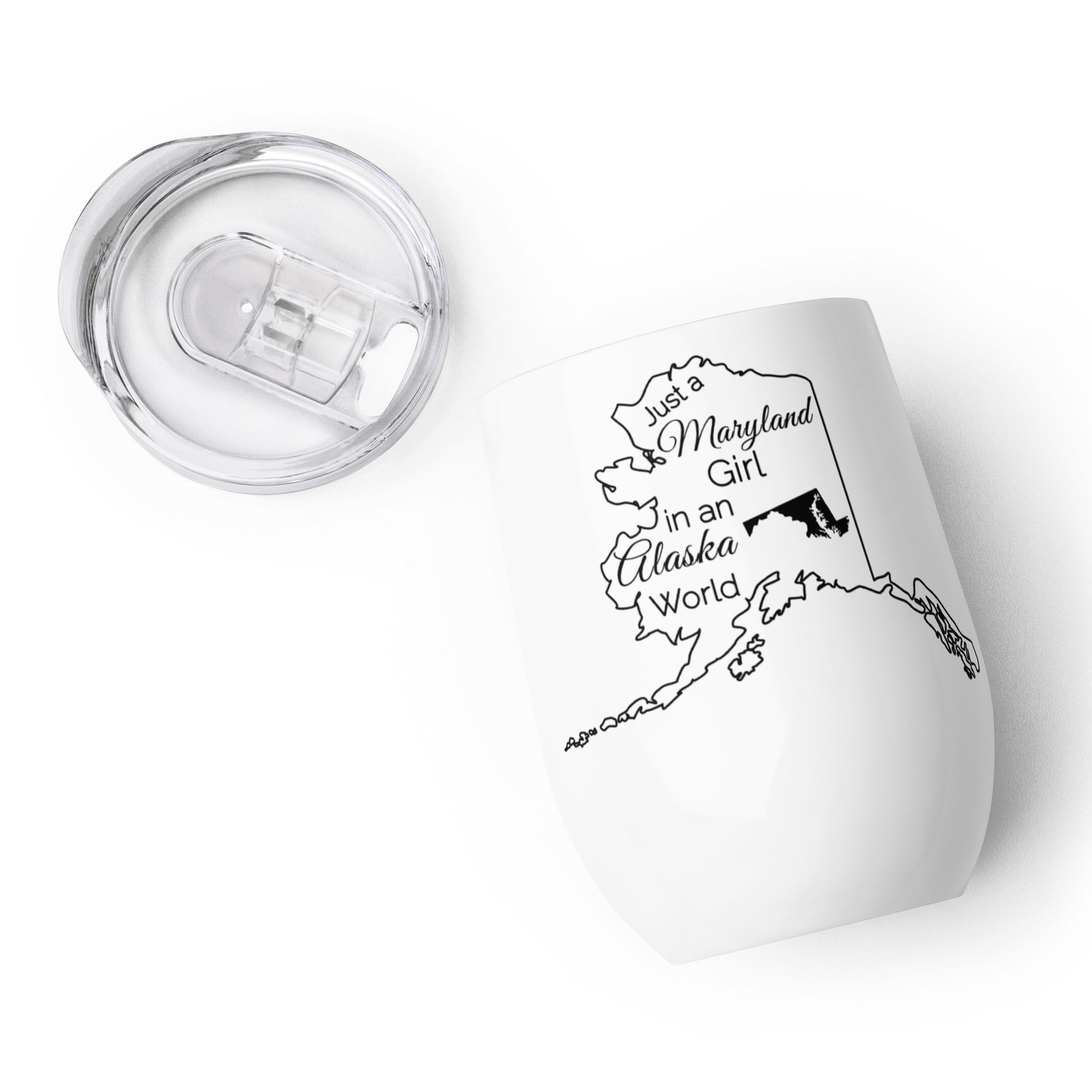 Just a Maryland Girl in an Alaska World Wine tumbler