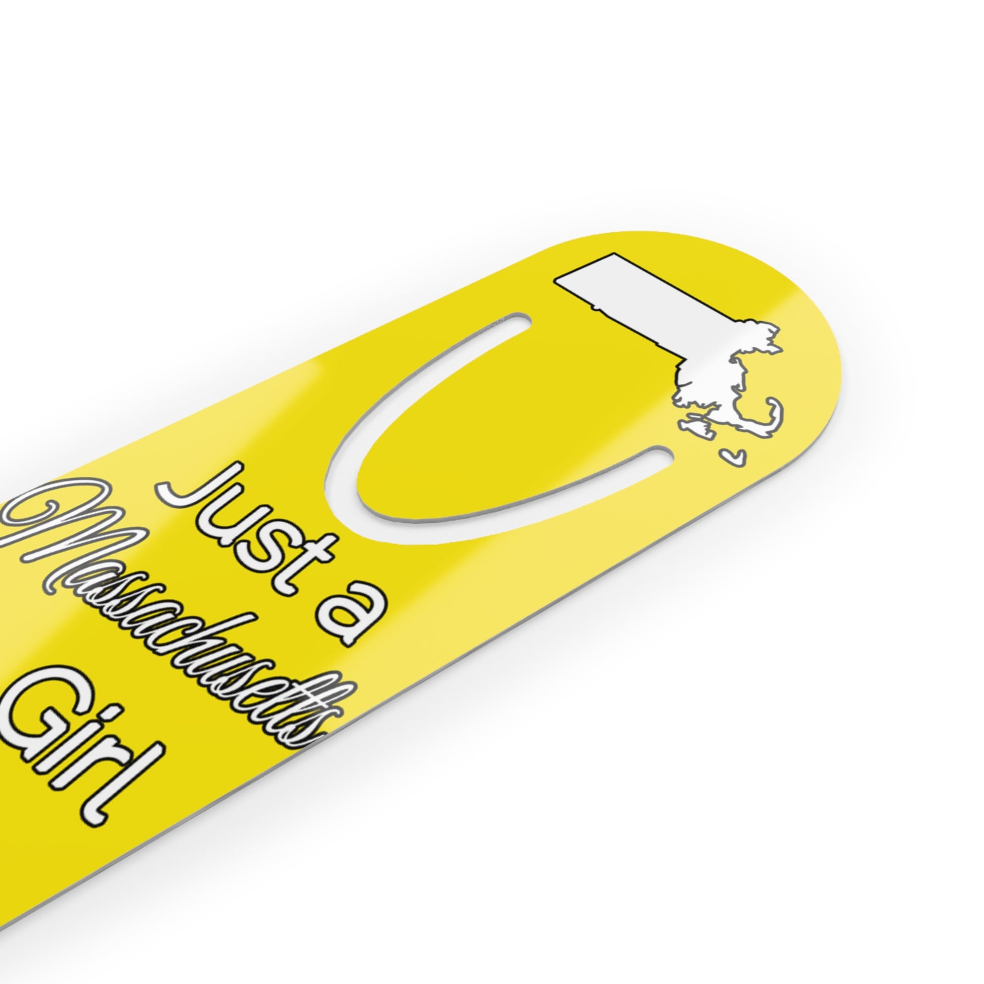 Show your pride in your home state with this bookmark showing Just a Massachusetts Girl in an Alabama World. Made with robust aluminum, features top slot that holds single pages in place.