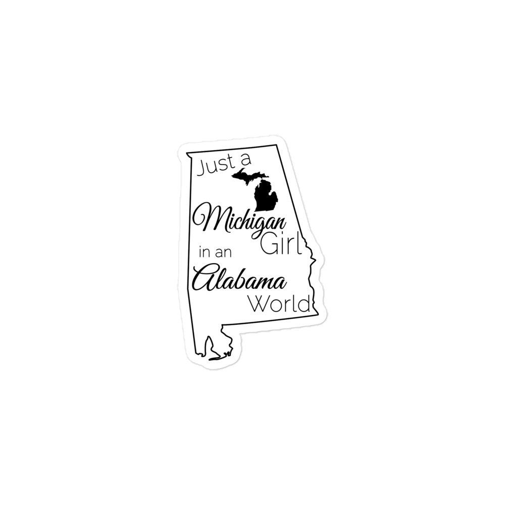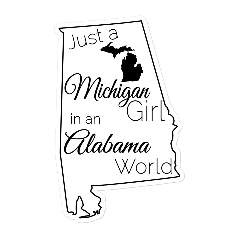 Just a Michigan Girl in an Alabama World Bubble-free stickers