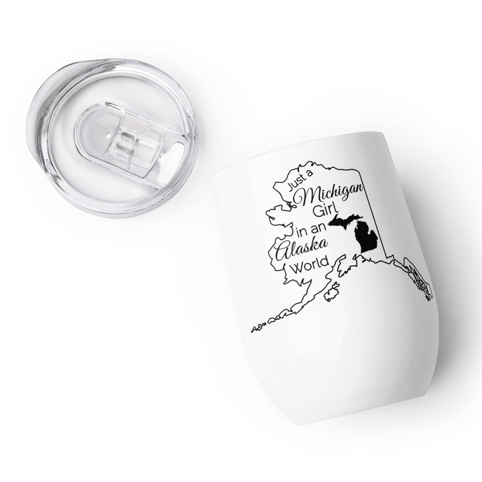 Just a Michigan Girl in an Alaska World Wine tumbler