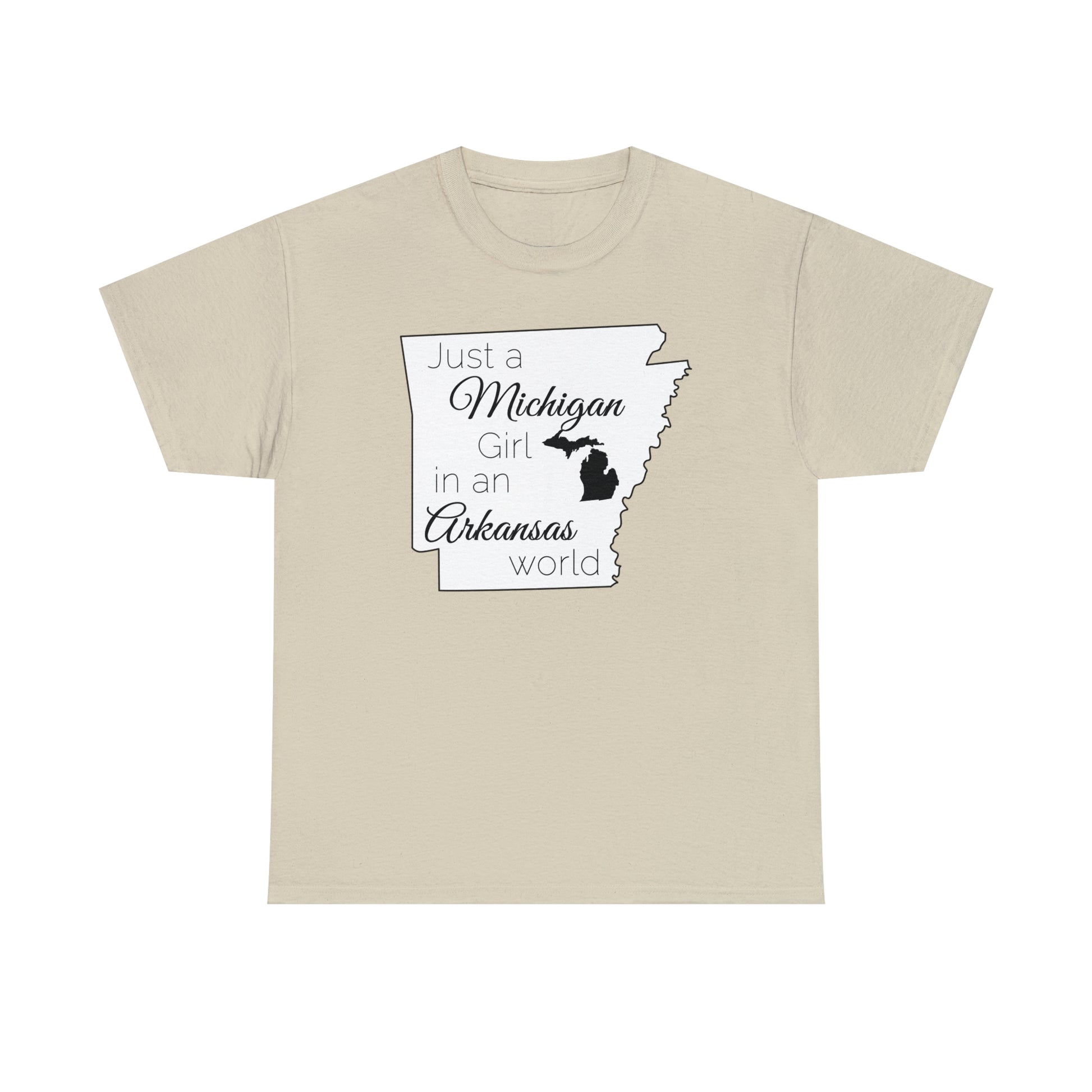 Just a Michigan Girl in an Arkansas World Unisex Heavy Cotton Tee
