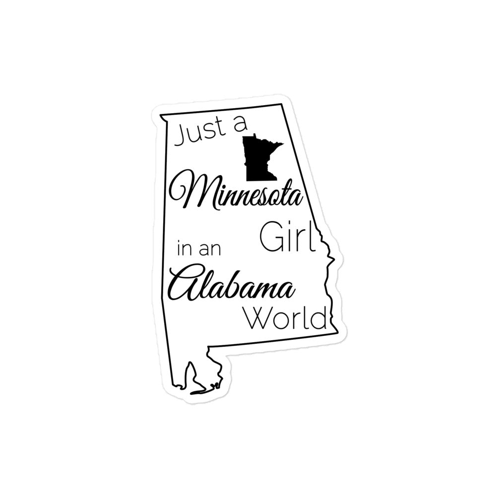 Just a Minnesota Girl in an Alabama World Bubble-free stickers