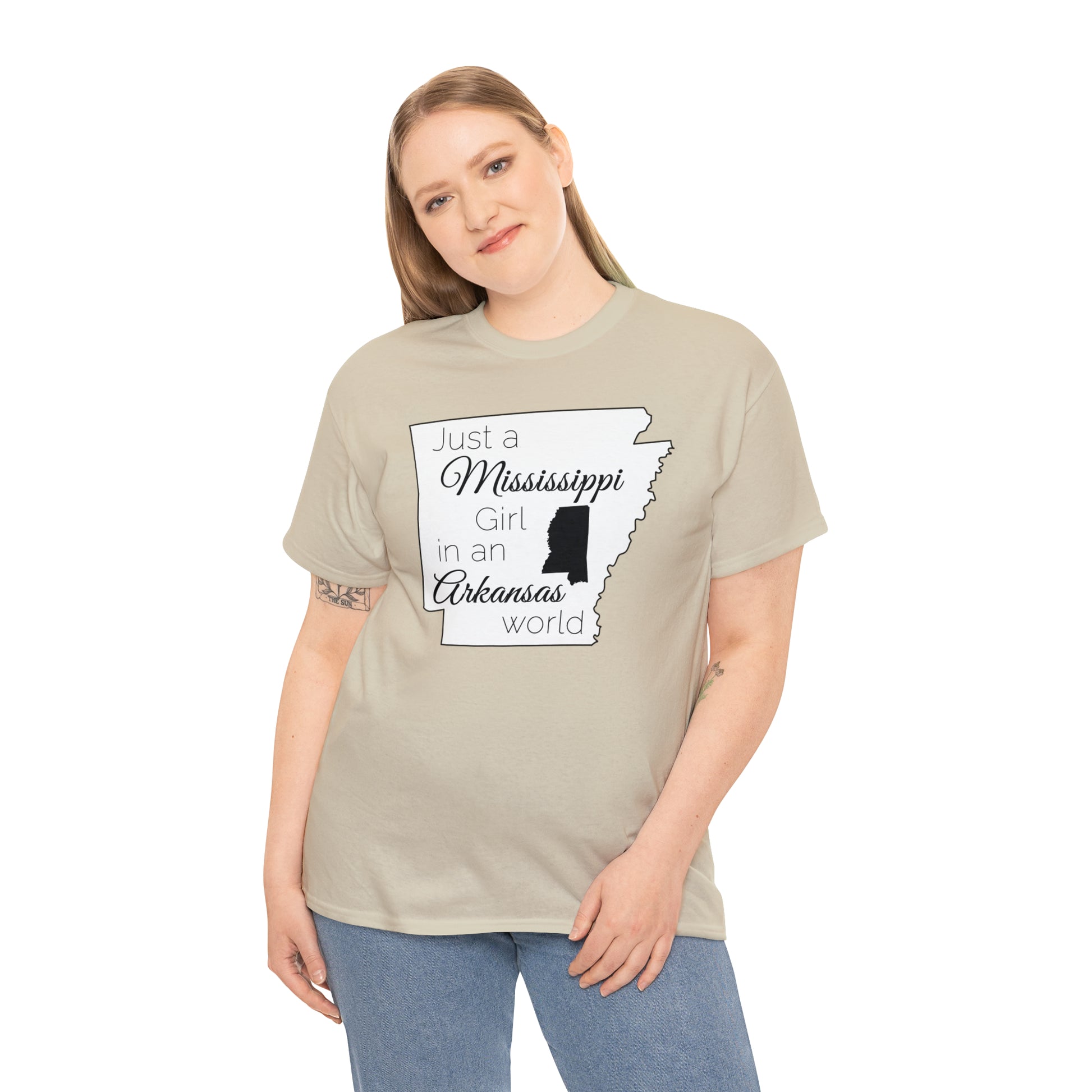 Just a Mississippi Girl in an Arkansas World Unisex Heavy Cotton Tee