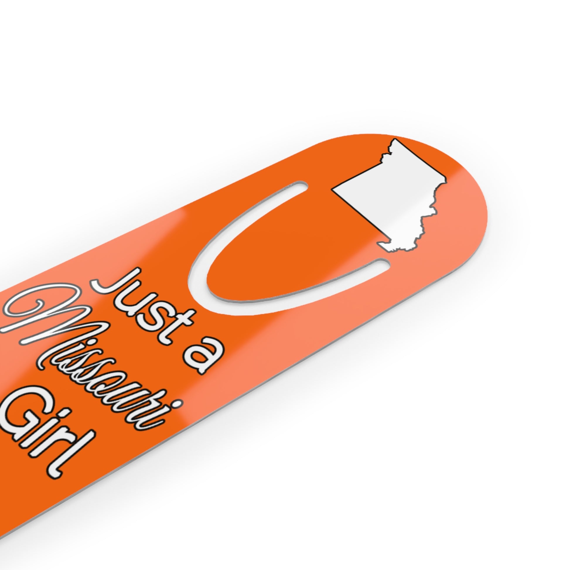Show your pride in your home state with this bookmark showing Just a Missouri Girl in an Alabama World. Made with robust aluminum, features top slot that holds single pages in place.