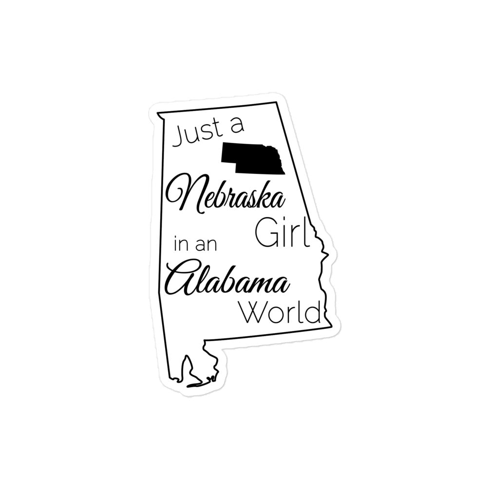 Just a Nebraska Girl in an Alabama World Bubble-free stickers