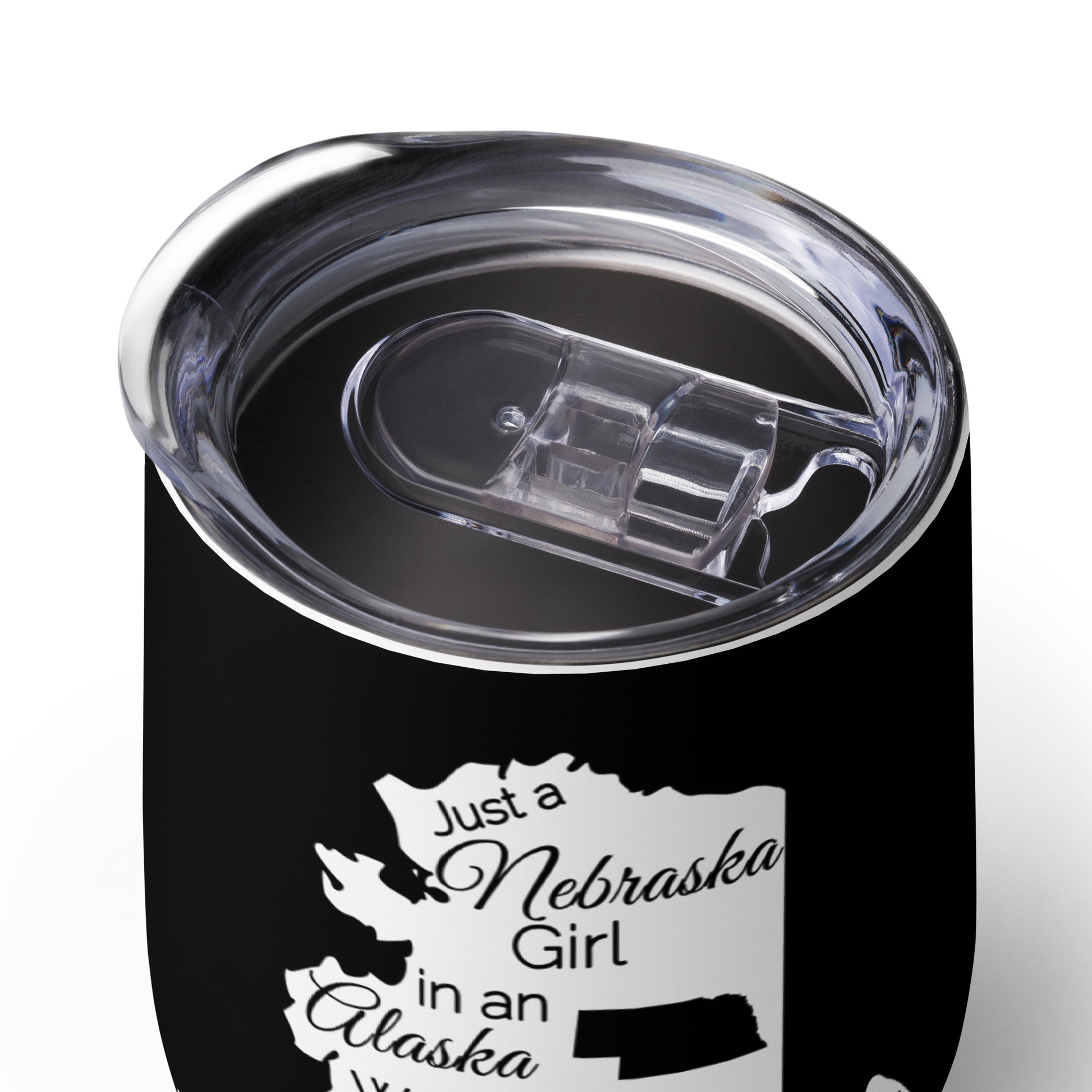 Show your pride in your home state with this wine tumbler showing Just a Nebraska Girl in an Alaska World. What’s an outdoor party without a wine tumbler to keep a drink fresh and at just the right temperature? Forget breakable glasses—give this uniquely shaped wine tumbler a chance and have fun with friends without worry.