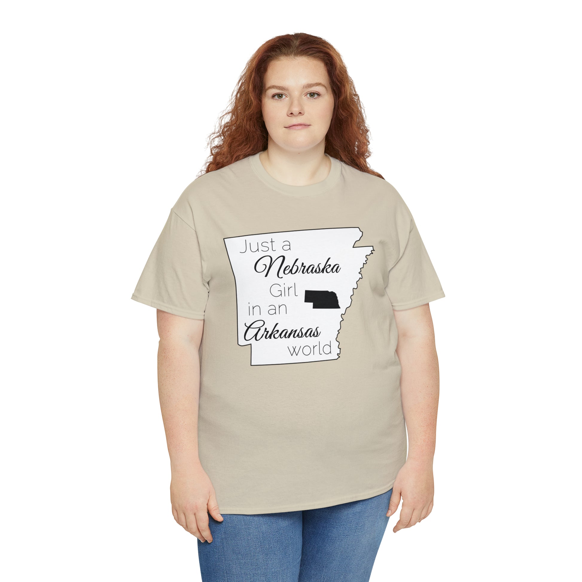 Just a Nebraska Girl in an Arkansas World Unisex Heavy Cotton Tee