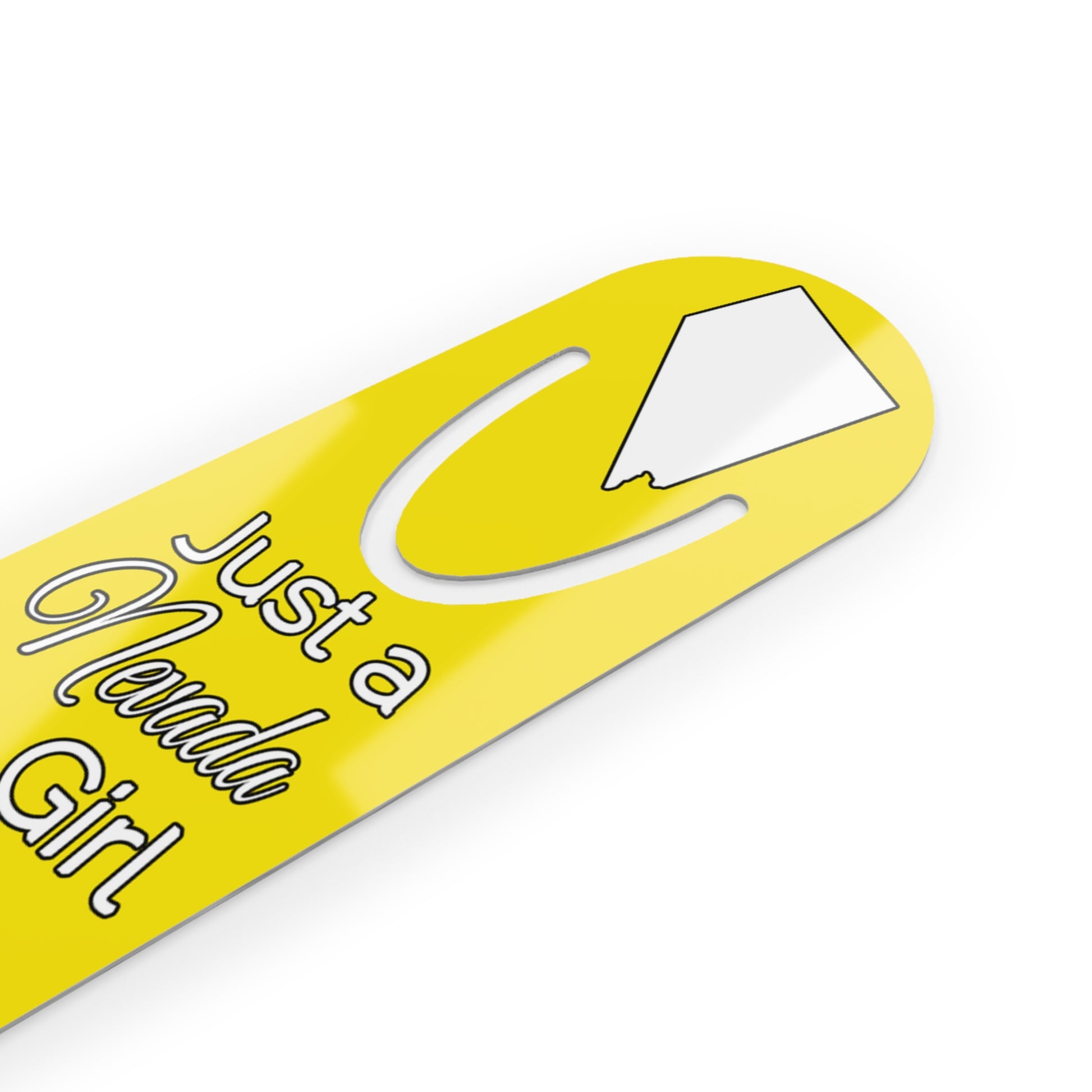 Show your pride in your home state with this bookmark showing Just a Nevada Girl in an Alabama World. Made with robust aluminum, features top slot that holds single pages in place.