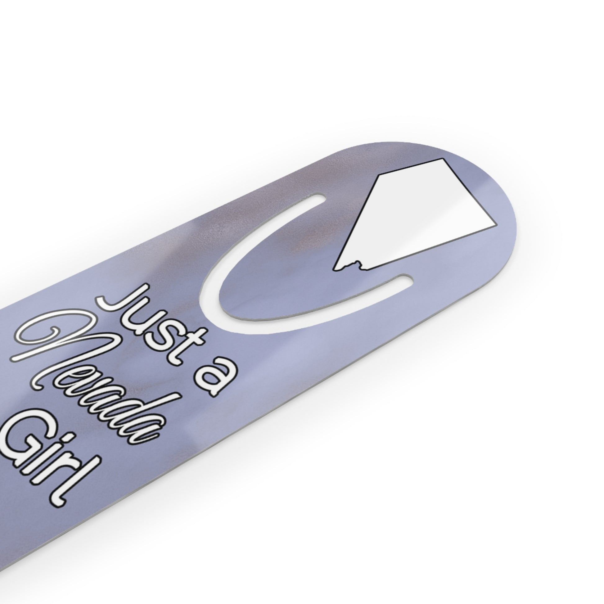 Show your pride in your home state with this bookmark showing Just a Nevada Girl in an Alabama World.  Made with robust aluminum, features top slot that holds single pages in place.