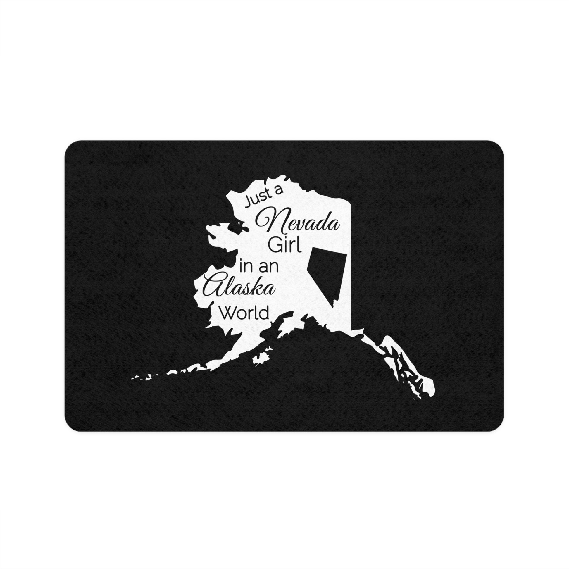Show your pride in your home state with this pet food mat showing Just a Nevada Girl in an Alaska World. Created for minimizing mess, this pet food mat is as practical as it is stylish. Made with a non-slip rubber base, this pet feeding mat stays put even when the clumsiest puppers are having their meal. Each mat comes in a rectangle shape, is thick, and is perfect for both dogs and cats.