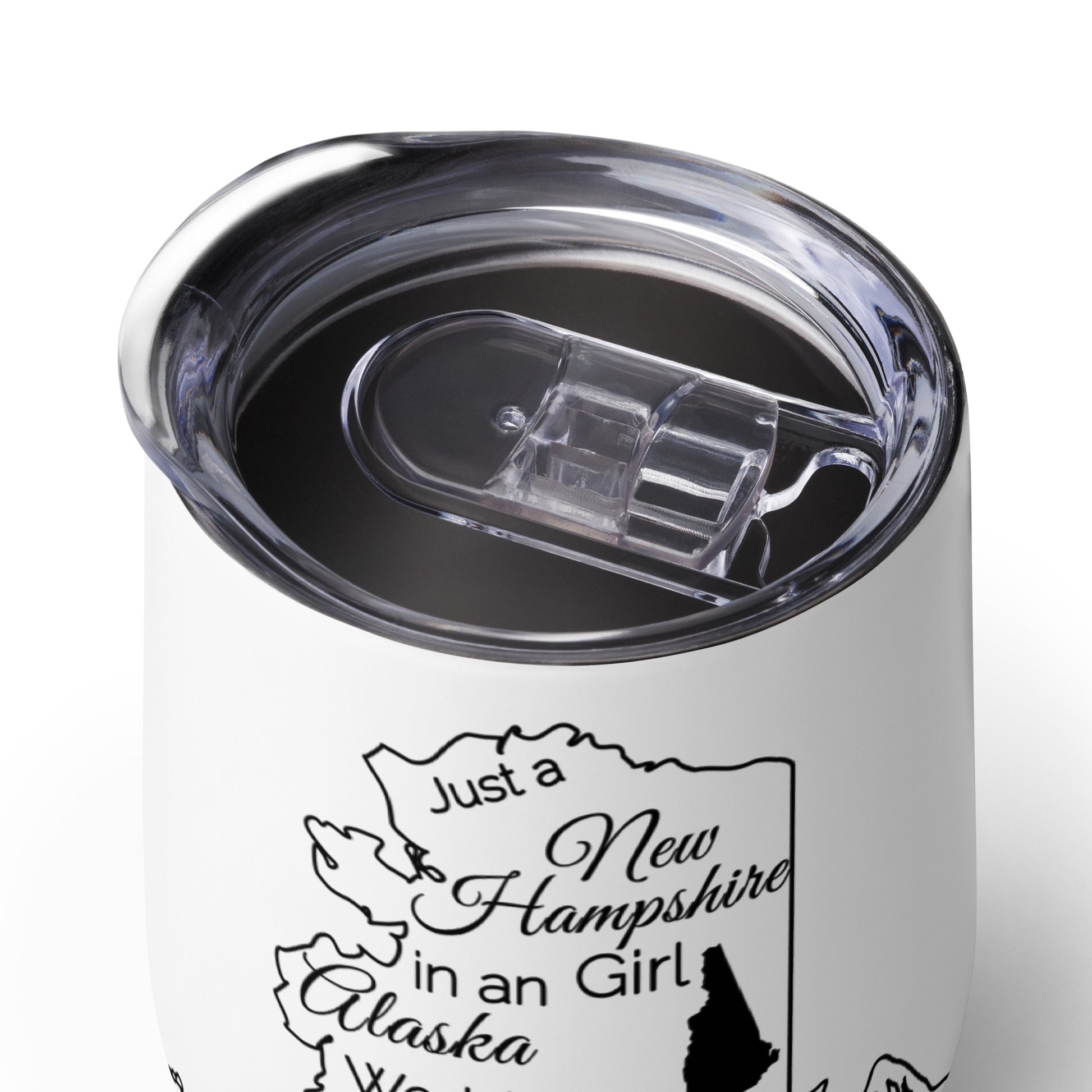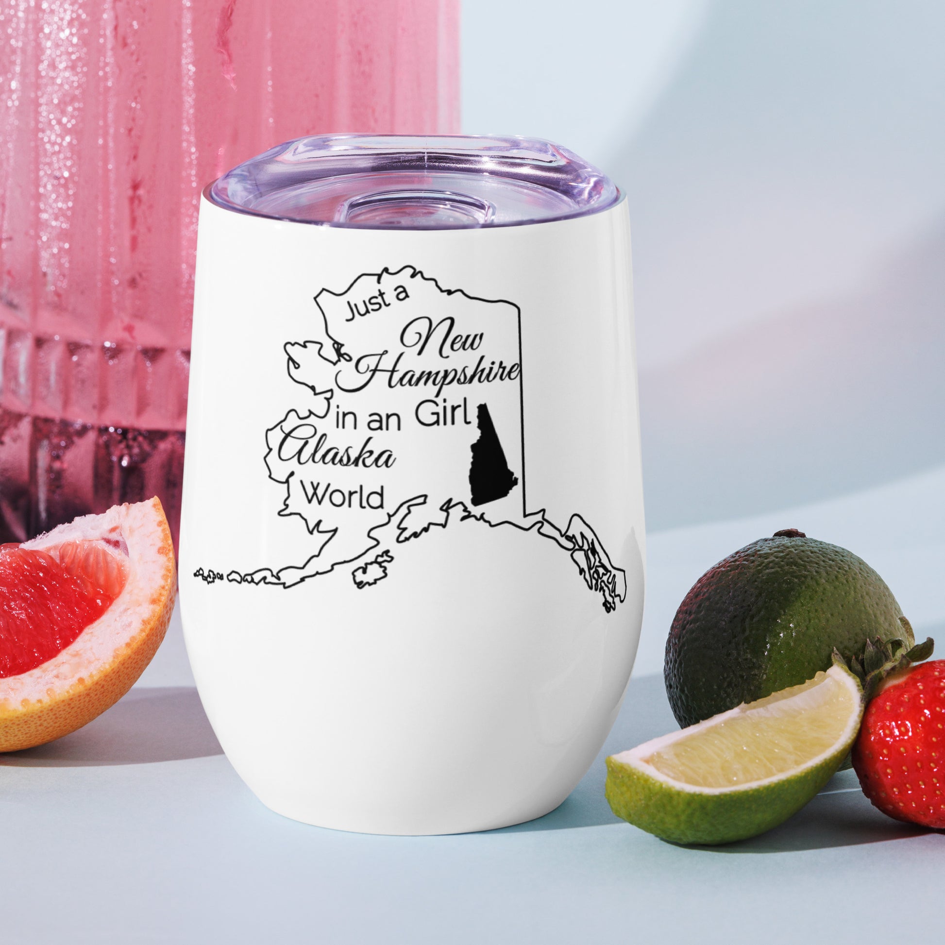 Show your pride in your home state with this wine tumbler showing Just a New Hampshire Girl in an Alaska World. What’s an outdoor party without a wine tumbler to keep a drink fresh and at just the right temperature? Forget breakable glasses—give this uniquely shaped wine tumbler a chance and have fun with friends without worry.