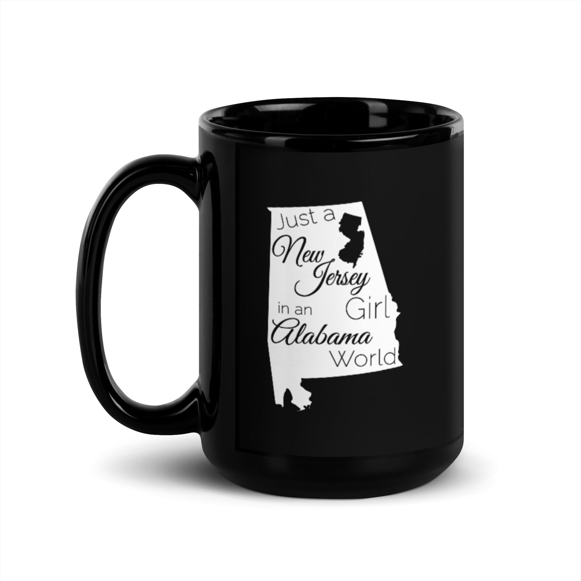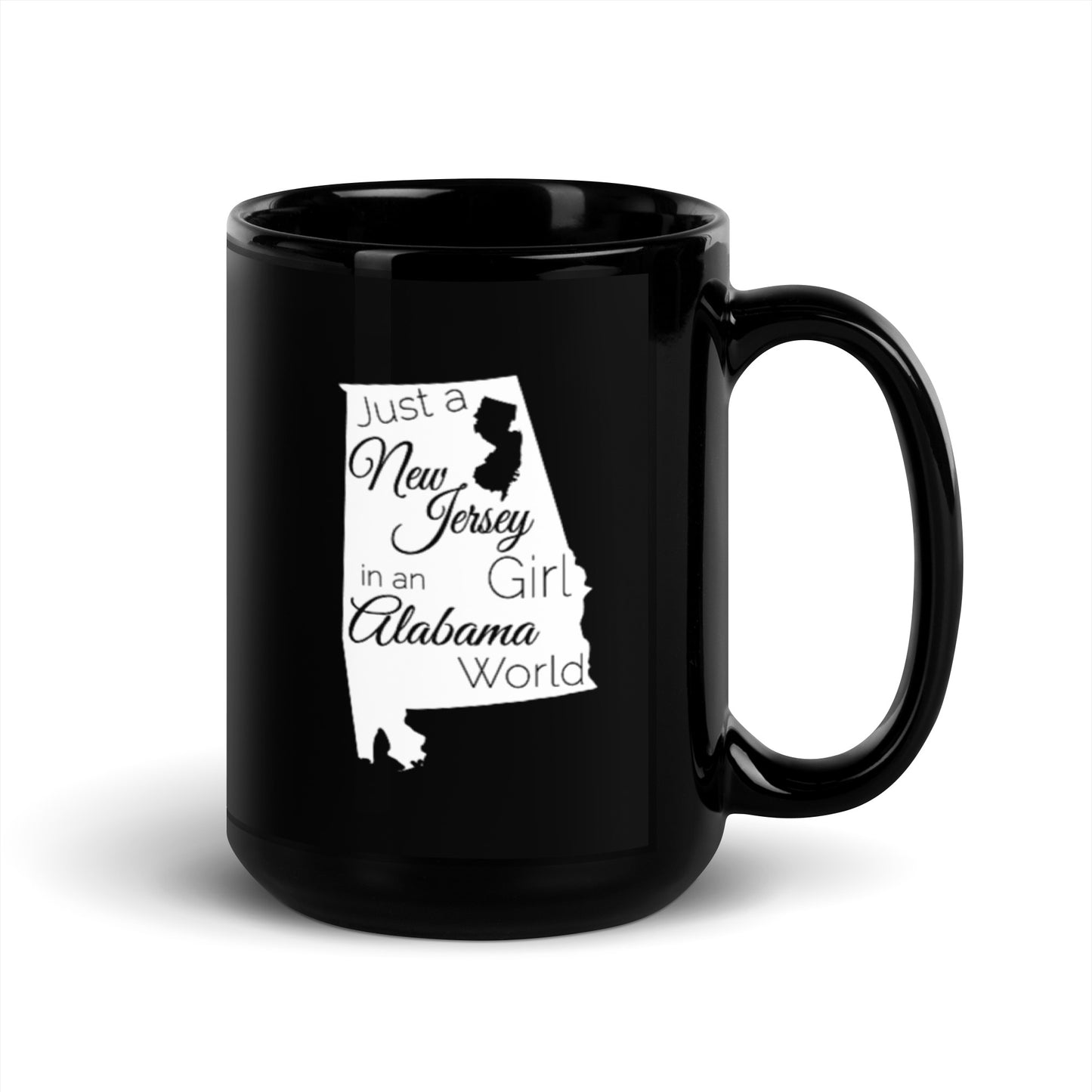 Just a New Jersey Girl in an Alabama World Black Glossy Mug