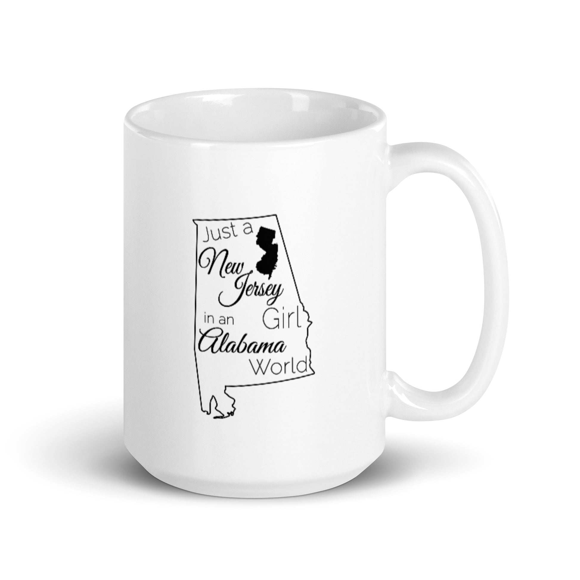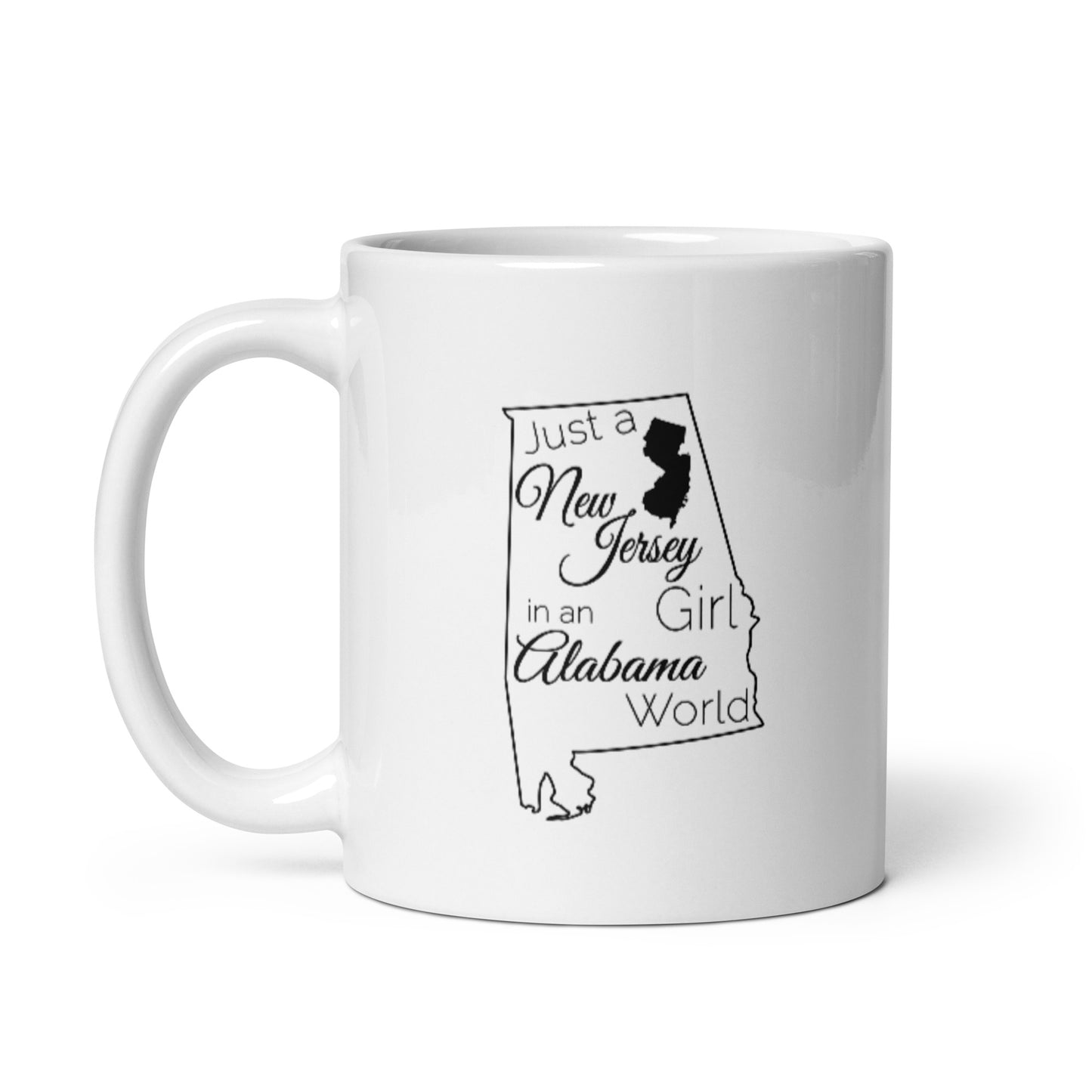 Just a New Jersey Girl in an Alabama World White glossy mug