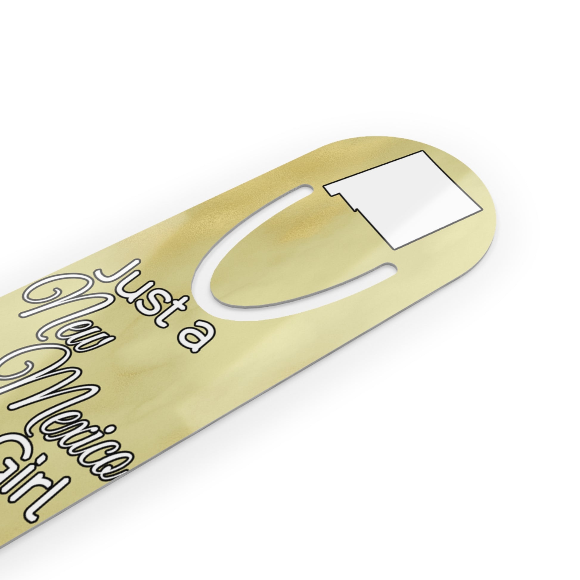 Show your pride in your home state with this bookmark showing Just a New Mexico Girl in an Alabama World. Made with robust aluminum, features top slot that holds single pages in place.