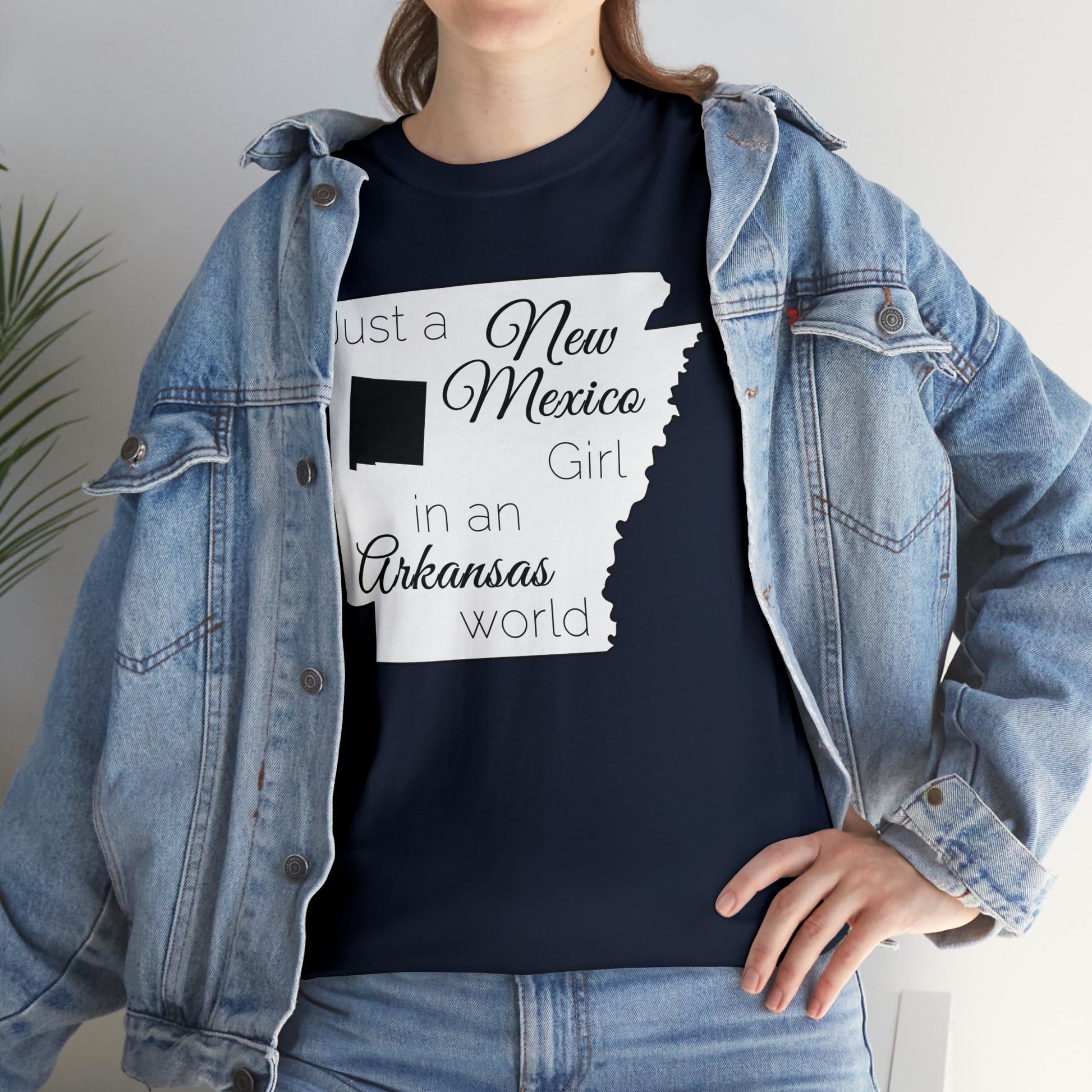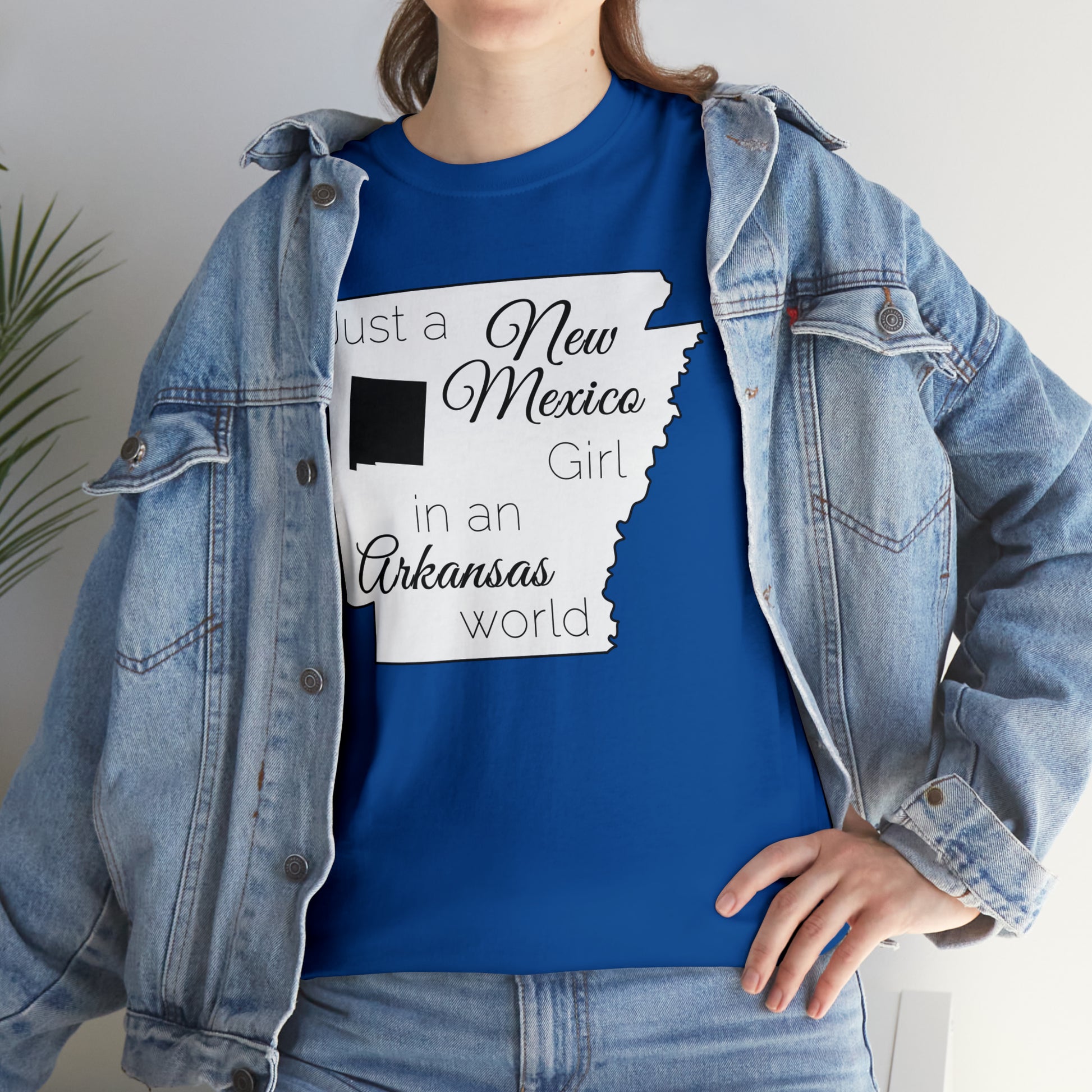 Just a New Mexico Girl in an Arkansas World Unisex Heavy Cotton Tee