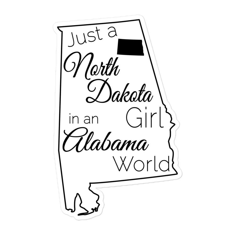Just a North Dakota Girl in an Alabama World Bubble-free stickers