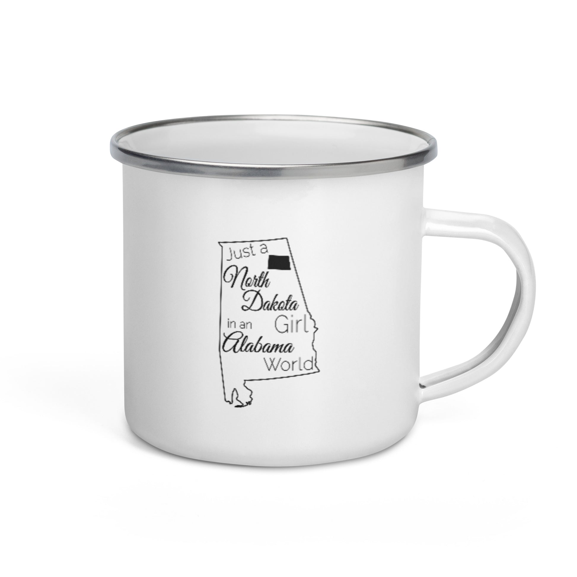 Just a North Dakota Girl in an Alabama World Enamel Mug
