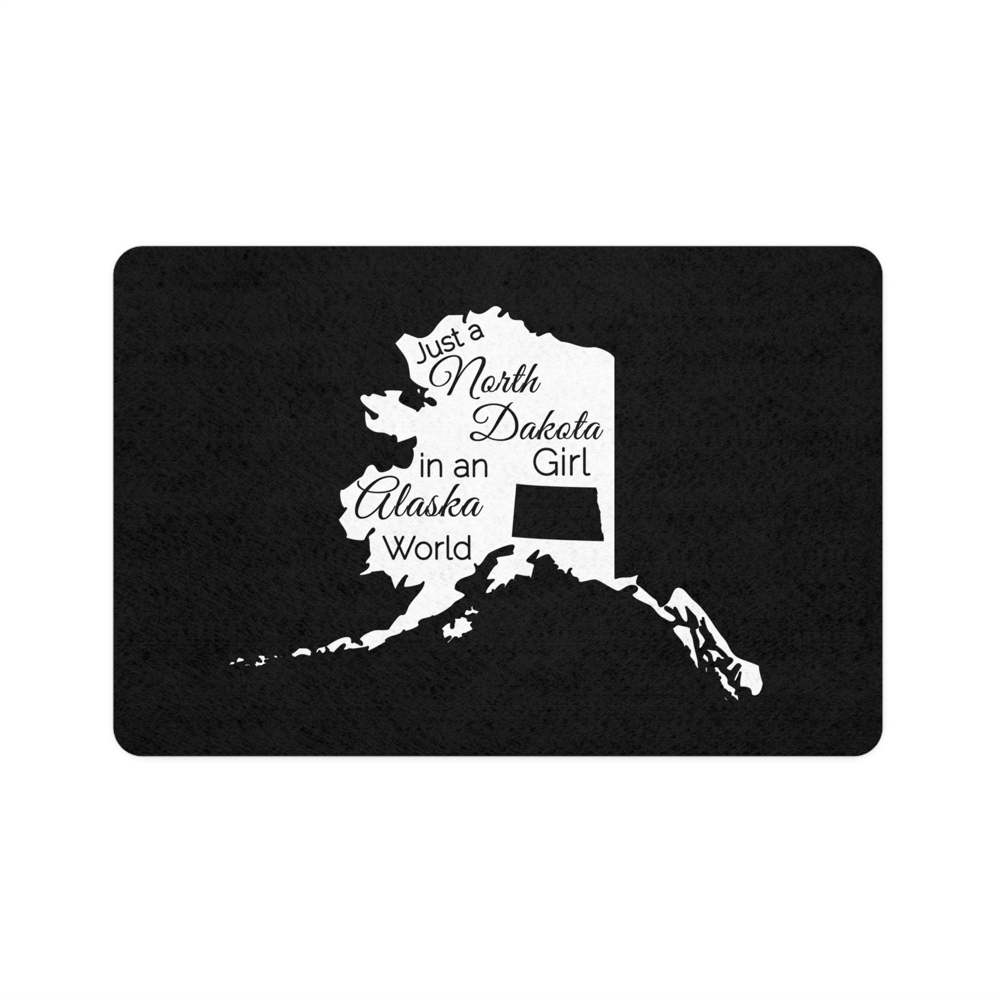 Show your pride in your home state with this pet food mat showing Just a North Dakota Girl in an Alaska World. Created for minimizing mess, this pet food mat is as practical as it is stylish. Made with a non-slip rubber base, this pet feeding mat stays put even when the clumsiest puppers are having their meal. Each mat comes in a rectangle shape, is thick, and is perfect for both dogs and cats.