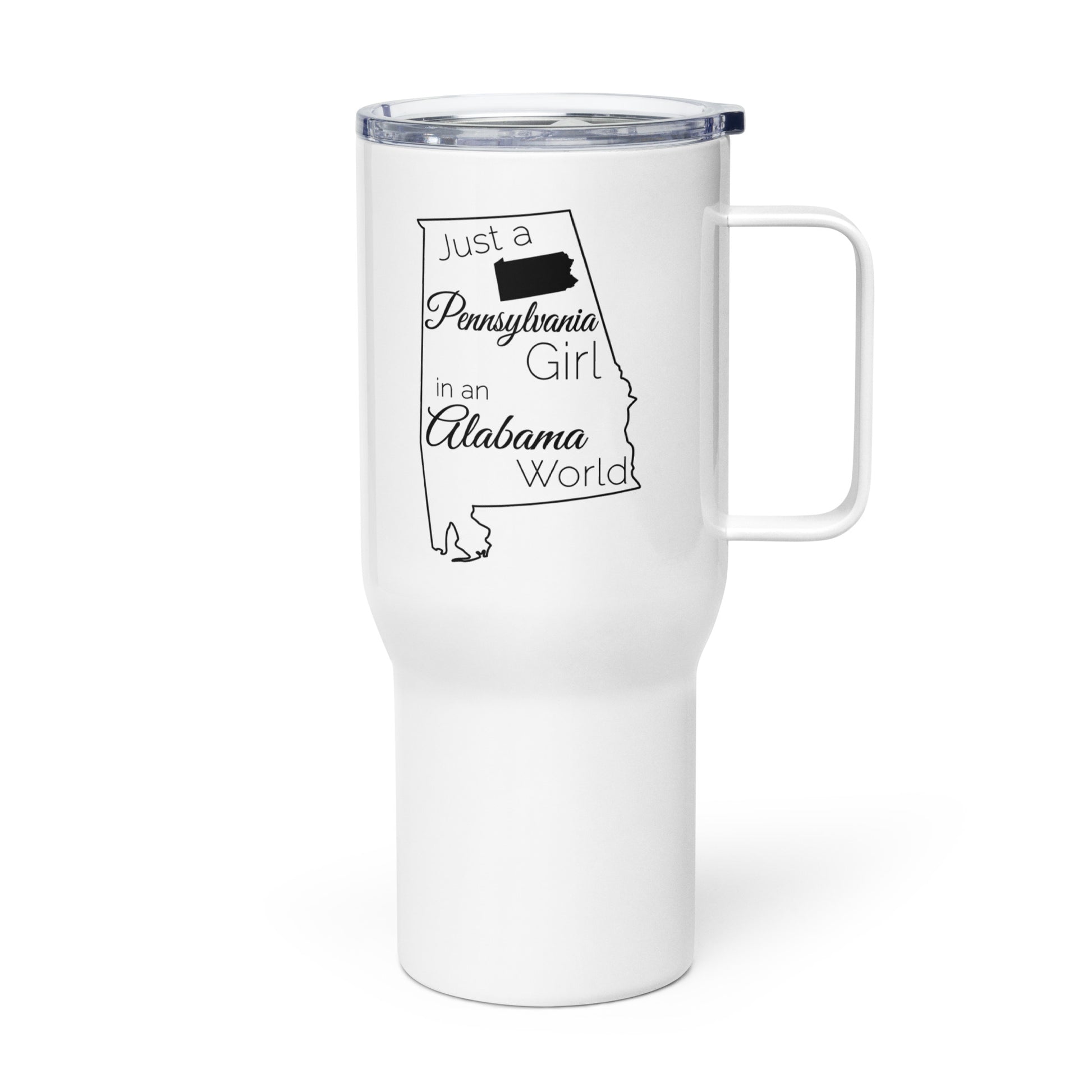 Just a Pennsylvania Girl in an Alabama World Travel mug with a handle