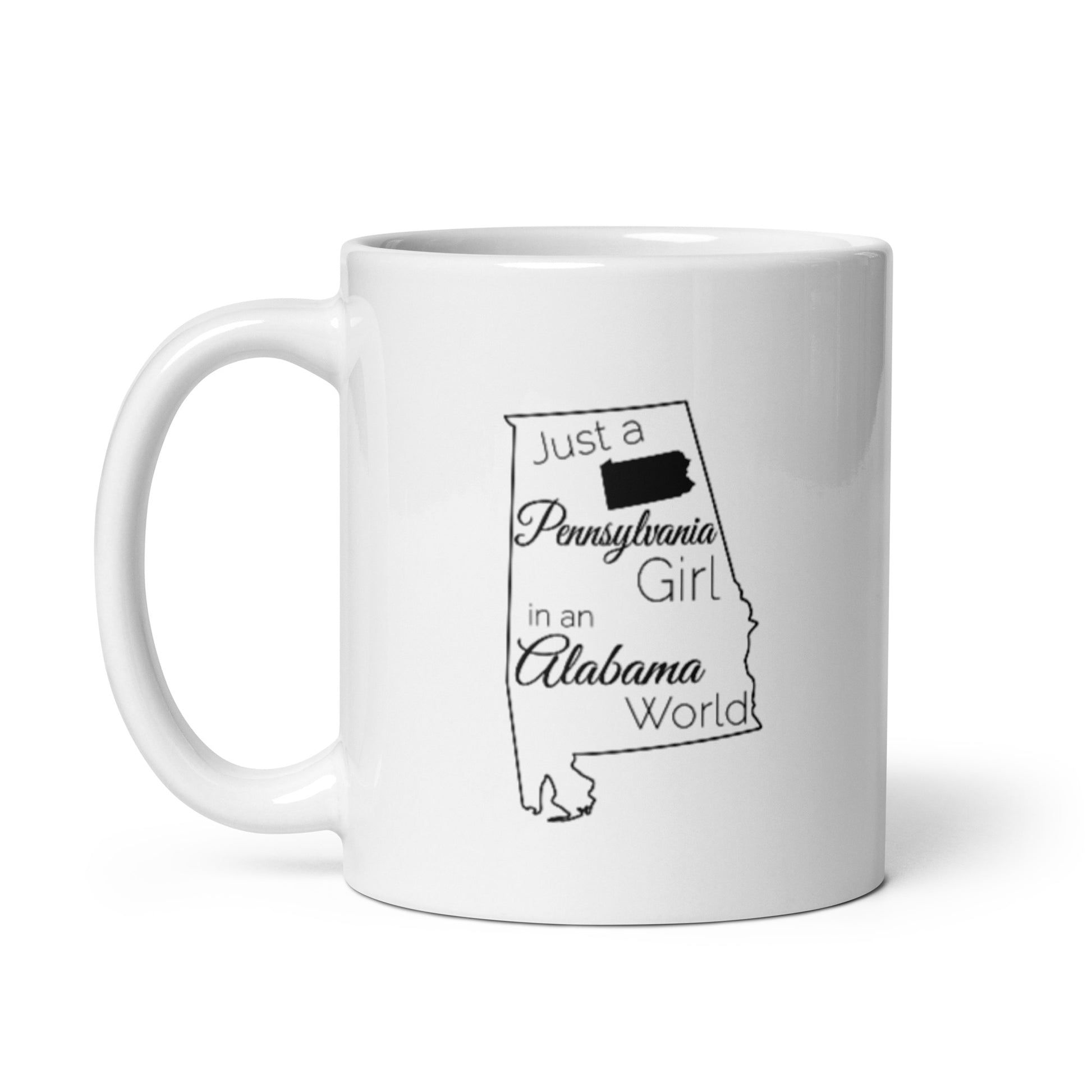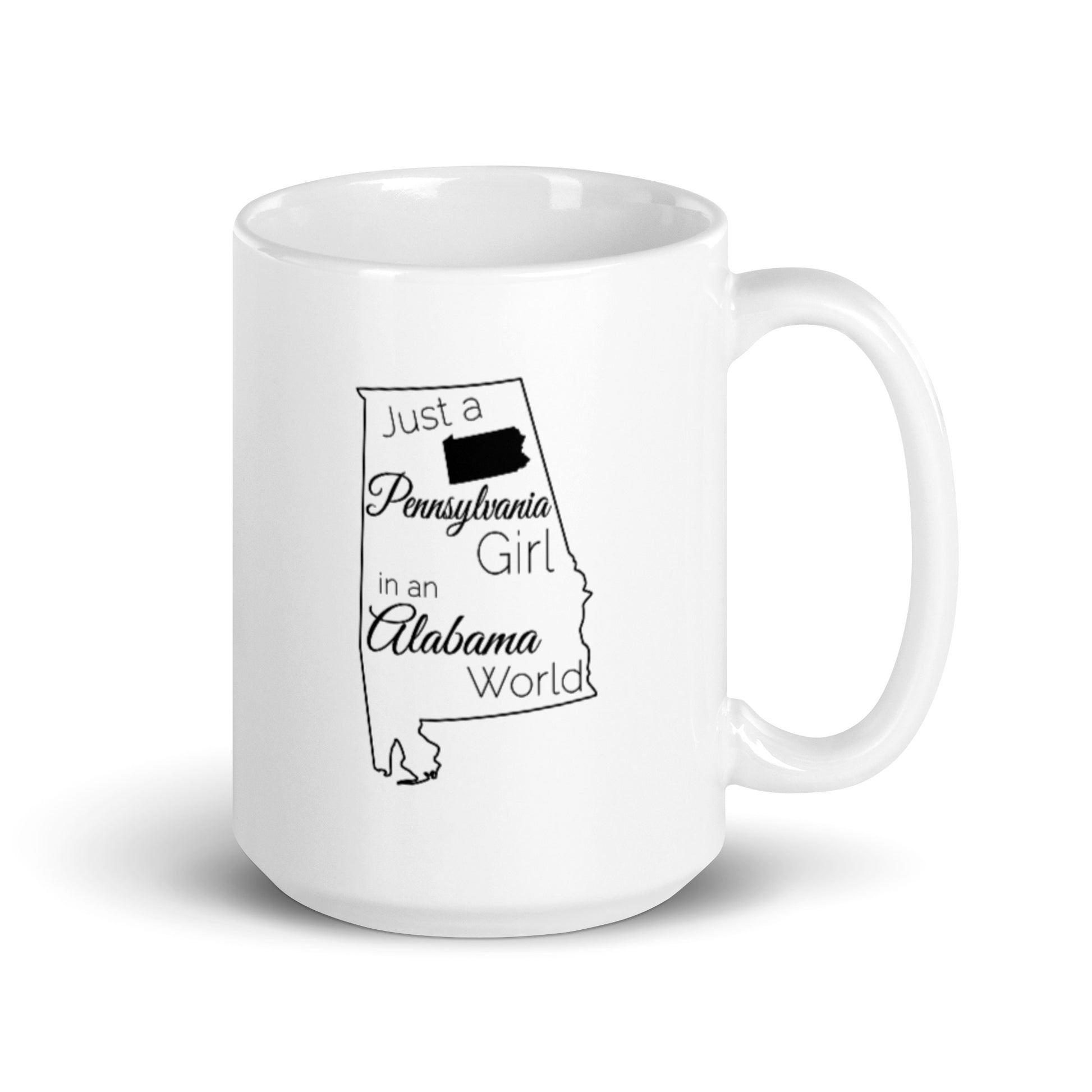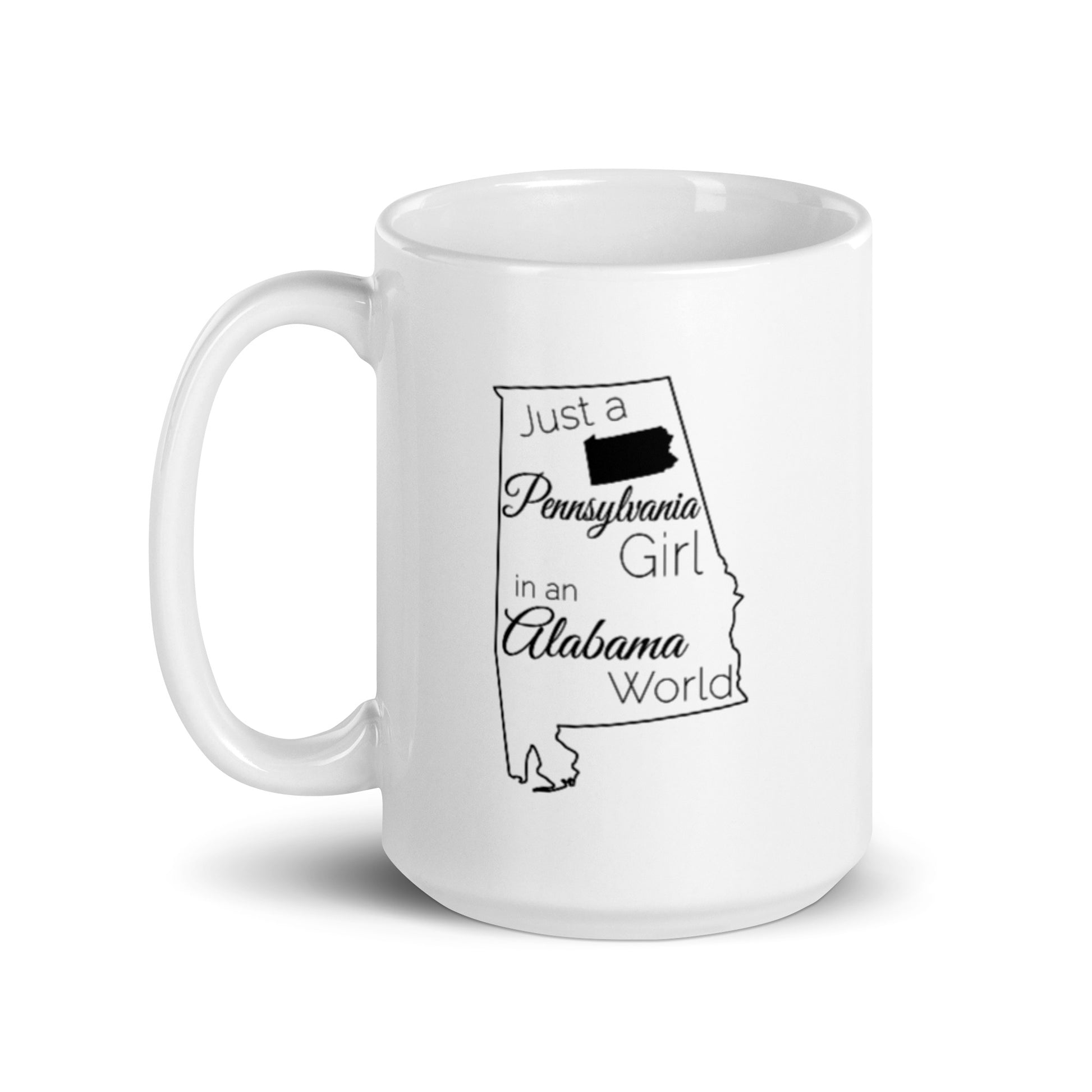 Just a Pennsylvania Girl in an Alabama World White glossy mug