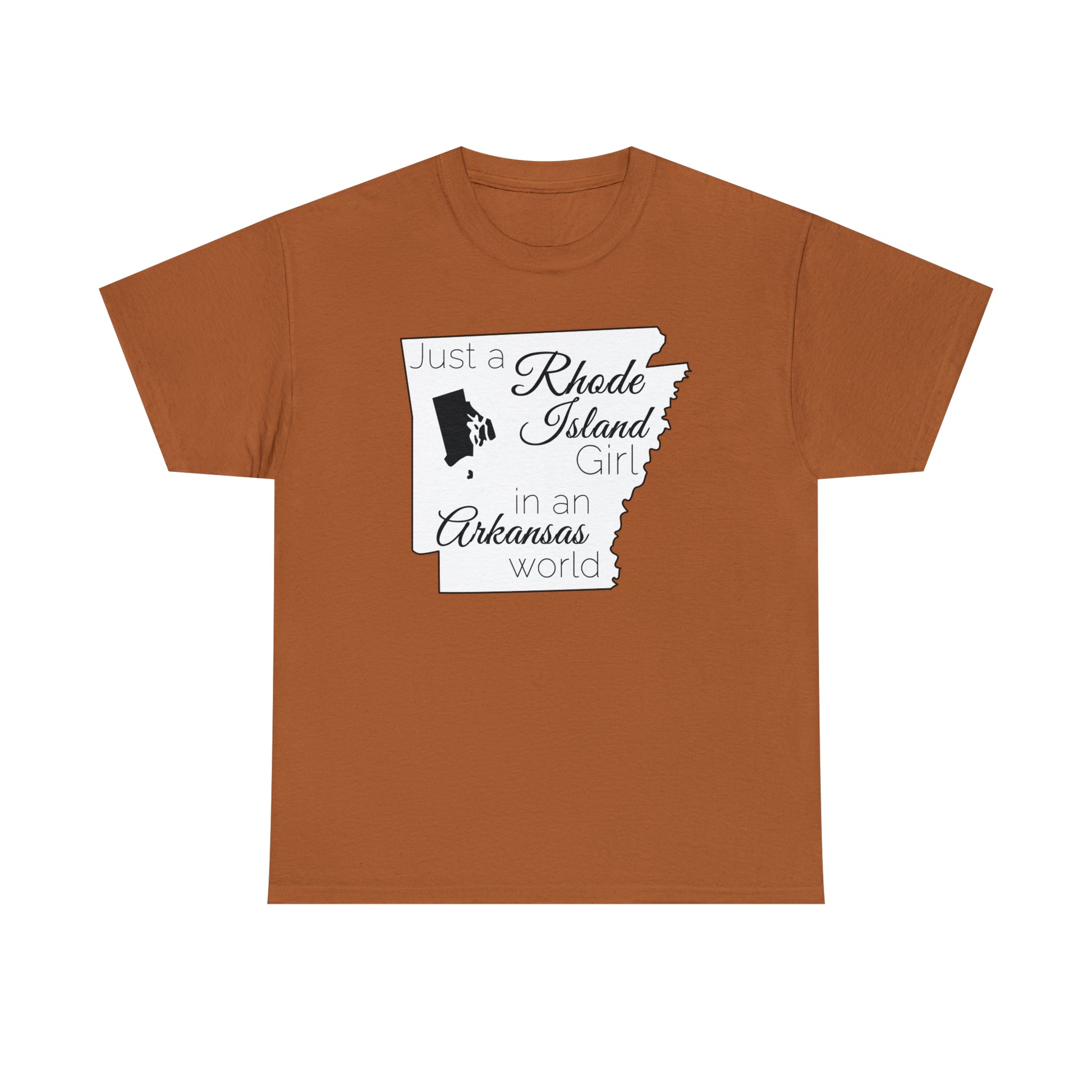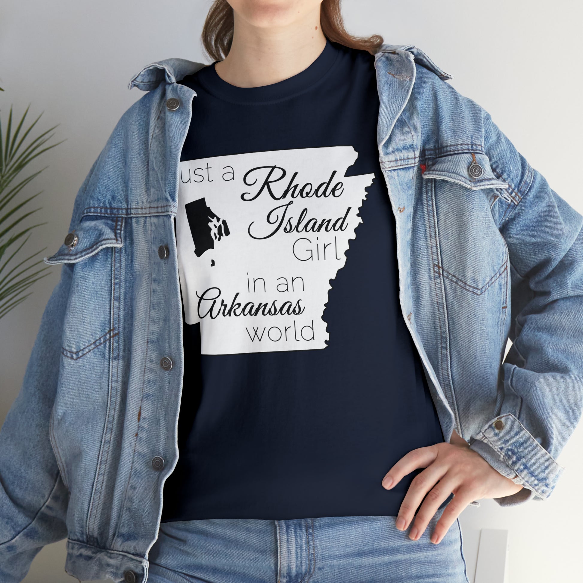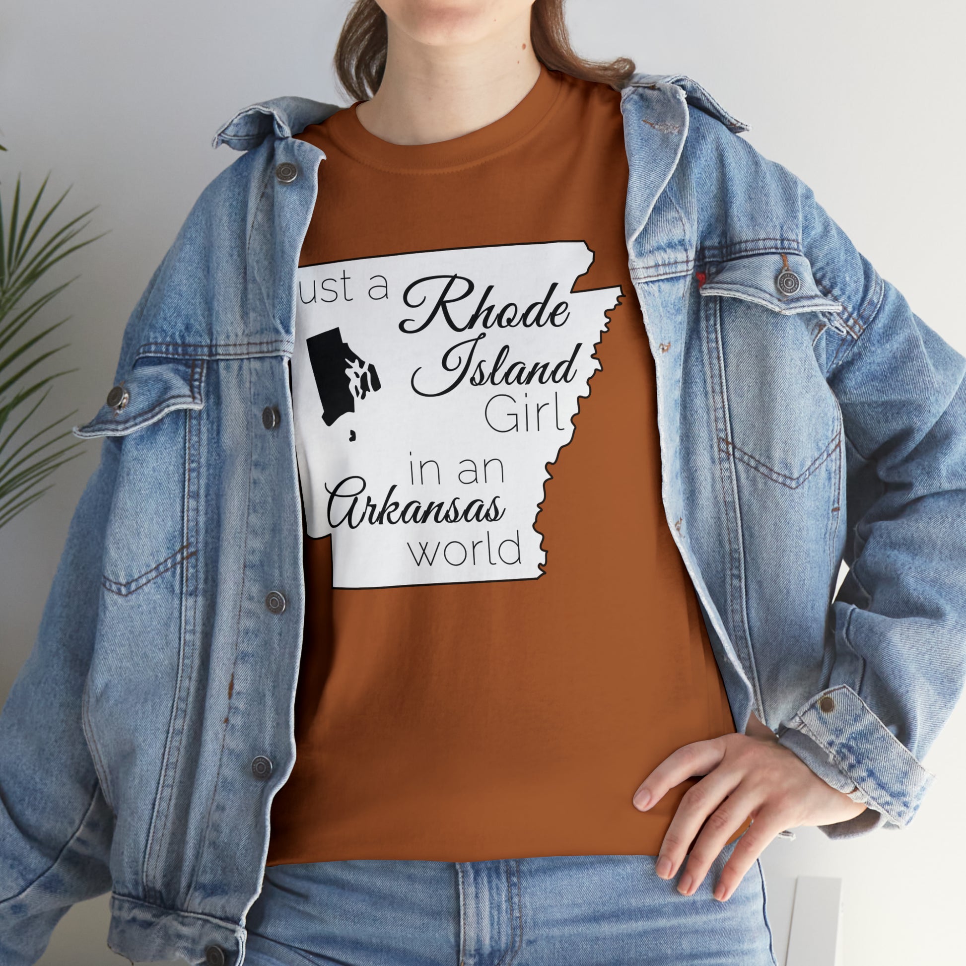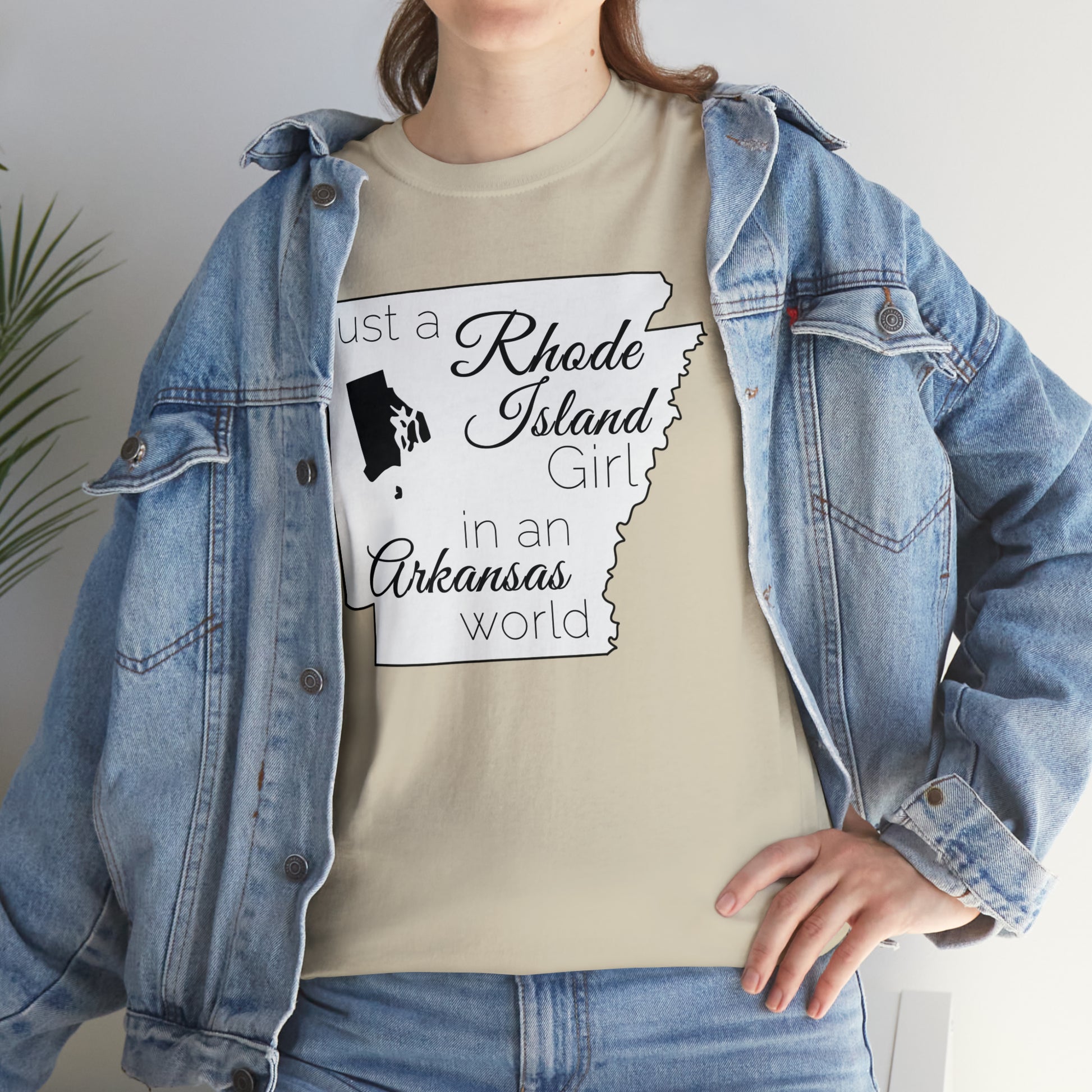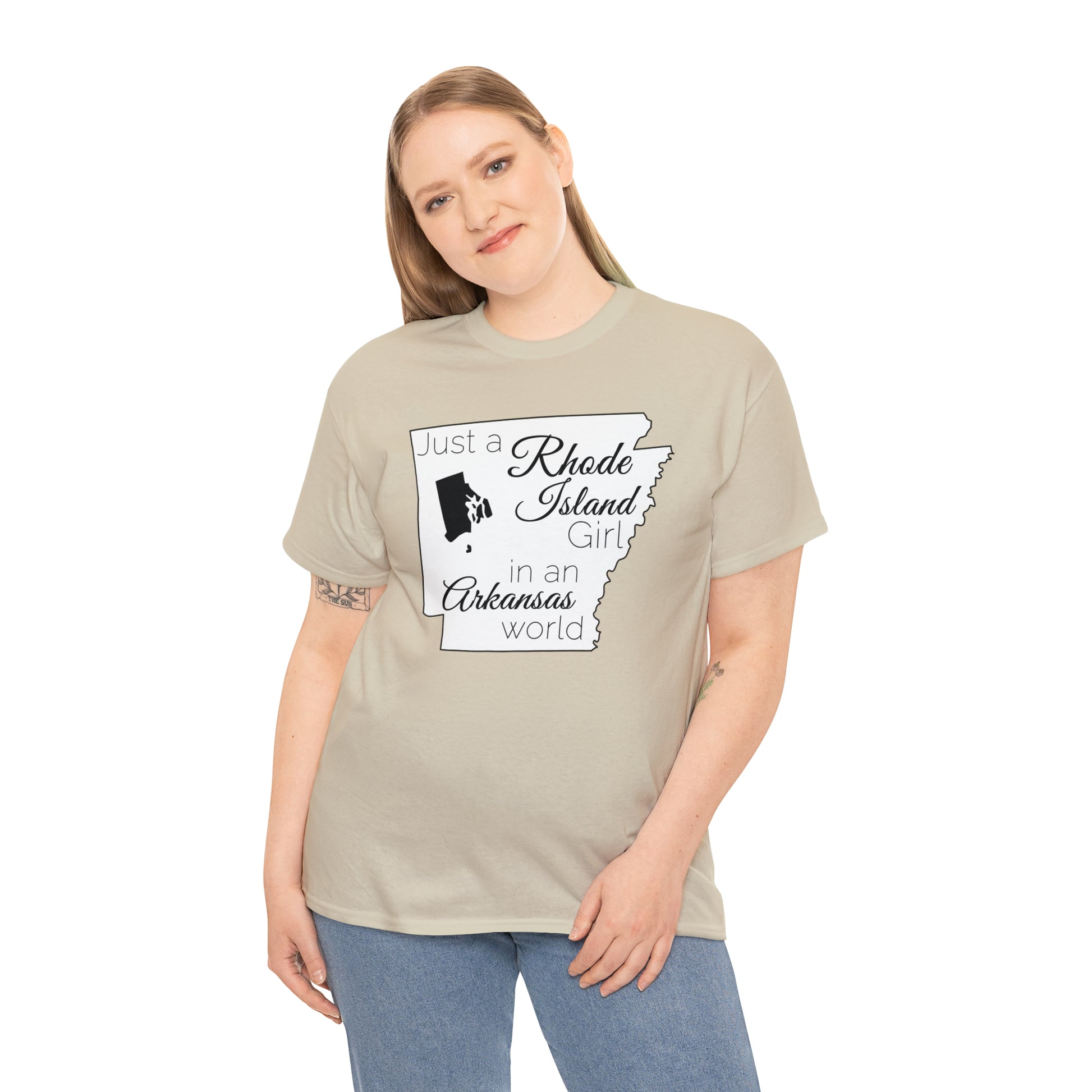 Just a Rhode Island Girl in an Arkansas World Unisex Heavy Cotton Tee