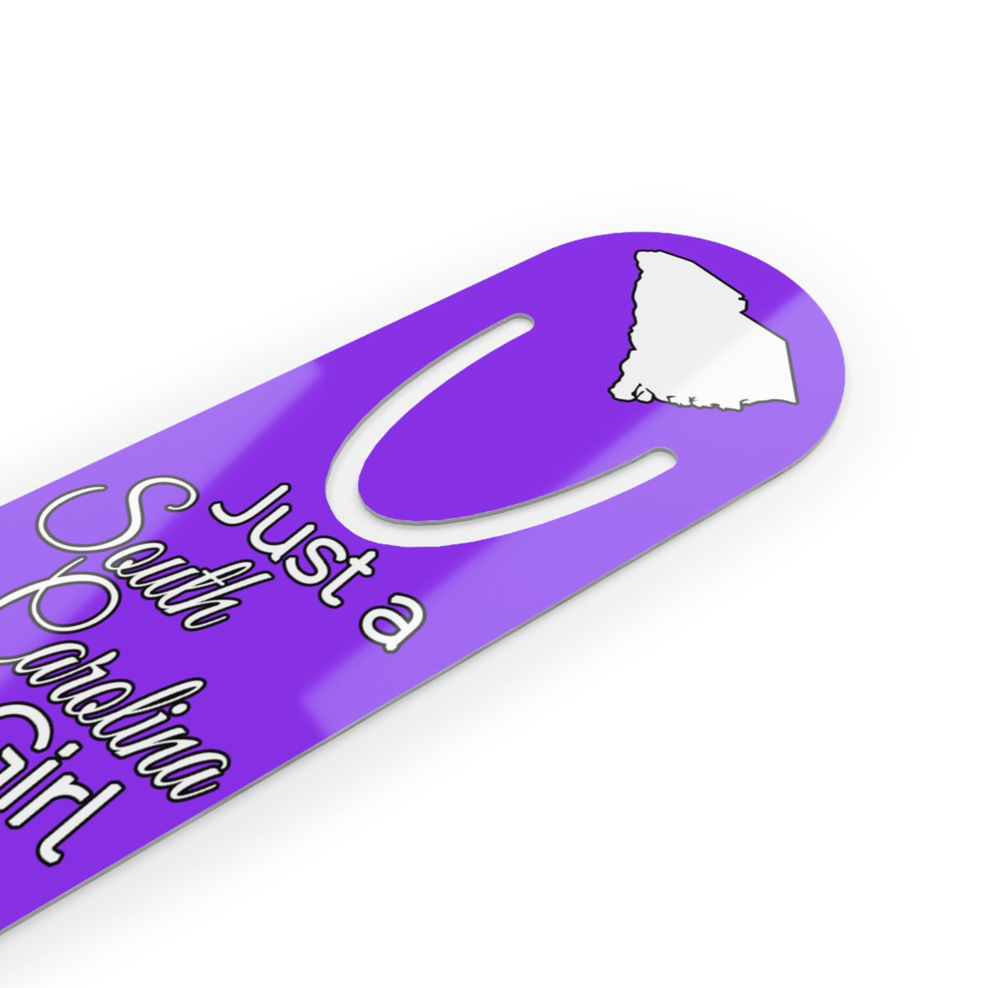Show your pride in your home state with this bookmark showing Just a South Carolina Girl in an Alabama World. Made with robust aluminum, features top slot that holds single pages in place.